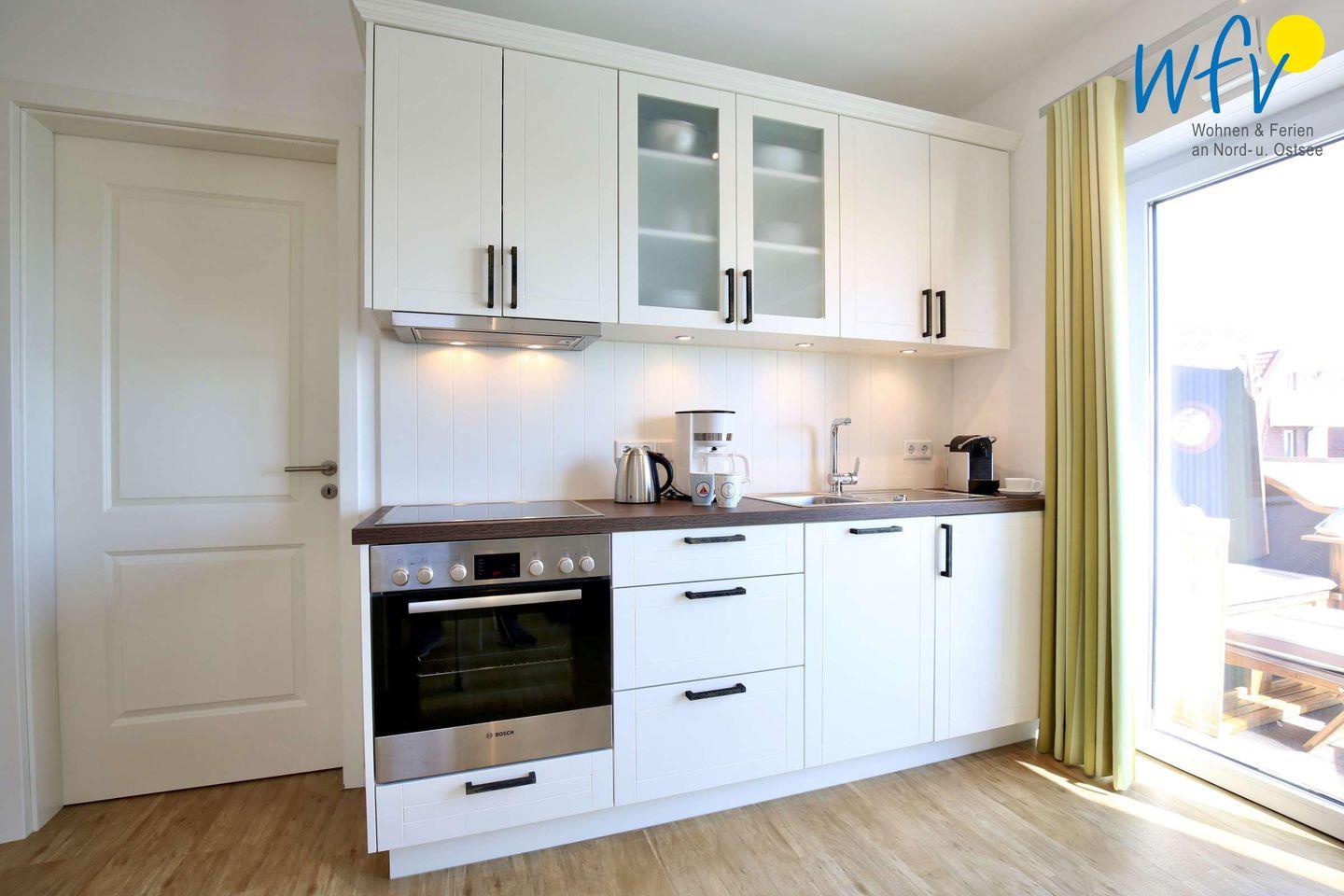 Die Küche ist ebenfalls modern und voll ausgestattet, sodass Sie sich auf der Insel auch hervorragend selbst verpflegen können. Die moderne Einbauküche verfügt u.a. über einen Backofen, einen Herd, einen Kühlschrank, eine Kaffee-/Espressomaschine sowie über einen Sodastream und einen Wasserkocher und ist mit hochwertigem Geschirr ausgestattet. In der Zubereitung ihres Lieblingsgerichtes für gemeinsame Mahlzeiten sind Ihnen also keinerlei Grenzen gesetzt.