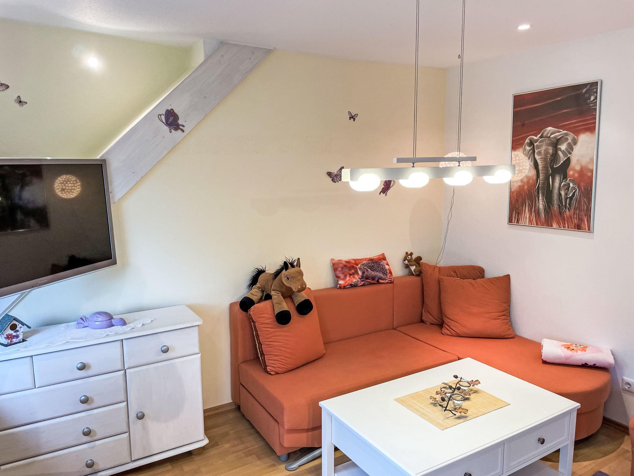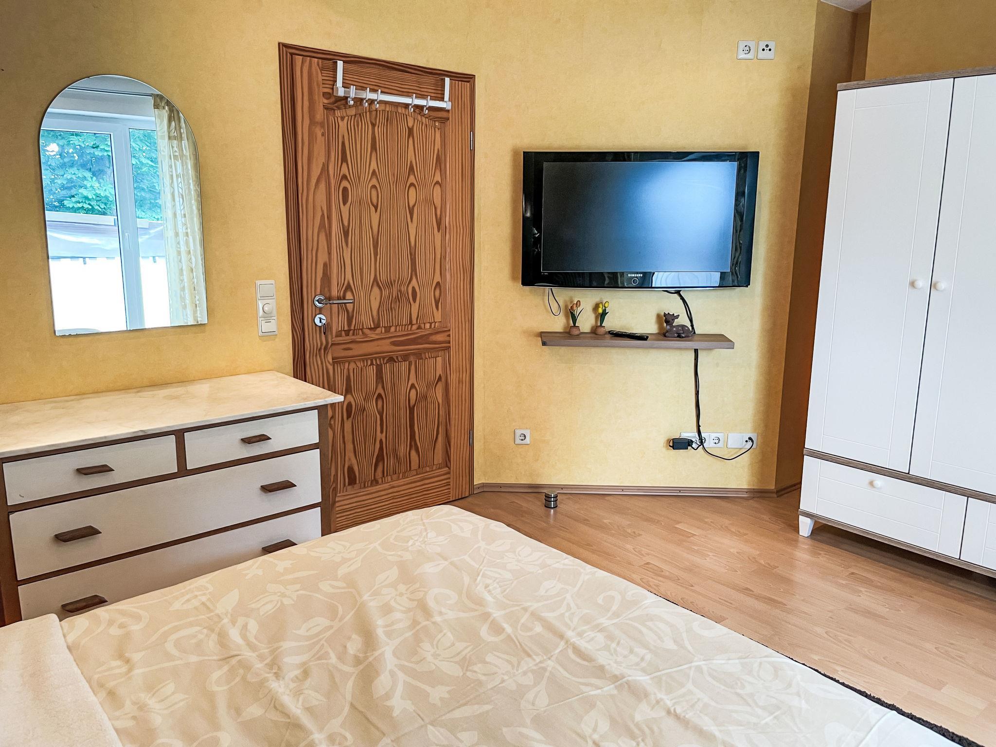 "Winona", 2-room apartment 60 m2, on the upper floor. Cosy furnishings: living/dining room with 1 double sofabed and satellite TV (flat screen). 1 room with 1 double bed (180 cm, length 200 cm), satellite TV (flat screen). Kitchen (dishwasher, 4 ceramic glass hob hotplates, toaster, kettle, microwave, electric coffee machine) with small dining table. Bath/shower/WC, hydro massage bath. Gas heating. Balcony 12 m2. Balcony furniture. Beautiful view of the countryside. Facilities: washing machine (extra). Dryer (extra), children's high chair, baby cot. Internet (WiFi, free). Please note: smoke alarm.