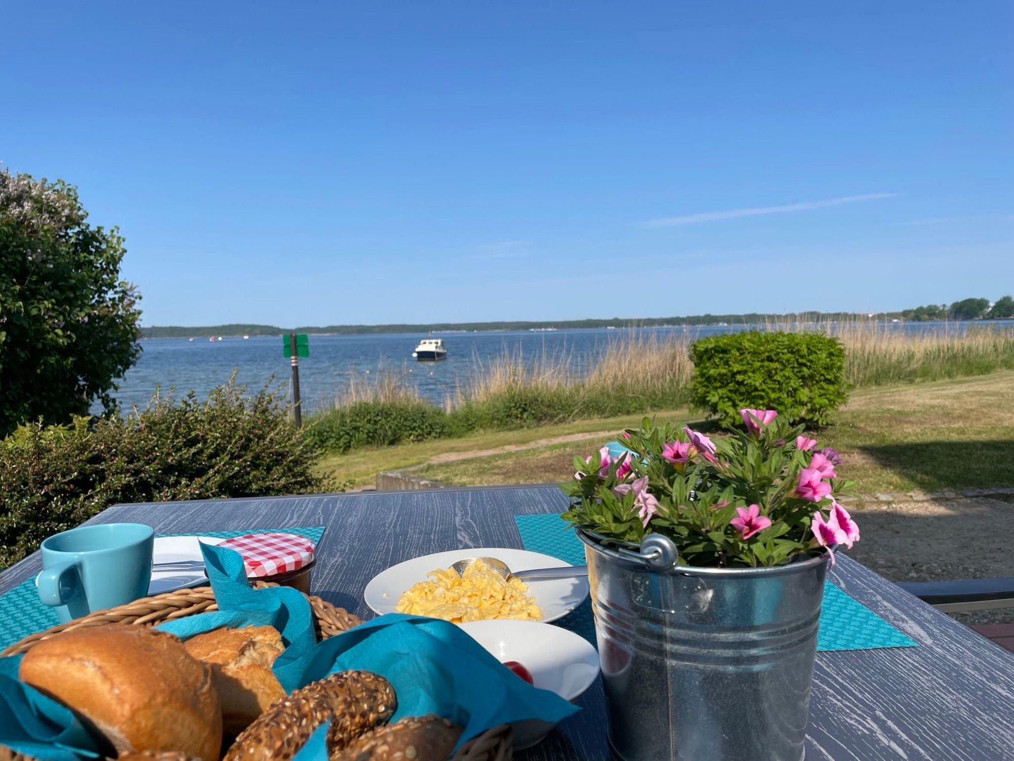 Von unserer Ferienwohnung im Erdgeschoss genießen Sie einen direkten Blick auf die Binnenmüritz. Mit wenigen Schritten sind Sie bereits im Wasser.