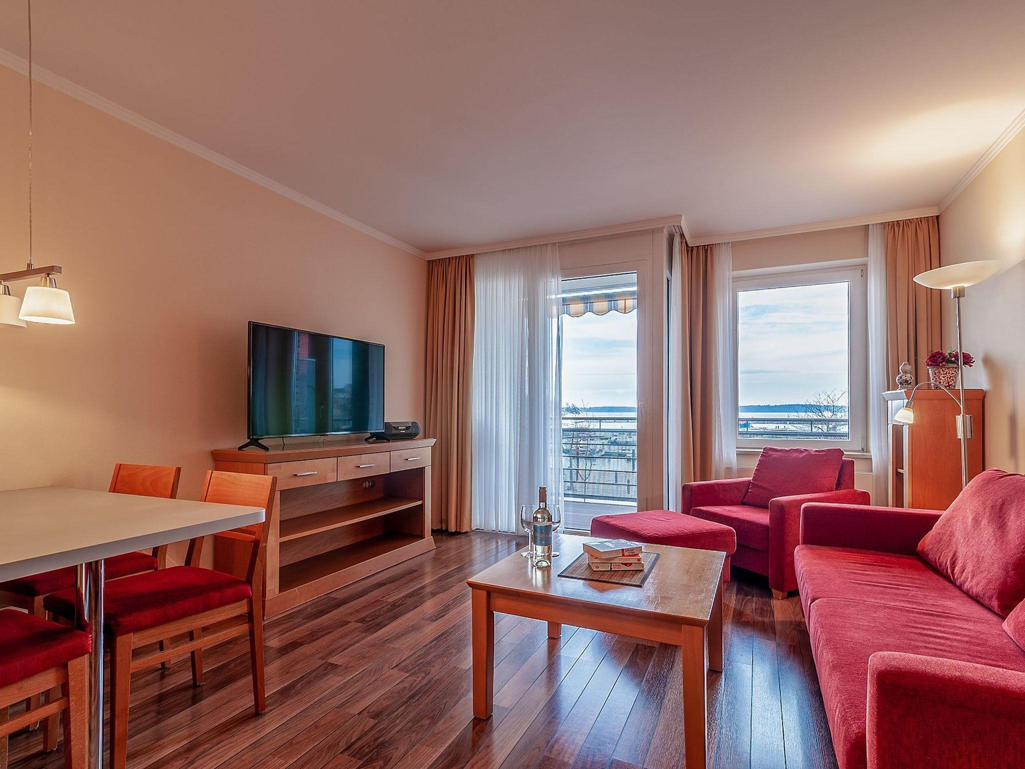 Bei der Erstellung und der Einrichtung des Neubaus wurde großer Wert auf die Bedürfnisse unserer Gäste gelegt. So verfügt das Appartement, was sich in der 1. Etage befindet, über einen unverbauten Blick direkt auf den Hafen und von Ihrem Balkon wird so mancher schöner Sonnenuntergang mit der Hafenkulisse und dem weiten Blick über die Müritz in guter Erinnerung bleiben.