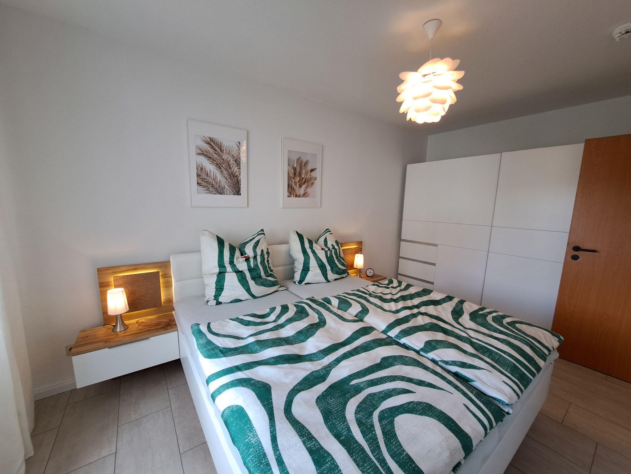 Wenige Schritte weiter lädt das lichtdurchflutete Schlafzimmer mit einem komfortablen Doppelbett und einem großen Kleiderschrank zum erholsamen Schlaf ein. Ein Kinderbett bis 3 Jahre mit Matratze (ohne Wäsche) kann gestellt werden. Das Wohnzimmer ist modern eingerichtet und bietet Ihnen einen Flachbild-TV, einen BlueRay-Player, eine Bose-Musikbox, eine gemütliche Couchlandschaft und einen Relaxsessel. Von hier aus gelangen Sie auf den möblierten und überdachten Balkon, auf dem Sie entspannte Stunden verbringen können.