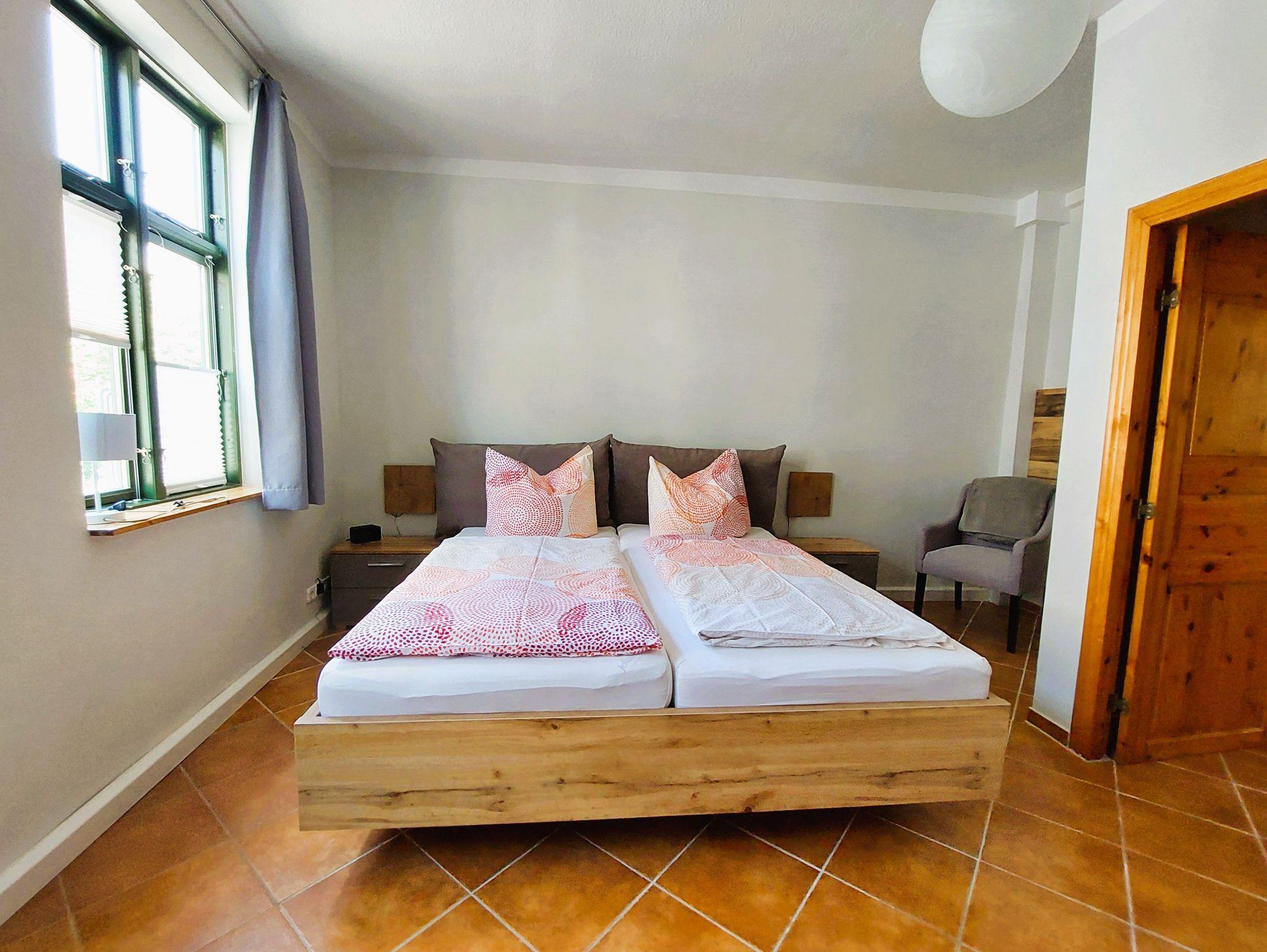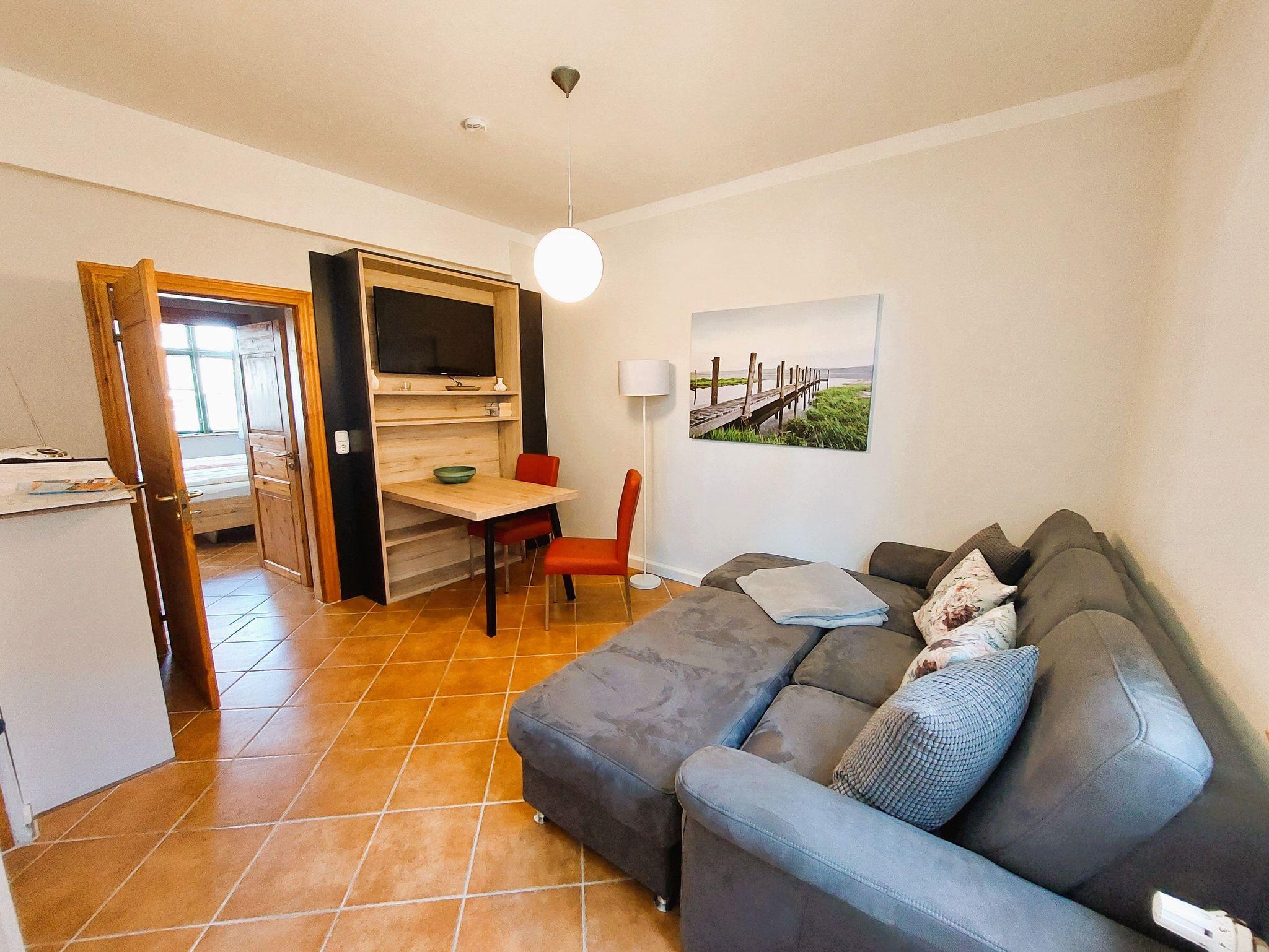 Die Ferienwohnung in der historischen Altstadt bietet Ihnen in Hochparterre ein Wohnzimmer mit Couchlandschaft, FlachTV und integrierter Einbauküche. Die Küche ist voll ausgestattet. Das Schlafzimmer bietet Ihnen ein Doppelbett mit Nachttischen, Leselampe und Kleiderschrank. Zusätzlich steht ein Einzelbett im Schlafzimmer für eine dritte Person. Das Badezimmer verfügt über eine Dusche mit Duschwanne, Waschtisch und WC.