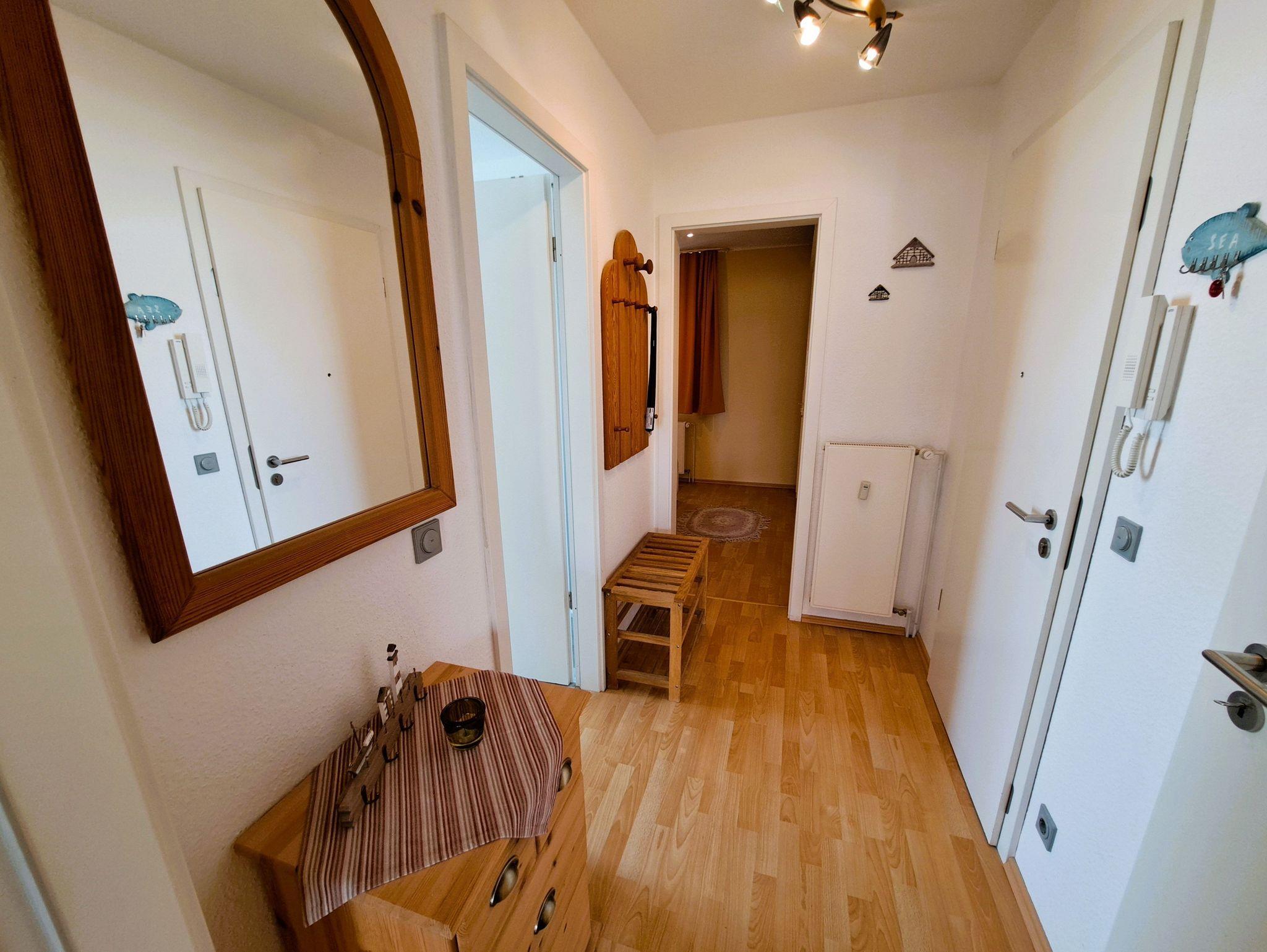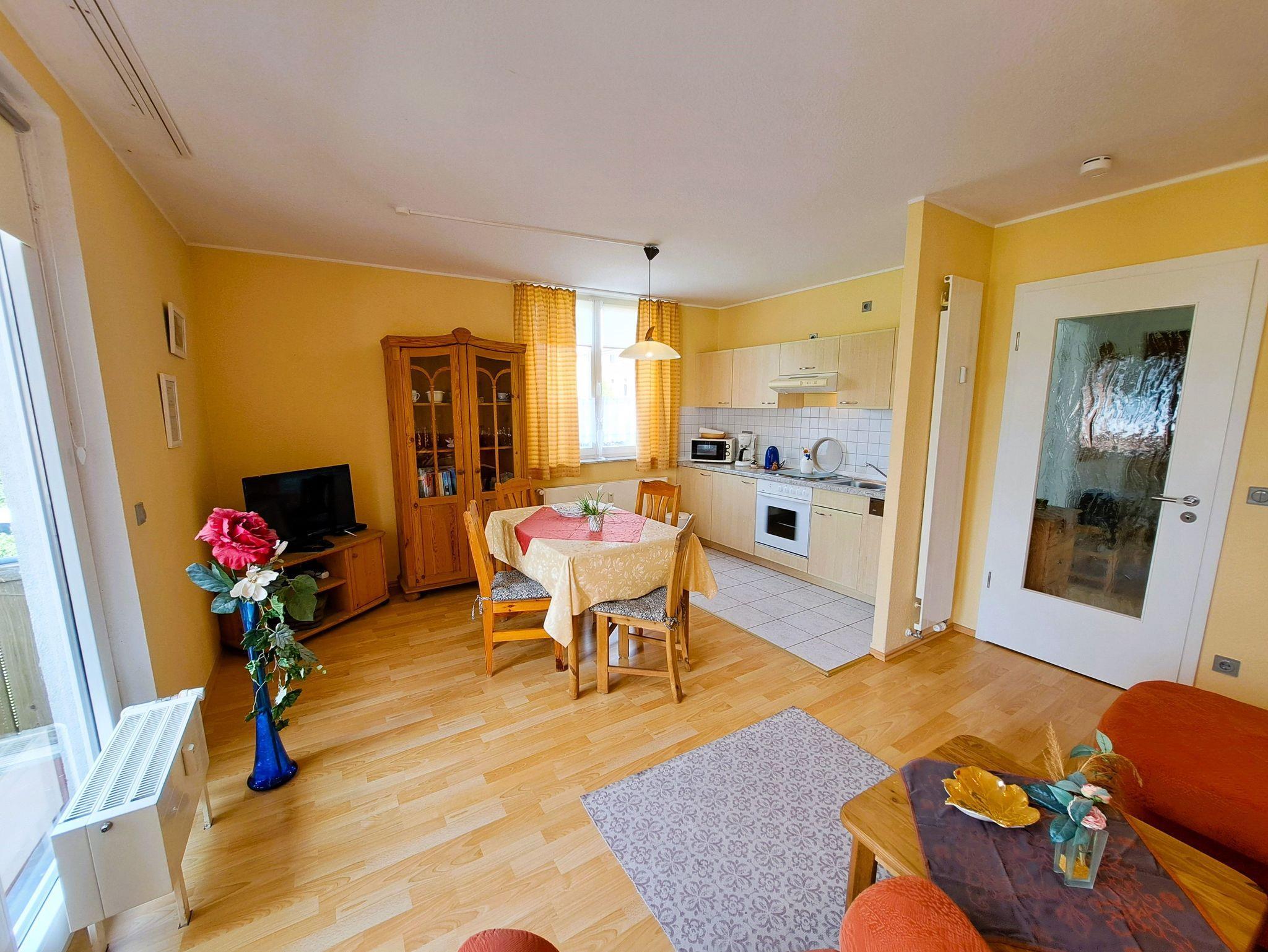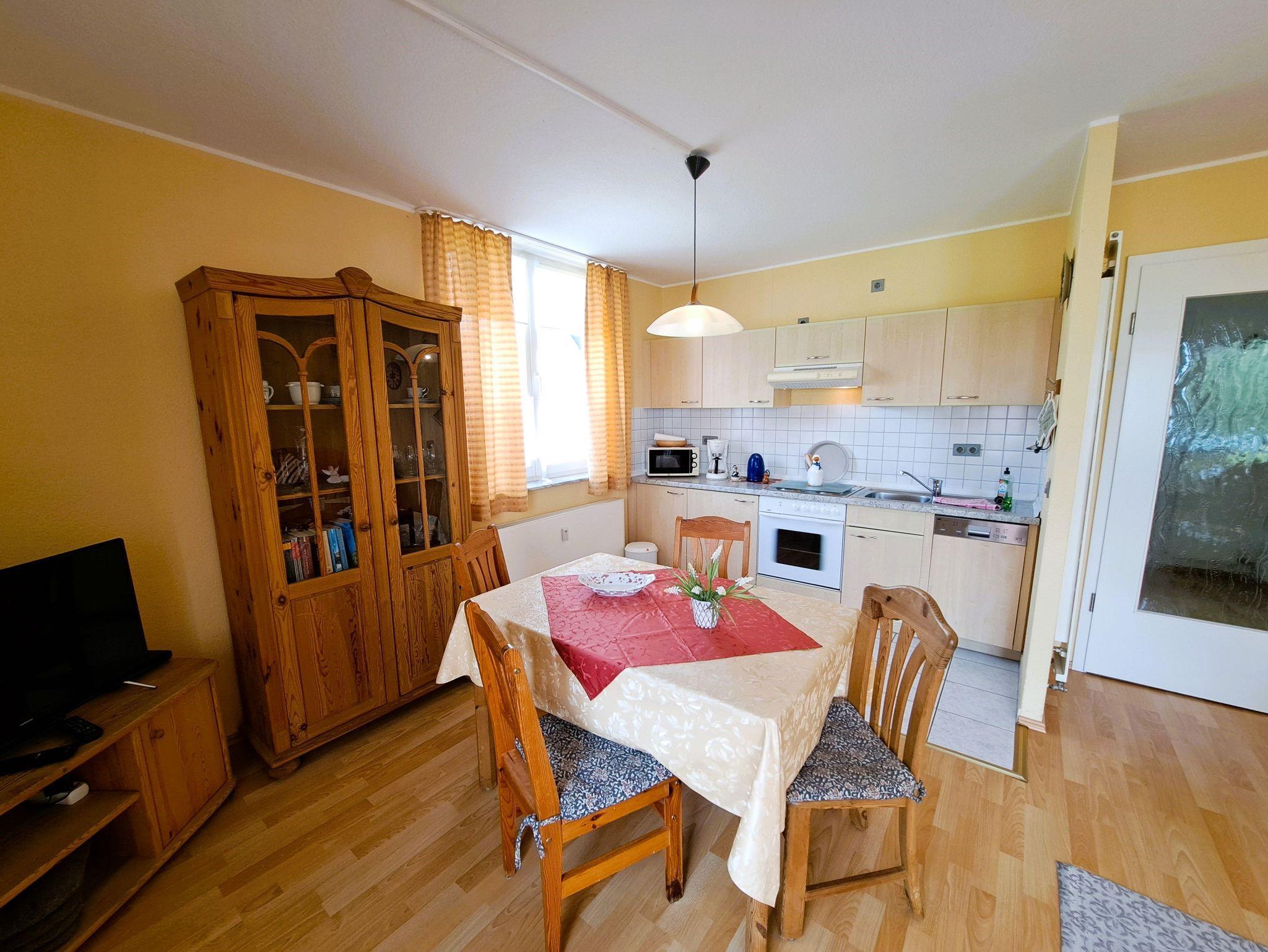 Die Ferienwohnung befindet sich im 1. OG und bietet Ihnen 1 Wohnzimmer mit Eckcouch, TV, Esstisch und Einbauküche, ein Schlafzimmer mit Doppelbett und großem Schrank, ein Bad mit Dusche und WC. Der Balkon bietet Ihnen einen Teilblick auf die Müritz. Die Aufbettung für die 3. Person wäre auf der Couch (ausziehbar). Die Ausstattung ist hell, freundlich und sehr gepflegt.