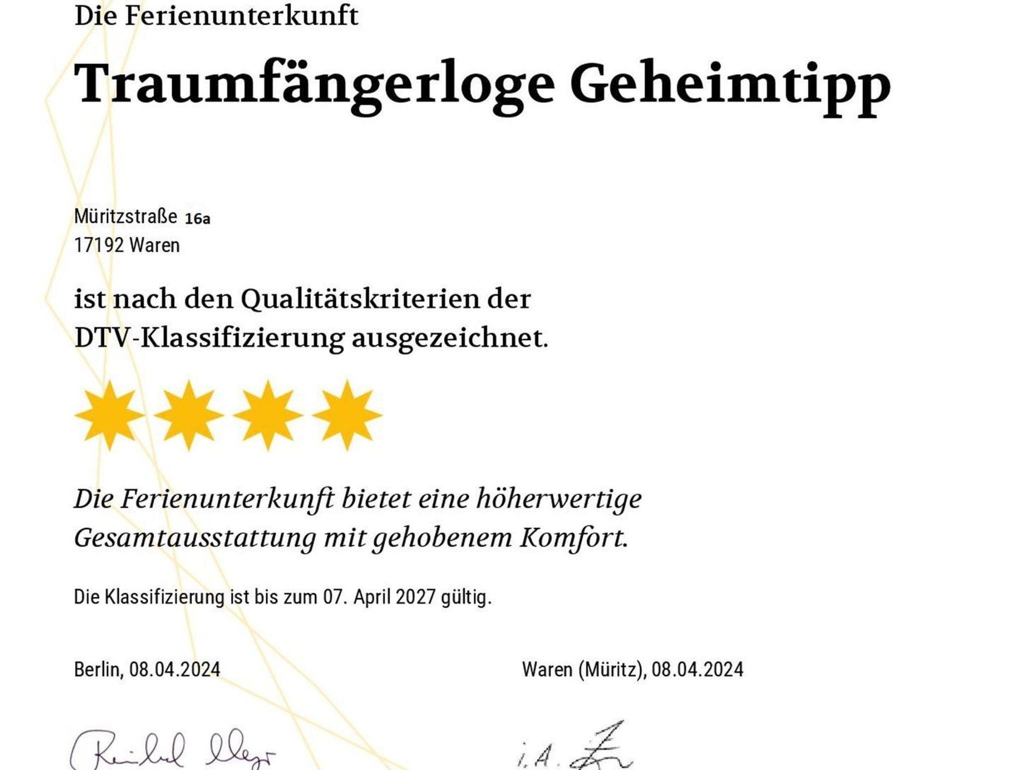 Wir heißen Sie herzlich willkommen in unserer modernen und erstklassigen 4 Sterne Ferienwohnung „Traumfängerloge“ in Waren (Müritz). Eine der schönsten Lagen, mit Panoramblick über den Stadthafen, die Altstadt und die komplette Binnenmüritz.