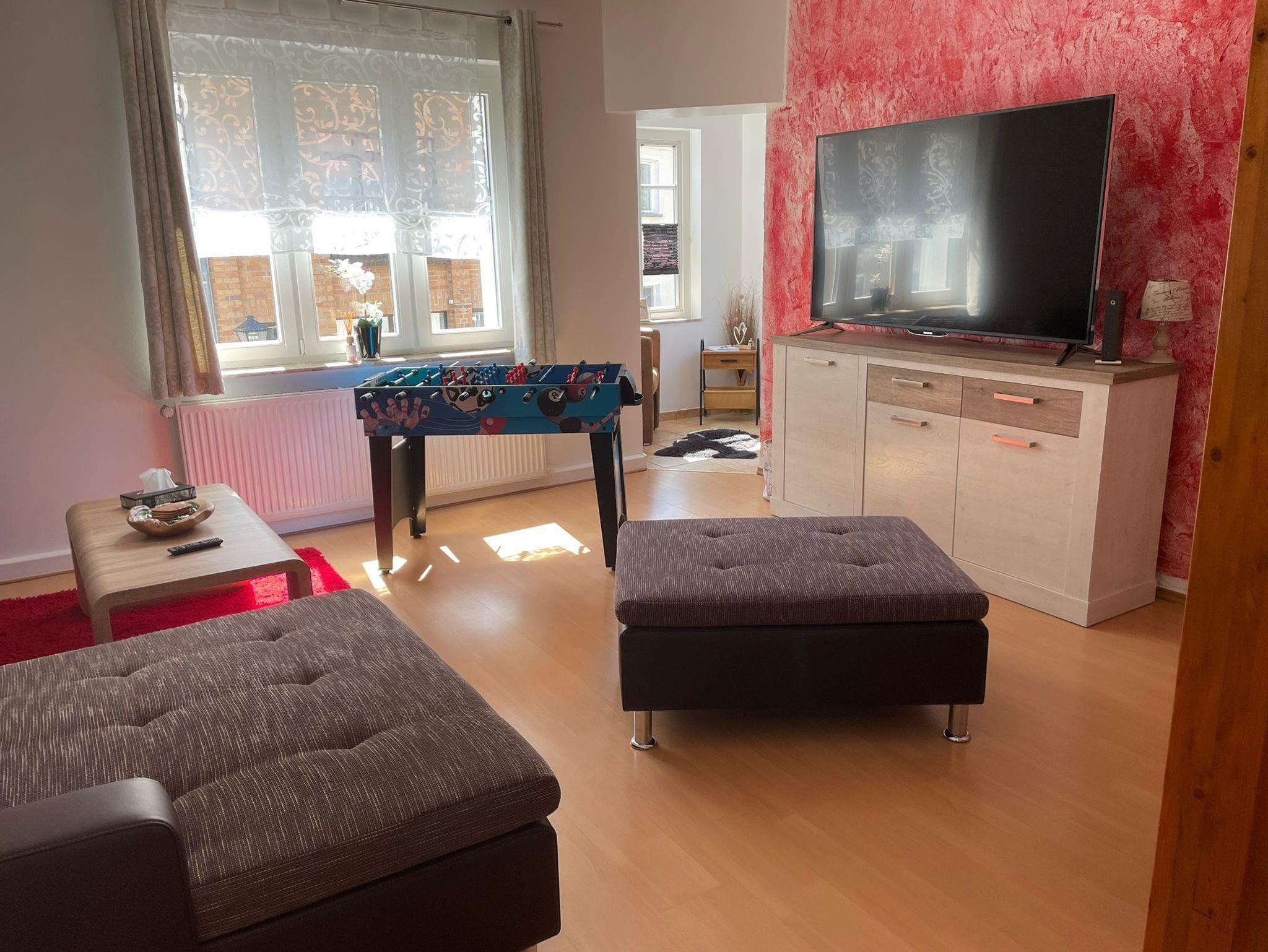 Neben der offenen Küche mit Spülmaschine, Cerankocheld, Backherd und Mikrowelle können Sie am Esstisch gemeinsam Frühstücken. Oder Sie Frühstücken in den Altstadt-Bäckereien gleich um die Ecke(nur 100m). Die Ferienwohnung verfügt über 3 Schlafräume mit je einem Boxspringbett mit bequemer Schlafhöhe sowie Schwebetürenschränke in 2 Schlafräumen. Im Kinderzimmer sind einige Spielsachen für die Kleinen. Ein Bad mit Badewanne, Dusche und WC vervollständigt das durchaus großzügige Apartment.