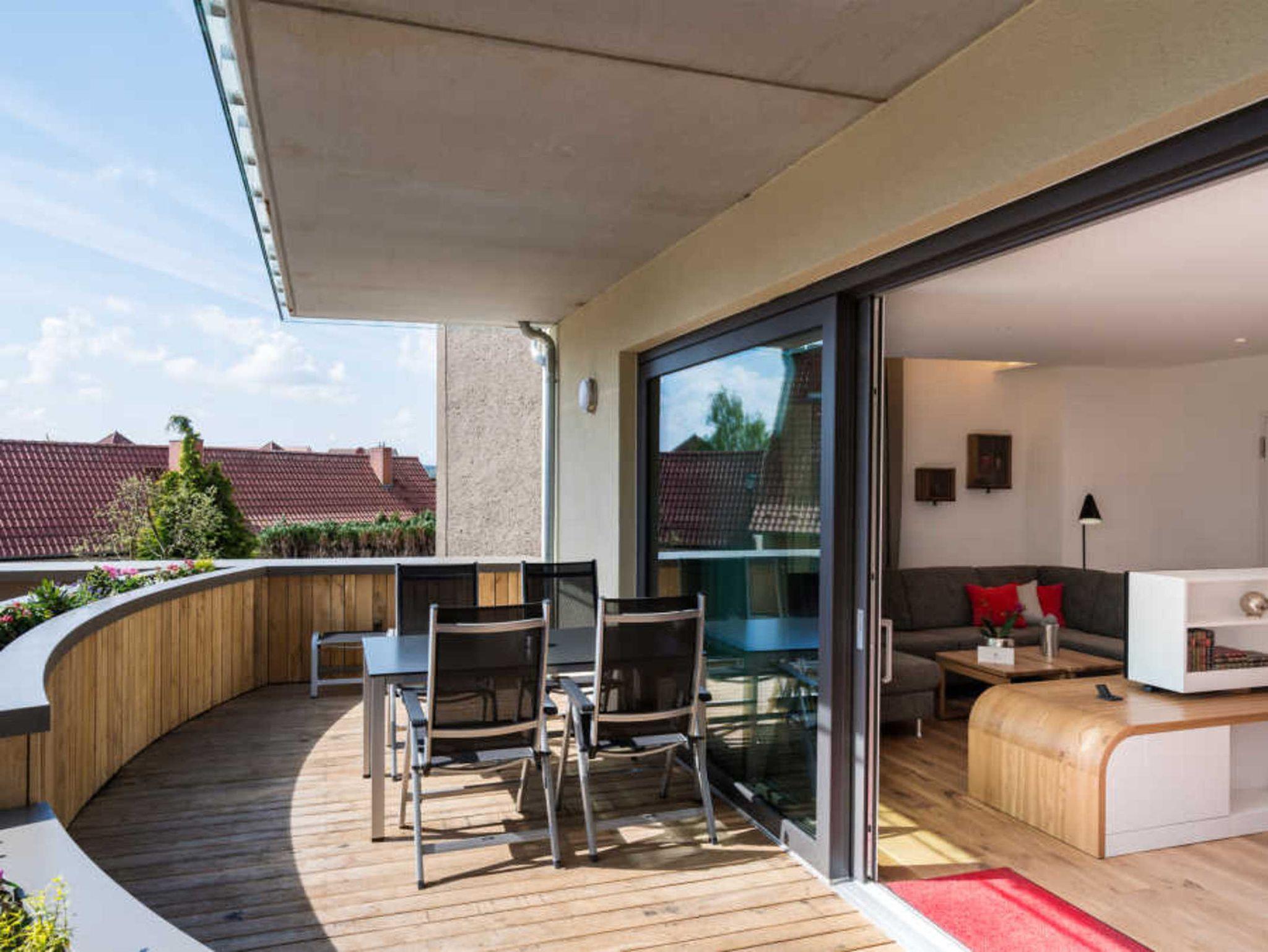 Die Suite Burmeister befindet sich im Erdgeschoss des Hauses und verfügt über zwei Schlafbereiche mit jeweils einem Bad en suite sowie einen kombinierten Wohn-/Essbereich mit offener Küche. Eine Aufbettung für die 5. Person erfolgt im Wohnbereich auf der Couch. Bei Anreise sind Bettwäsche und Handtücher sowie eine Flasche Wasser zur Begrüßung vorhanden. Weitere Ausstattungen: Nichtraucher, Fußbodenheizung, Sat-TV und Radio, W-LAN, Schreibtisch, komfortables Sofa, modernes Sideboard und gemütlichen Esstisch, Terrasse mit Blick auf den Innenhof, vollausgestattete moderne Küchenzeile mit Backofen, Mikrowelle, Kaffeemaschine, Wasserkocher, Toaster, Kühlschrank mit Eisfach, Cerankochfeld, Geschirrspüler sowie ausreichend Geschirr