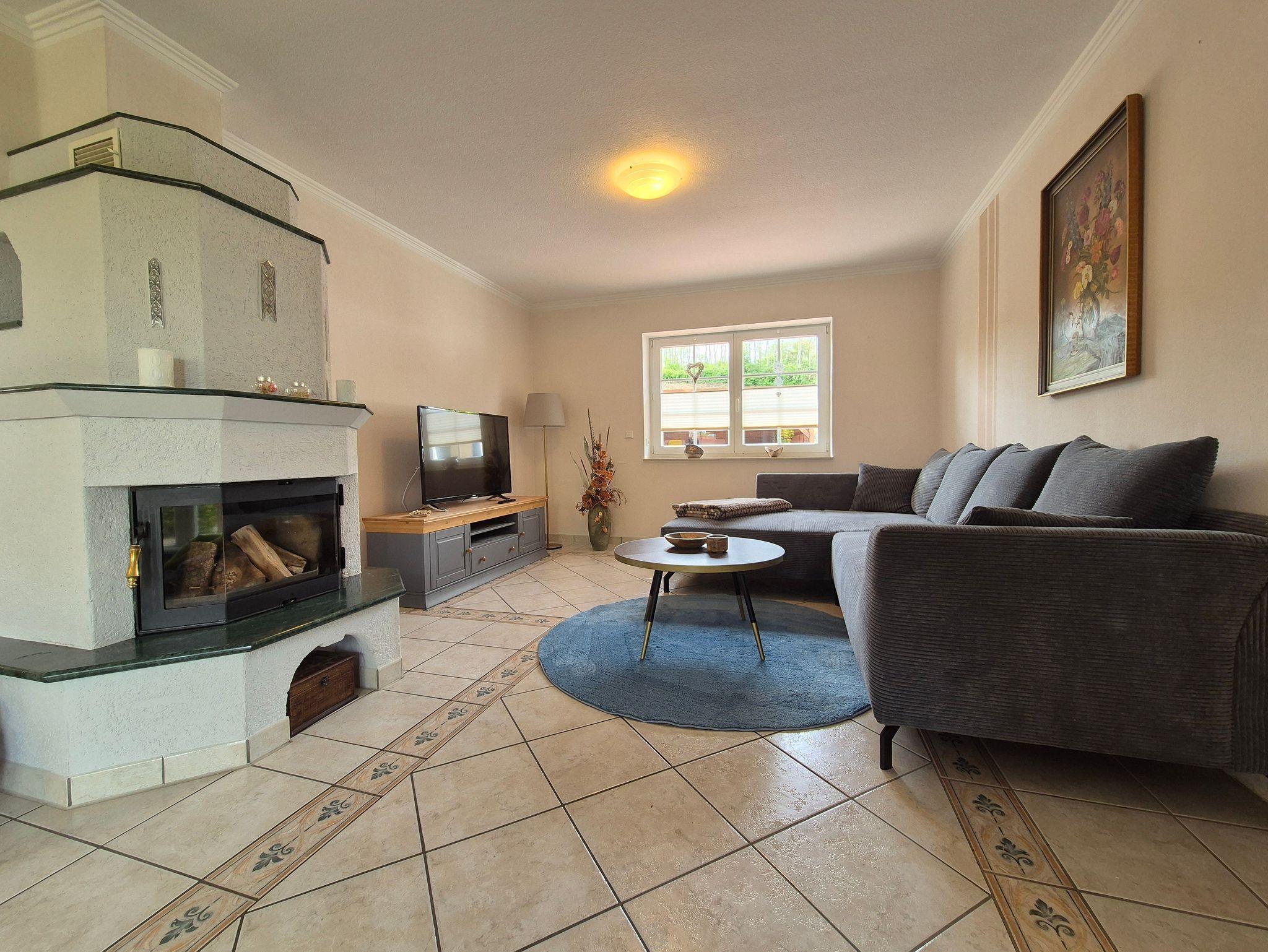 Das Haus erstreckt sich über zwei Wohnebenen, wodurch genügend Raum für Privatsphäre und Komfort geboten wird. Im Erdgeschoss befindet sich ein einladendes Wohnzimmer, das mit bequemen Sitzgelegenheiten und einem Flachbildfernseher ausgestattet ist - perfekt für gesellige Abende oder entspannte Filmabende. Eine voll ausgestattete Küche steht den Gästen ebenfalls zur Verfügung. Ein Badezimmer mit Dusche/WC komplettiert das Erdgeschoss, was den Gästen zusätzlichen Komfort bietet. Das gesamte Erdgeschoss verfügt über eine Fußbodenheizung, ebenso das große Badezimmer im Obergeschoss.