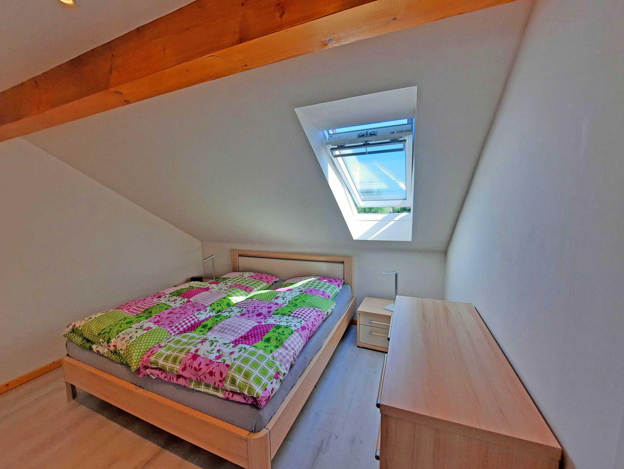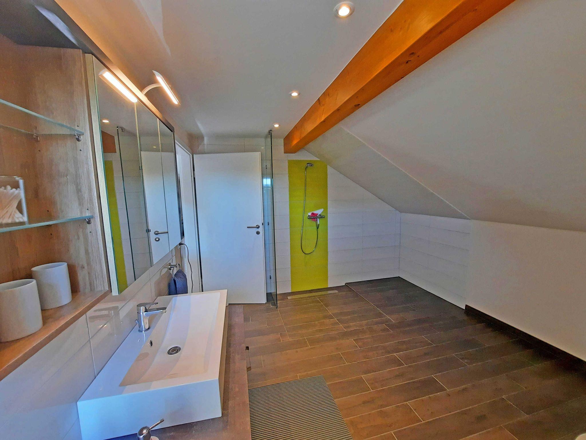 Die Ferienwohnung liegt idyllisch ruhig mit Blick ins Grüne. Ideal für eine Auszeit. Im 1.Obergeschoss (=Dachgeschoss) eines neu erbauten modernen Eigenheimes wurde die Wohnung liebevoll und modern eingerichtet. Der Eingang zur Wohnung ist separat über eine Aussentreppe. Das Auto kann direkt am Haus geparkt werden. Die Fahrräder können in einem separaten Gartenhäusschen eingeschlossen werden. Auf dem riesigen Aussenbereich mit Blick in die Ferne steht Ihnen eine Aussensitzmöglichkeit mit Grill und Feuerschale zur Verfügung.