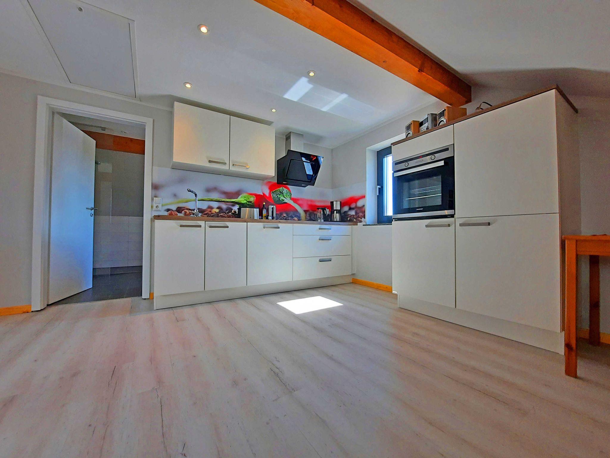 Die Ferienwohnung empfängt sie im hellen freundlichen Stil. Der großzügige Wohn- und Essbereich lädt zum Verweilen ein. Im Wohnbereich befindet sich eine Couchlandschaft (Schlaffunktion möglich) mit FlachTV und im Küchenbereich eine vollständige Einbauküche mit Esstisch. Das Schlafzimmer bietet Ihnen ein Doppelbett