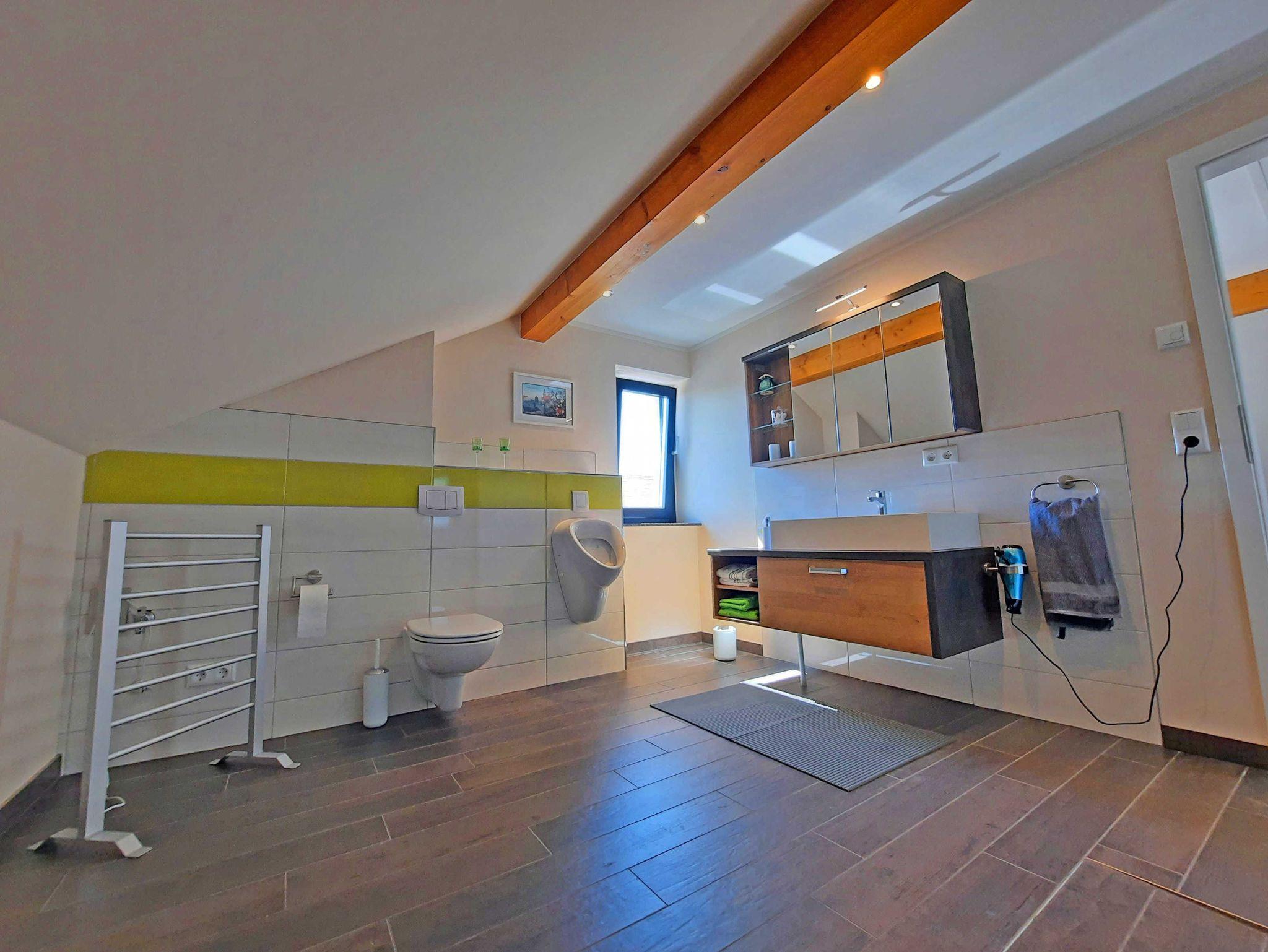 (2,00 m x 2,00 m) mit großem Kleiderschrank. Das Tageslichtbad ist ausgestattet mit ebenerdiger Dusche, Waschtisch, WC und Pissoir. Die Ausstattung ist modern und neu (2021).