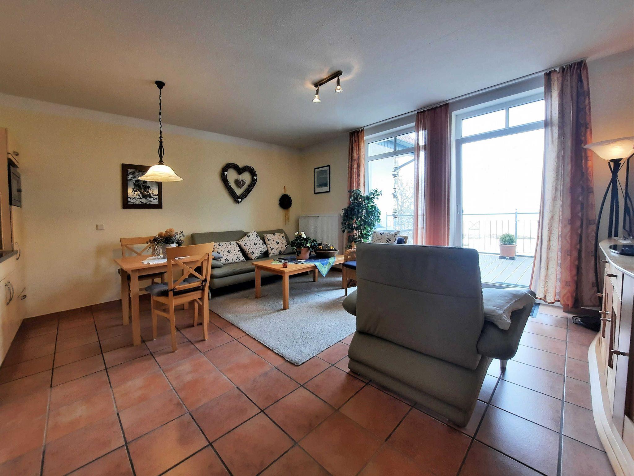 Die schöne Ferienwohnung 3/2 befindet sich im 3. OG, Sie erreichen sie bequem mit dem Fahrstuhl. Die Wohnung verfügt über ein großzügiges Wohnzimmer mit einer Couch, TV und einem traumhaften Blick auf den Kölpinsee. Der großzüge Balkon ist mobiliert mit Markiese, daher können Sie den Tag mit einem Frühstück auf dem Balkon starten lassen. Die offene Küche befindet sich ebenfalls im Wohnraum. Durch den Flur gelangen Sie in das Badezimmer mit Dusche und WC und in das Schlafzimmer mit einem bequemen Doppelbett. Die Ferienwohnung ist hell und freundlich eingerichtet. WLAN und ein Parkplatz stehen Ihnen kostenfrei zur Verfügung.