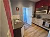 Die innenliegende kompakte Küche bietet allen Komfort mit modernen technischen Geräten und dient als Durchgangszimmer zum Badezimmer. Das Badezimmer ist mit Dusche und WC ausgestattet.