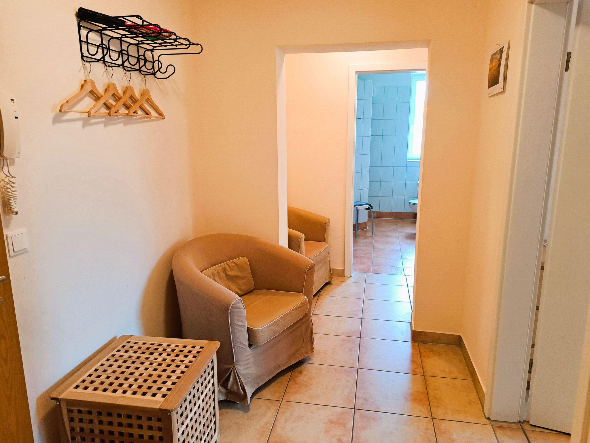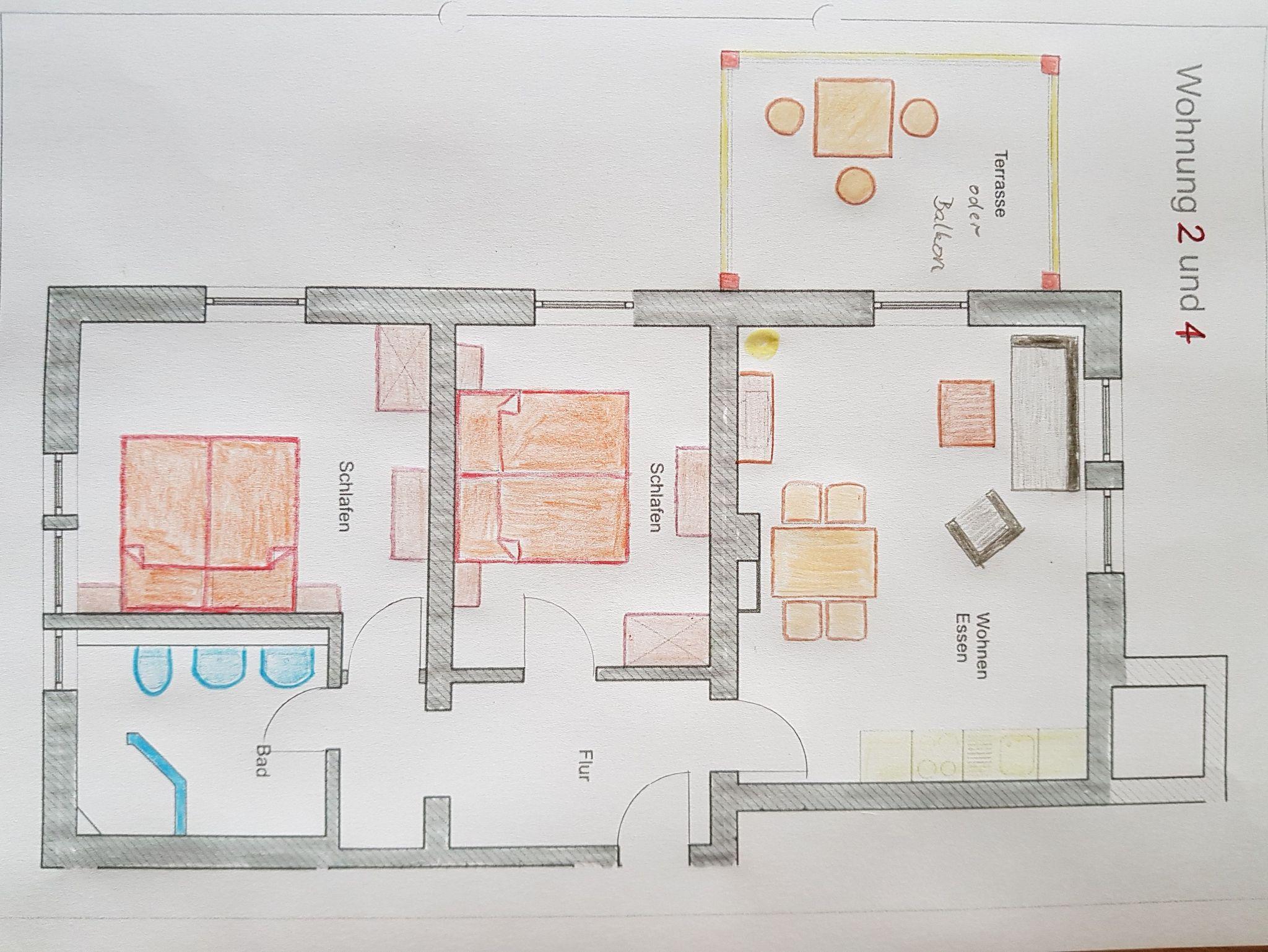 Unsere Ferienwohnung 4 (Ostseite)befindet sich im 1. Obergeschoss und bietet eine gemütlichen Balkon, ideal für entspannte Stunden im Freien. Schon beim Betreten empfängt Sie ein einladender Flur mit Sessel, Garderobe und Schuhablage. Die beiden Schlafzimmer sind jeweils mit einem komfortablen Doppelbett, Nachttischen, Lampen, Wechselschaltern und doppeltürigen Kleiderschränken ausgestattet perfekt für eine erholsame Nachtruhe.