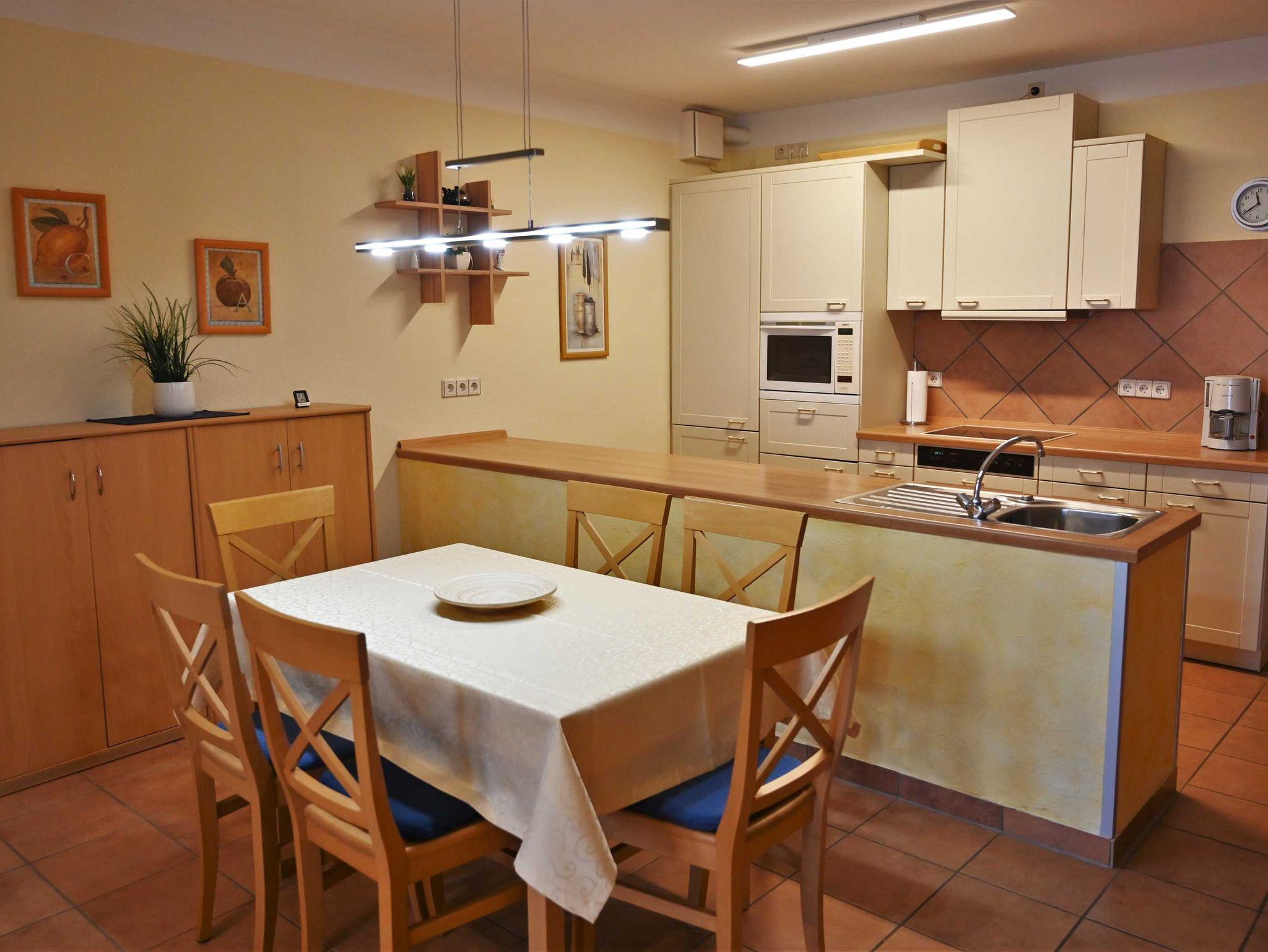 Die Küche ist komplett mit Geschirrspüler, Kochfeld und einem Backofen/Mikrowelle Kombigerät ausgestattet.