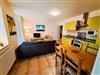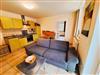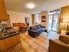 Im modernen Tageslicht-Badezimmer erwartet Sie eine ebenerdig begehbare Dusche, ein Doppelwaschbecken mit Ablage und ein WC. Der offene Wohn- und Kochbereich schafft eine einladende Atmosphäre und ermöglicht den direkten Zugang zur Terrasse. Die Einbauküche ist vollständig ausgestattet und verfügt über alle wichtigen technischen Geräte sowie einen Esstisch, an dem Sie Ihre Mahlzeiten genießen können.