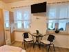 Das Wohnzimmer empfängt Sie mit einer gemütlichen Couchlandschaft und einem TV, perfekt für entspannte Abende. Vom Wohnzimmer aus haben Sie Zugang zur Außenterrasse, wo Sie die frische Luft genießen und im Freien sitzen können. Die offene Wohnküche ist mit einem Esstisch ausgestattet, ideal für gemeinsame Mahlzeiten und gesellige Gespräche.