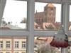 Das Schlafzimmer im 4. Stock ist mit zwei Einzelbetten (90 cm x 190; 120 x 200 cm), Nachttischen, Lampen und kleinem Kleiderschrank ausgestattet. Ein Giebelfenster erlaubt den Blick Richtung Altstadt - wer die Jalousie oben lässt, wird hier von der Sonne geweckt! Das Schlafzimmer im 5. Stock ist über eine Treppe erreichbar. Es verfügt über ein Doppelbett (2 x 90 cm x 200 cm), einen Kleiderschrank, 2 Nachtschränke mit Lampen und ein Flachbild TV (Kabel).