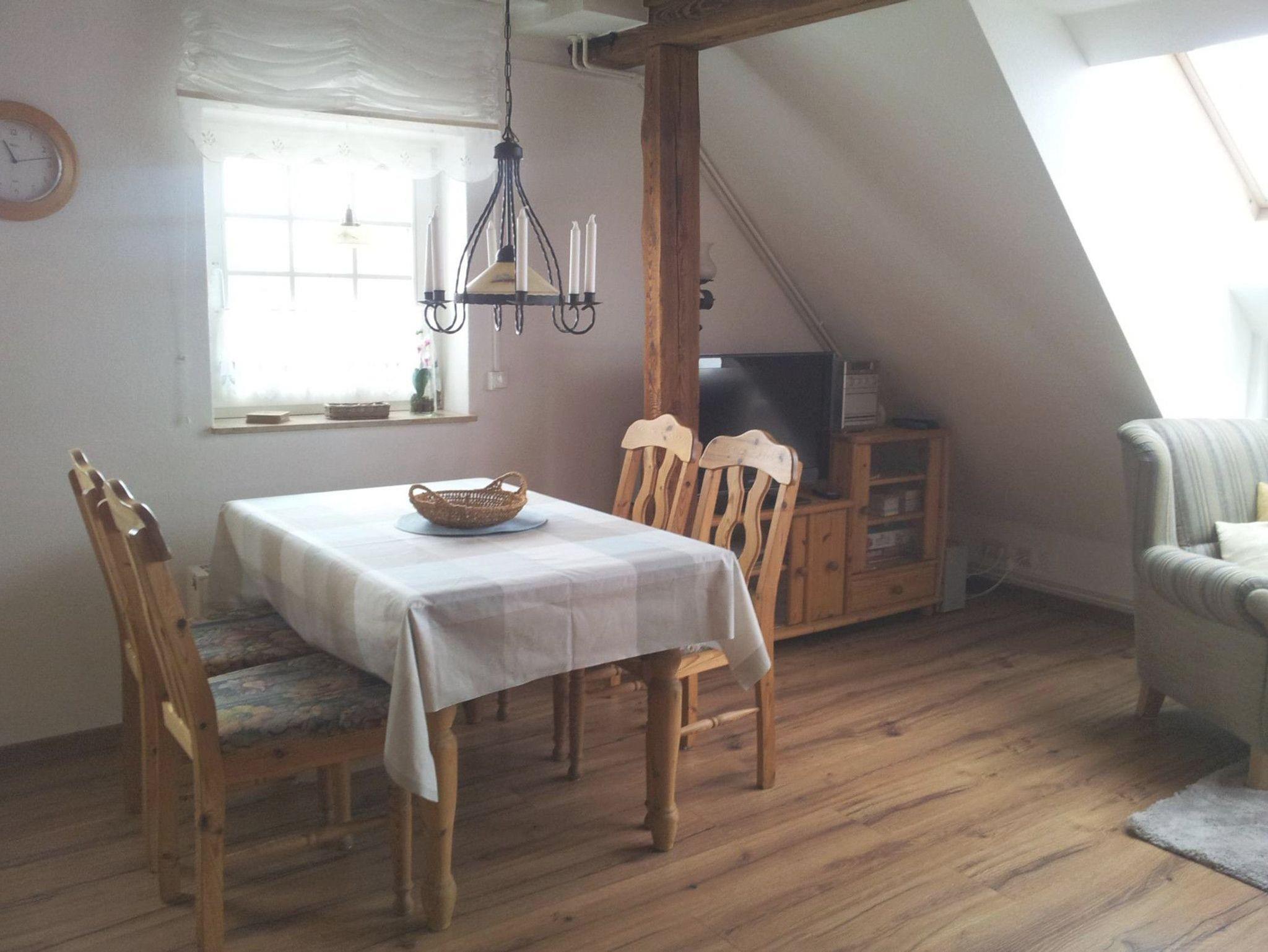 In der komplett eingerichteten hellen Landhausküche finden Sie einen Herd mit Cerankochfeld, Backofen und Geschirrspüler. Kaffeemaschine, Eierkocher, Gewürze, eine kleine Teeauswahl sowie Wasserkocher gehören natürlich ebenso zur Ausstattung. Der gemütliche Essplatz ist für 4 Personen geeignet, eine außergewöhnliche Ausstattung an Porzellan, Besteck und Gläsern lassen keine Wünsche offen.