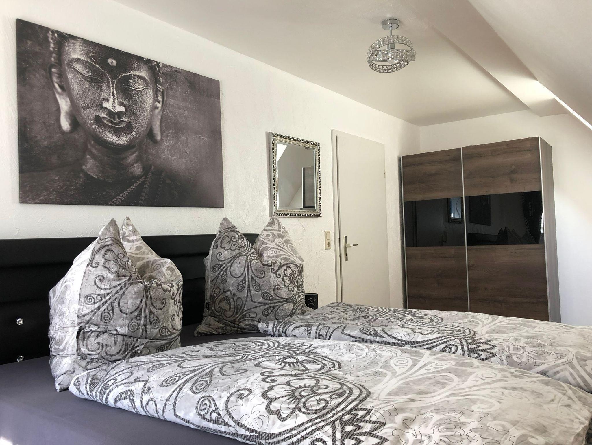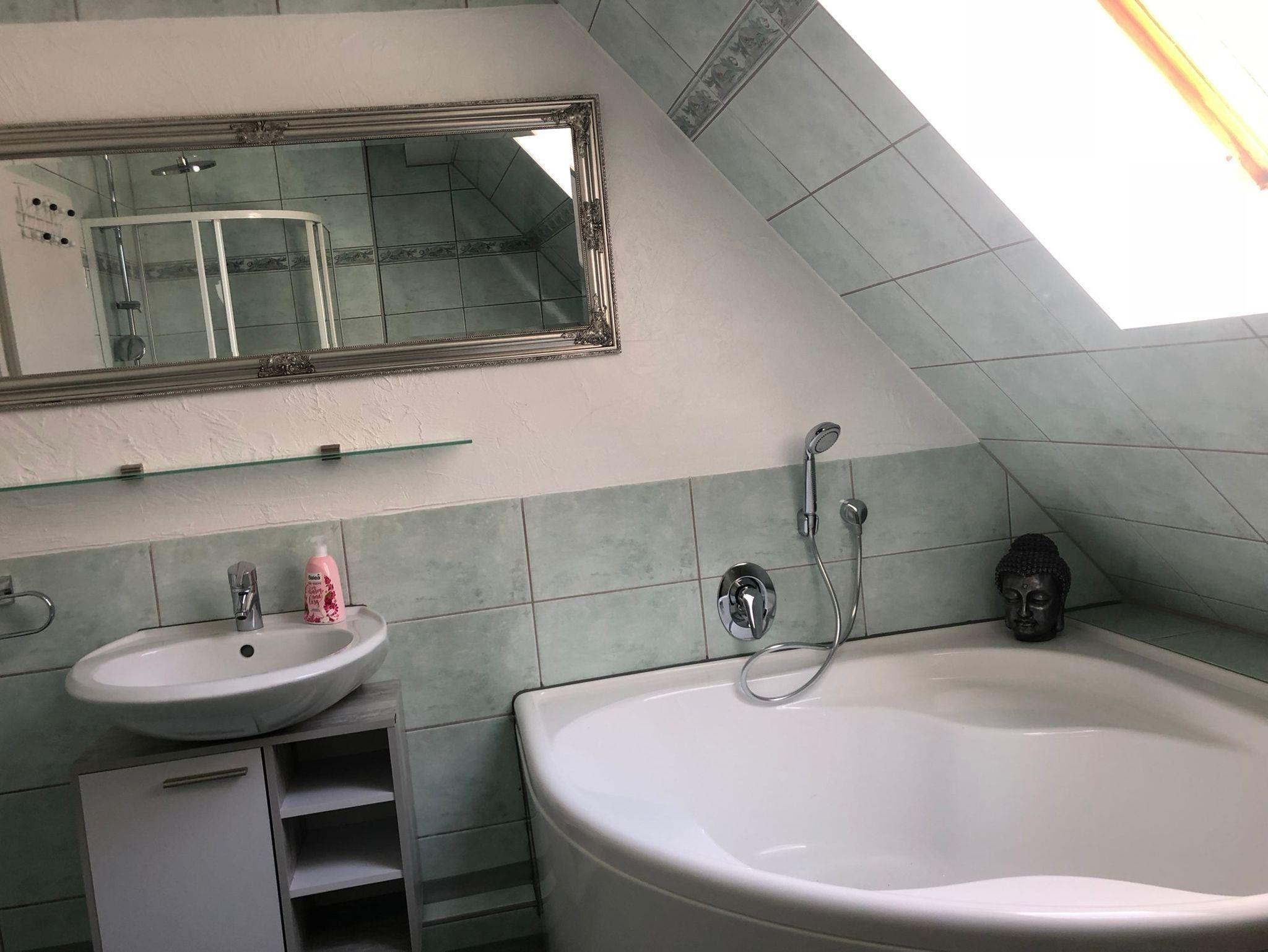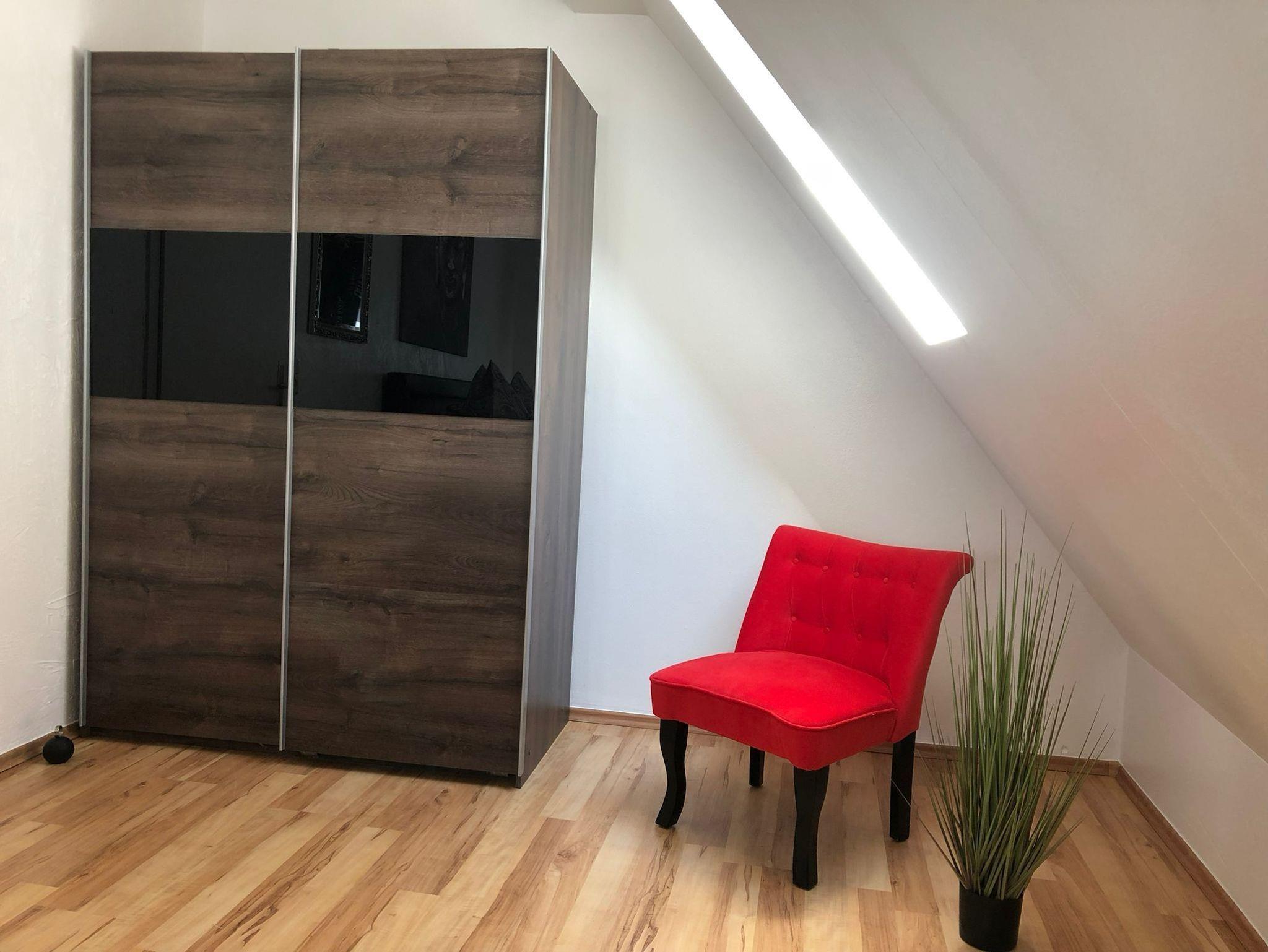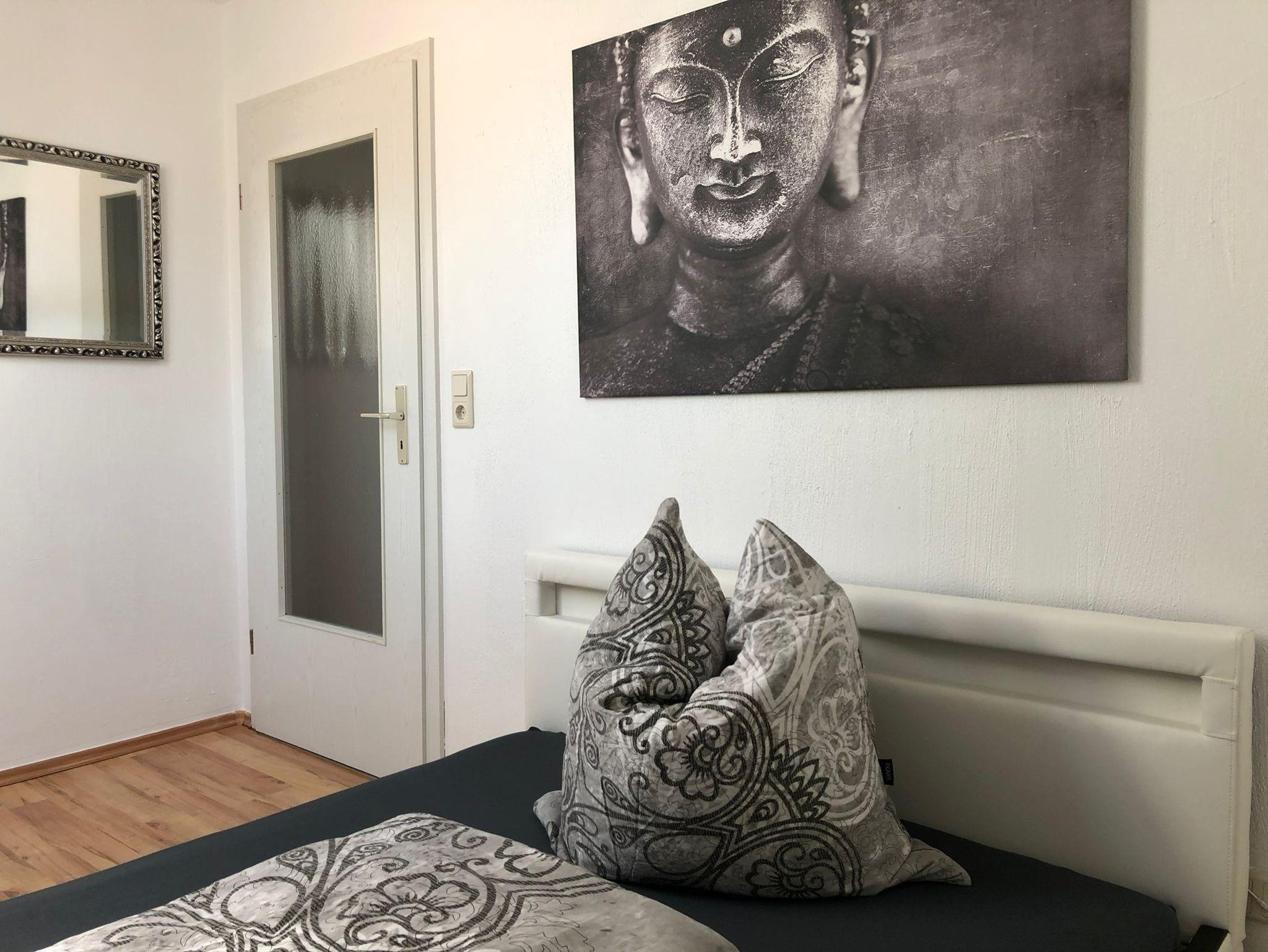 Die Ferienwohnung verfügt über einen Schlafraum mit einem Boxspringbett mit bequemer Schlafhöhe sowie einem Kleiderschrank. Das Einzelbett im zweiten Schlafzimmer besitzt mit 1,40m eine bequeme Breite. Im Kinderzimmer steht ein Etagenbett. Dort sind auch einige Spielsachen für die Kleinen. Ein Bad mit Badewanne, Dusche und WC vervollständigt das Altstadt-Apartment.
