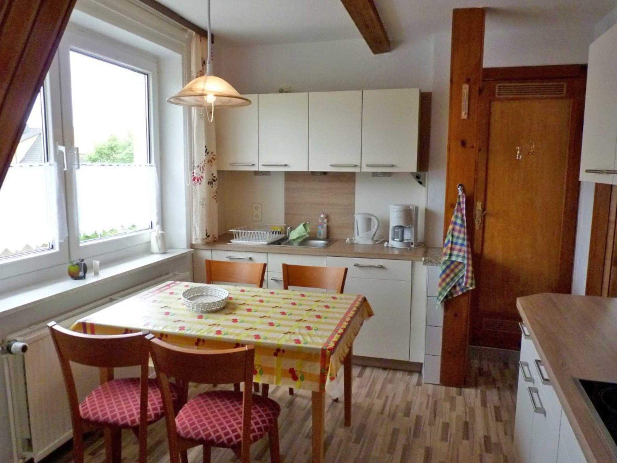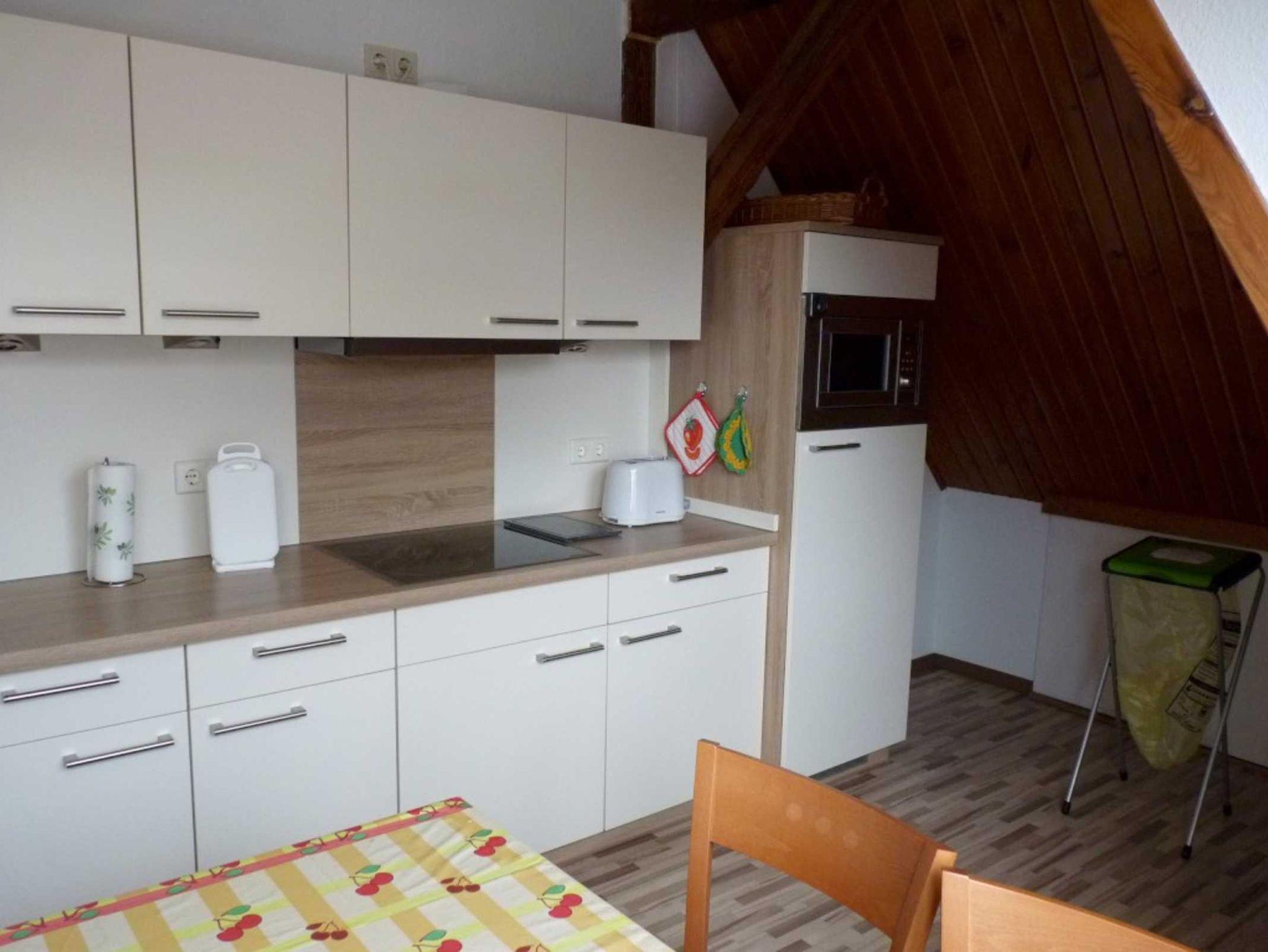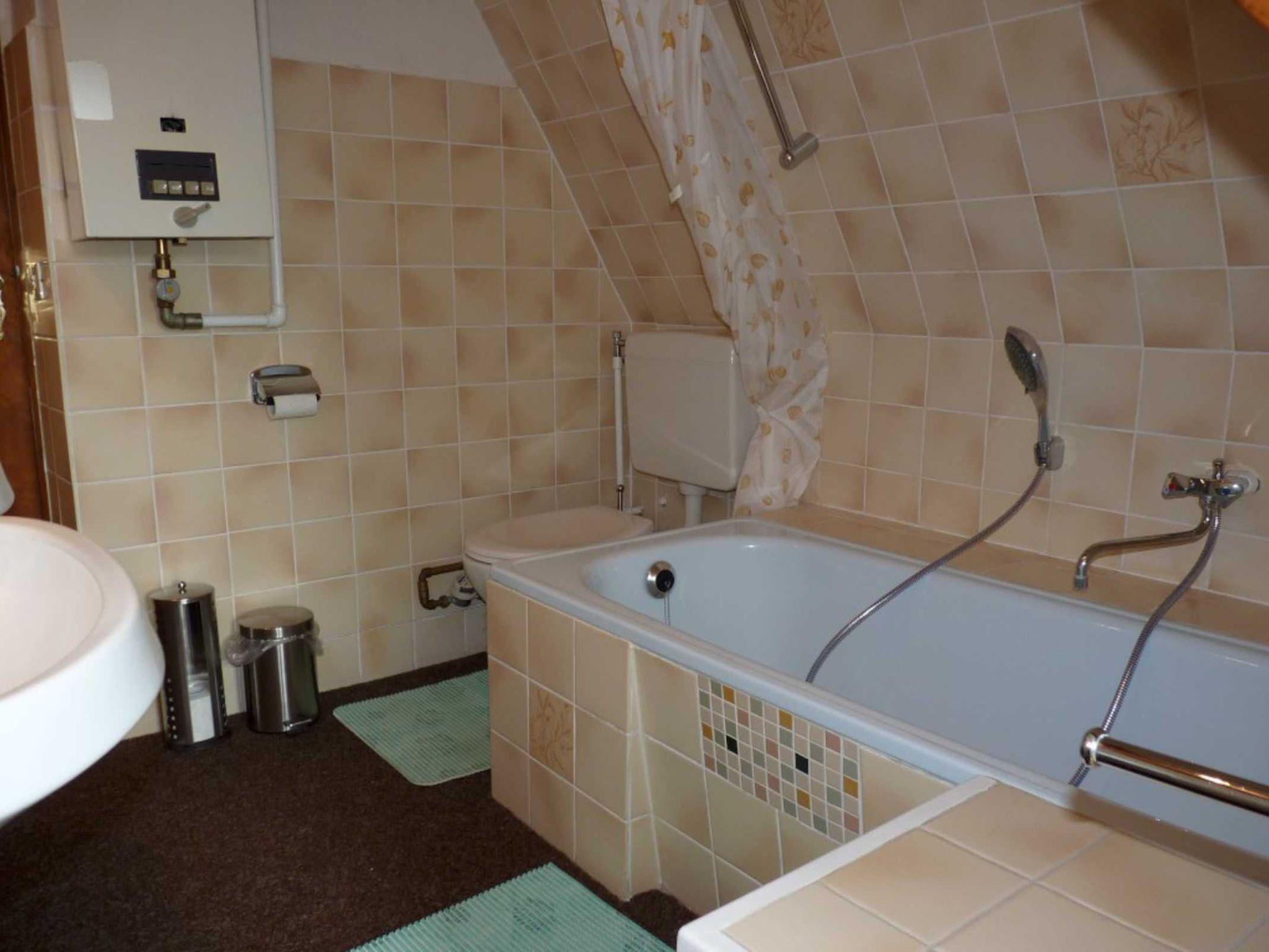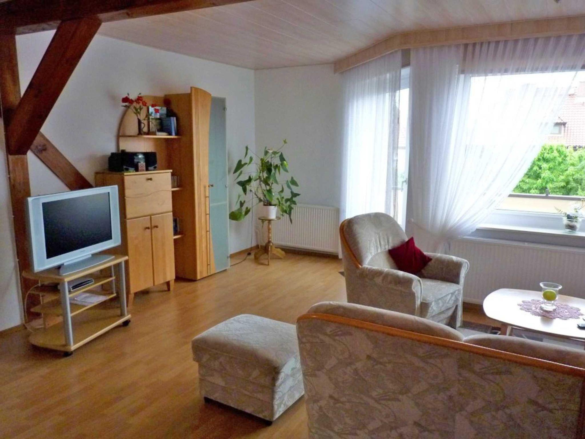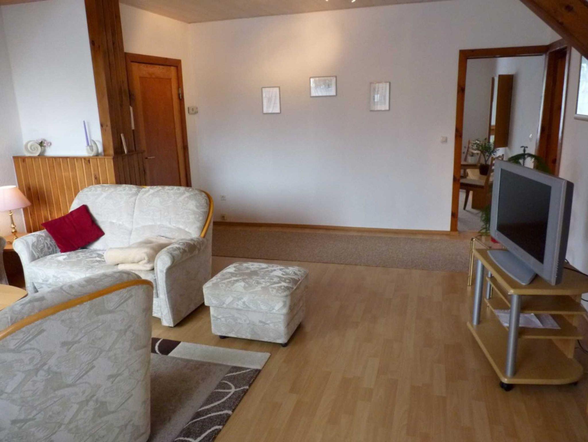 In unserer hellen Ferienwohnung finden Sie auf ca. 70 qm Wohnfläche alles, was Sie für einen erholsamen Urlaub brauchen. Ein gemütliches eingerichtete Wohnzimmer mit Balkonzugang Sitzecke, Radio und Sat- TV, Schlafzimmer mit Doppelbett (1 Aufbettung für die 5. Person mit einem Klappbett möglich, aufstellbar im Wohnzimmer oder Schlafzimmer) und Kleiderschrank sowie Anrichte mit einem großen Spiegel. Ein separater kleinerer Schlafraum steht für eine Aufbettung (2 Personen) bereit und ist mit einer 1,5 fachen Schlafcouch eingerichtet. Das Wannenbad mit Duschvorrichtung ist mit WC und zwei Waschbecken ausgestattet.