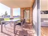 Heller Wohnbereich mit Flachbild TV, einem bequemen Sofa und zwei Sessel. Die Terrasse ist zugänglich über den Wohn- und Schlafbereich. Eine Aufbettung für zwei Personen ist auf dem Schlafsofe (186 x 198 cm) möglich.