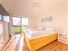 Das gemütliche Schlafzimmer mit See- und Hafenblick, Boxspringbett (durchgängige Matratze 180 cm x 200 cm), aber zwei geteilte Topper.