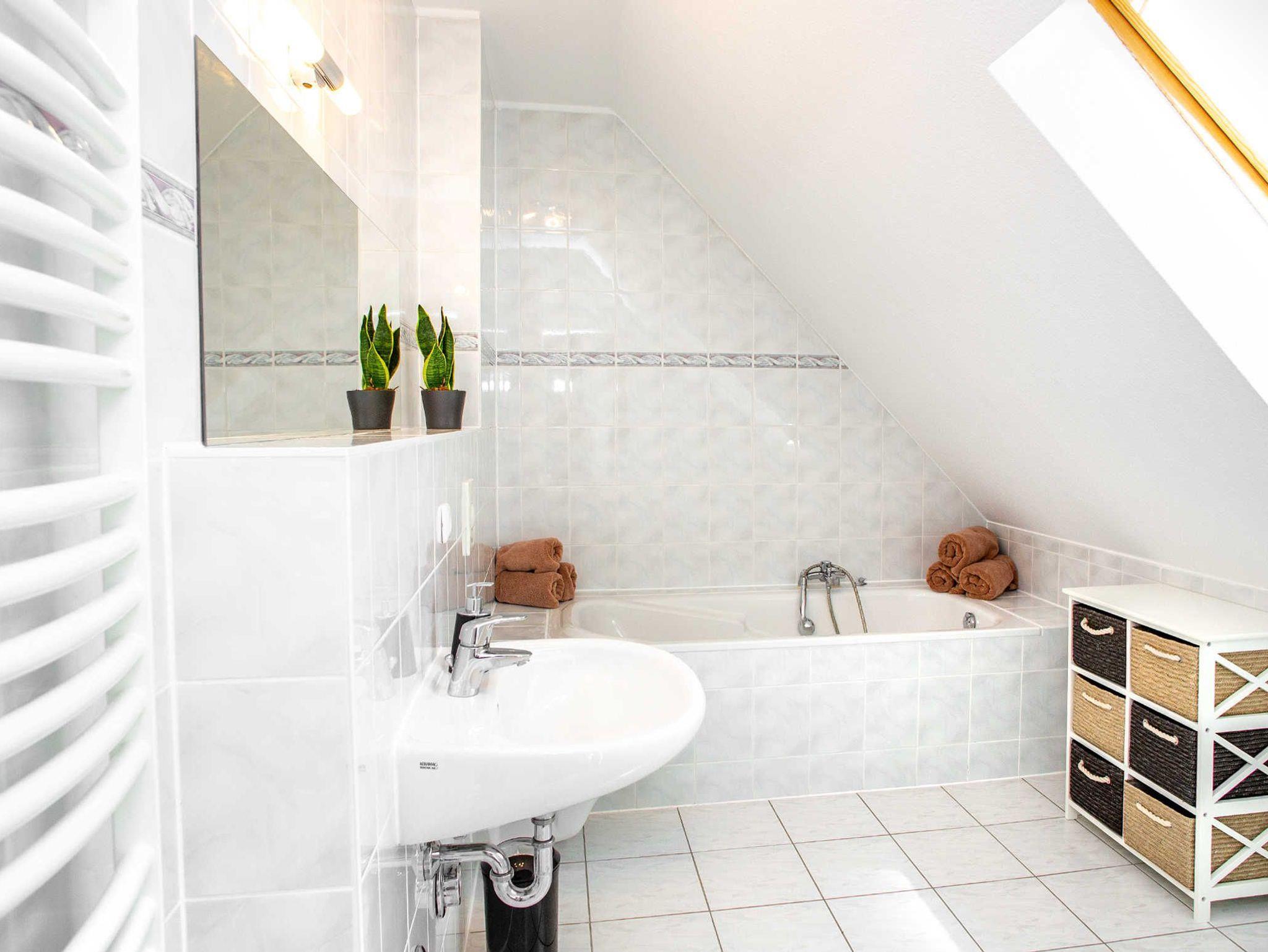 Direkt am Yachthafen von Waren, finden Sie eine einzigartige Ferienwohnung. Auf zwei Etagen verteilt ist diese Wohnung perfekt für 4 bis 8 Personen geeignet. In der unteren Etage befindet sich das Duschbad sowie eines der zwei Schlafzimmer. Besonders jedoch ist das Wohnzimmer mit Esstisch und hervorragender Küche, bei deren Einricht an alles gedacht wurde. Nicht nur modern sondern durchdacht ist das Gesamtkonzept der Einrichtung. Ganz besonders sind die zwei Bilder, die von einem Künstler der Region geschaffen wurden.