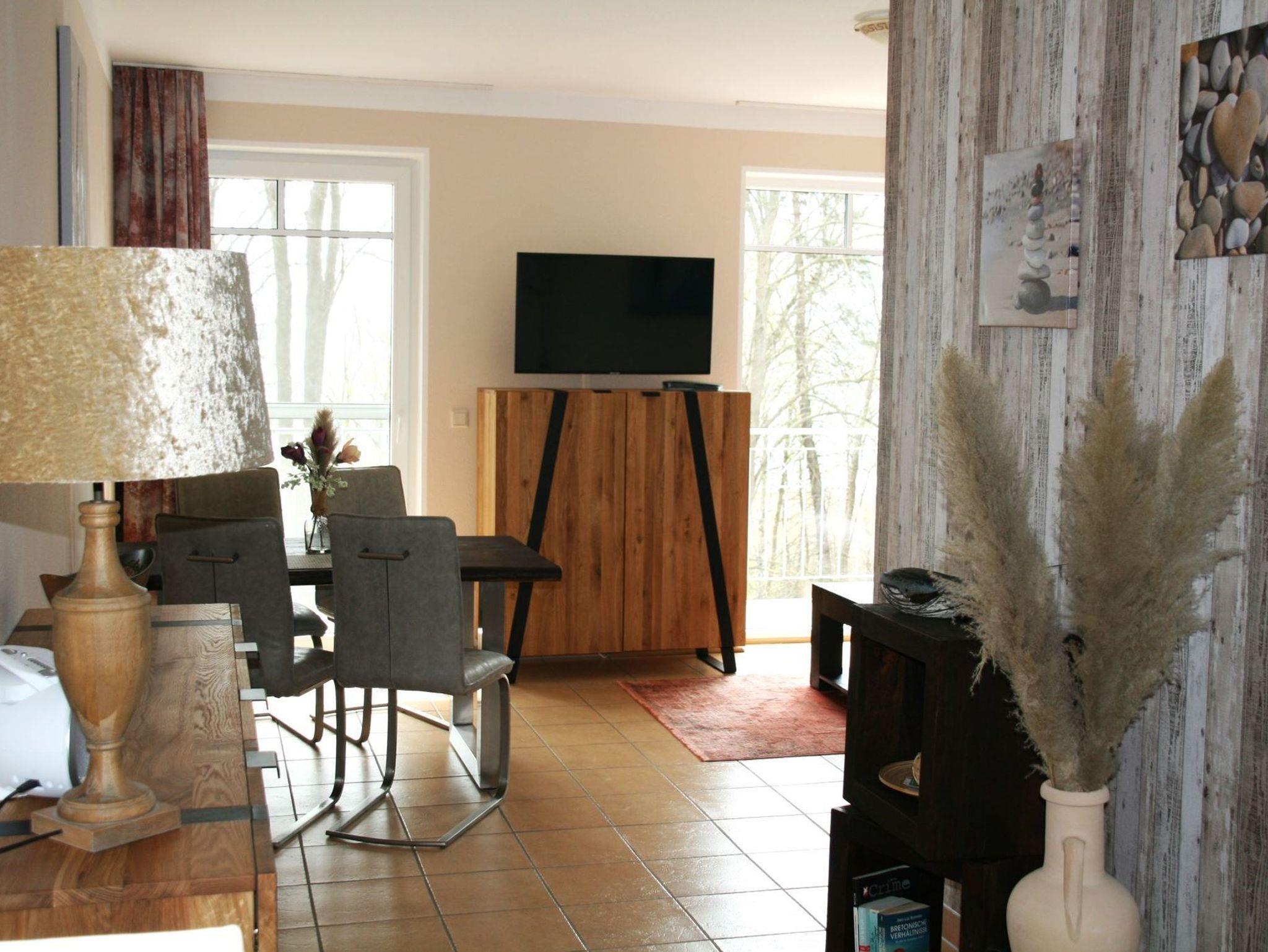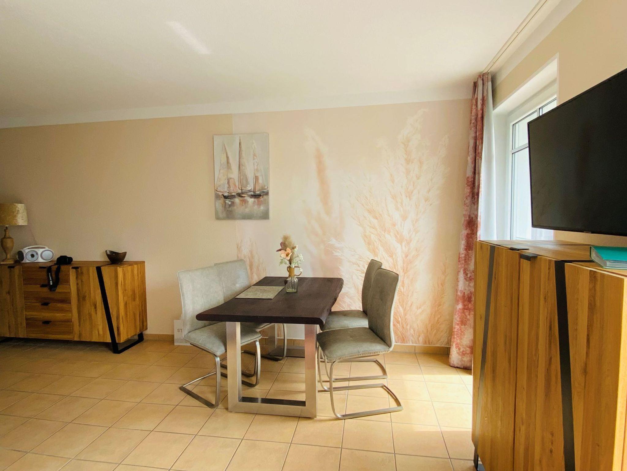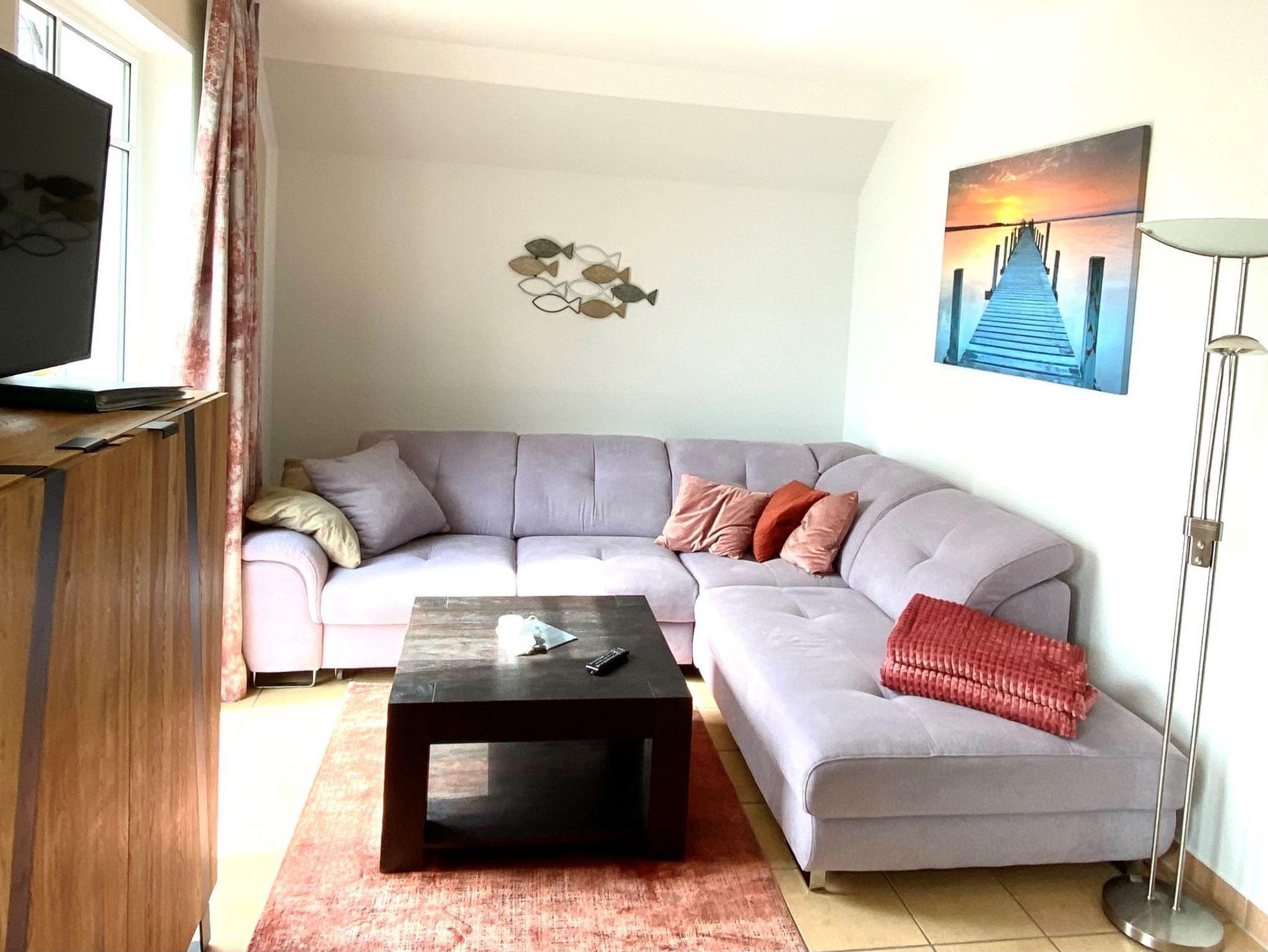 In der schönen in der 1. Etage gelegenen , 80 m² großen Ferienwohnung (4.4) erwartet Sie ein großzügiger Wohn- und Essbereich mit TV, Radio, tollem Seeblick und Zugang zum möblierten, sonnigen Balkon. In diesem Bereich befindet sich auch die vollständig ausgestattete Küche mit Backofen, Plattenherd, Mikrowelle, Wasserkocher und Kaffeemaschine.