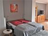 Im Wohnbereich gibt es einen Flachbildfernseher und einen Blu-Ray Player. Die Couch im Mittelteil zwischen Küche und Wohnzimmer kann zu einem vollwertigen Bett (170cm breit) ausgeklappt werden. Mit einer Gardine kann dieser Bereich auch von der Küche abgetrennt werden.