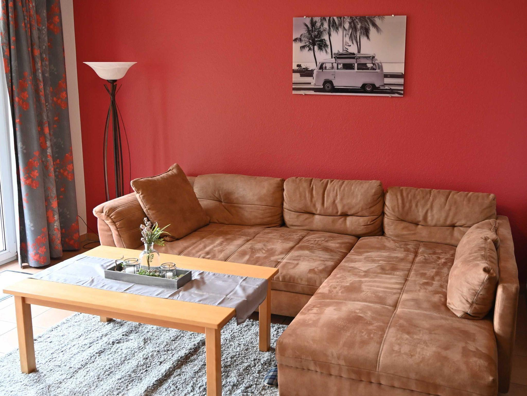 Die große Ledercouch und die Möbel in heller Buche sowie ansprechende Dekorationen geben der Ferienwohnung ein Ambiente, in dem Sie sich wohlfühlen werden. Die Küche ist neu und komplett mit Geschirrspüler, Induktionskochfeld und Backofen ausgestattet.