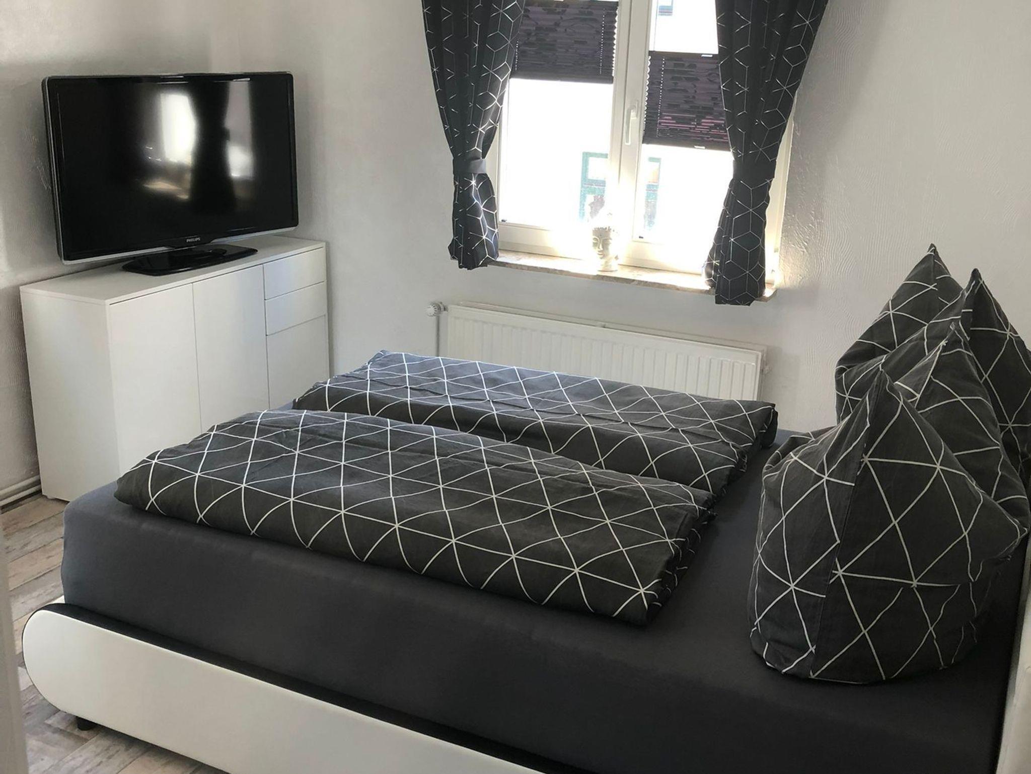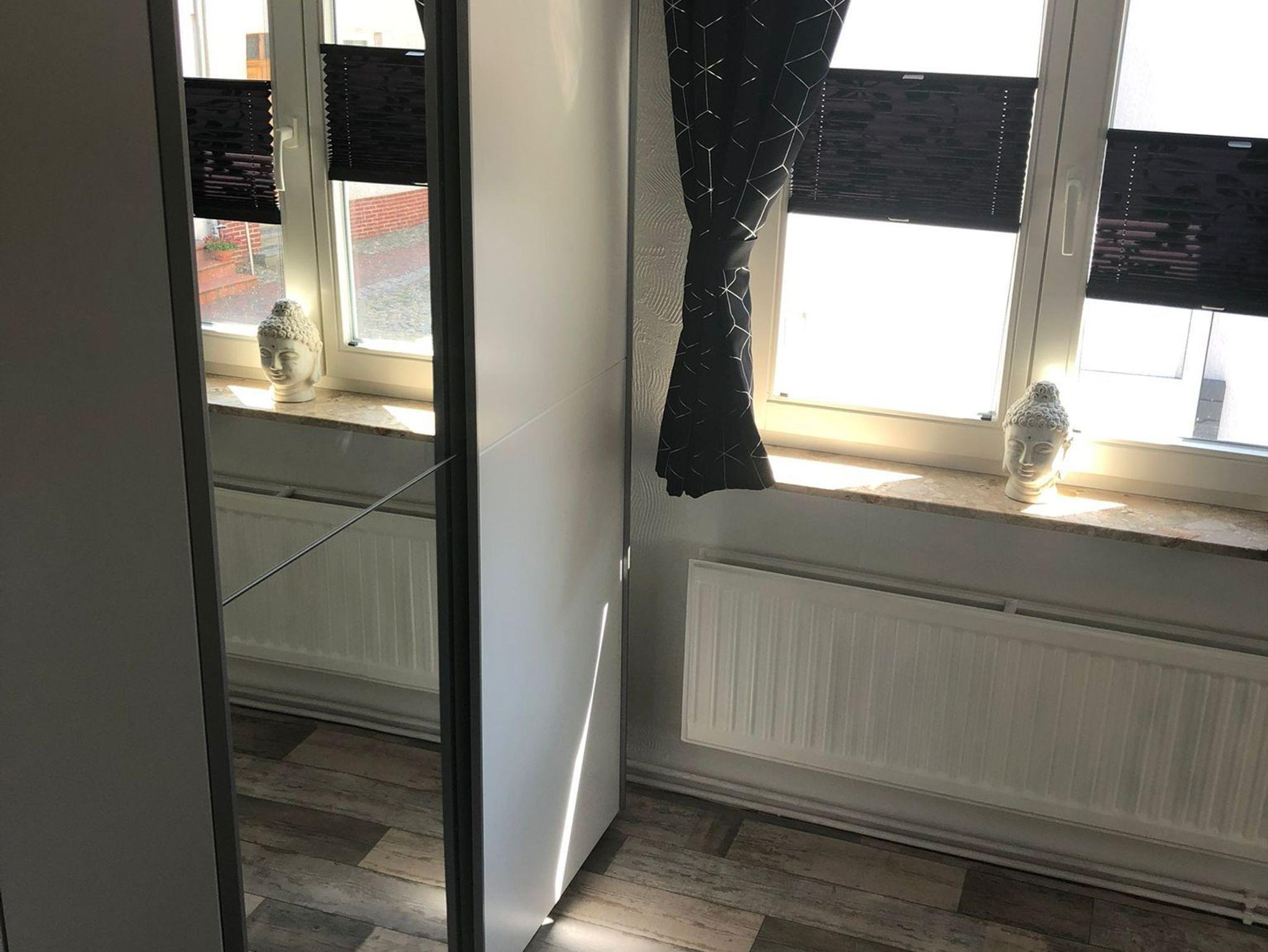 Im Schlafraum steht ein Boxspringbett (1,40m x 2,00m) mit bequemer Schlafhöhe sowie ein Schwebetürenschrank mit Spiegeltür. Die Ferienwohnung ist ausgelegt für max. 2 junge bzw. jung gebliebene Erwachsene.