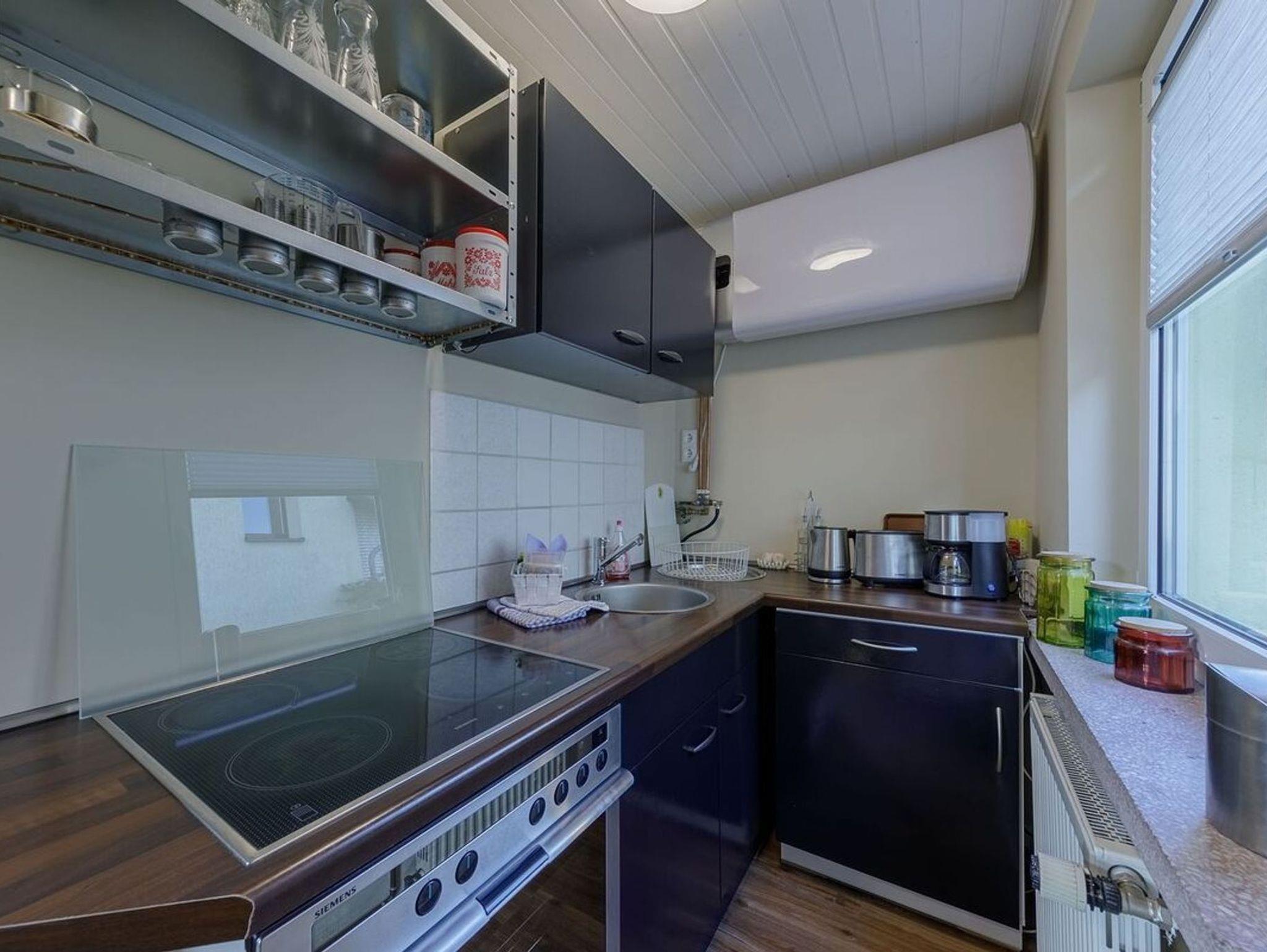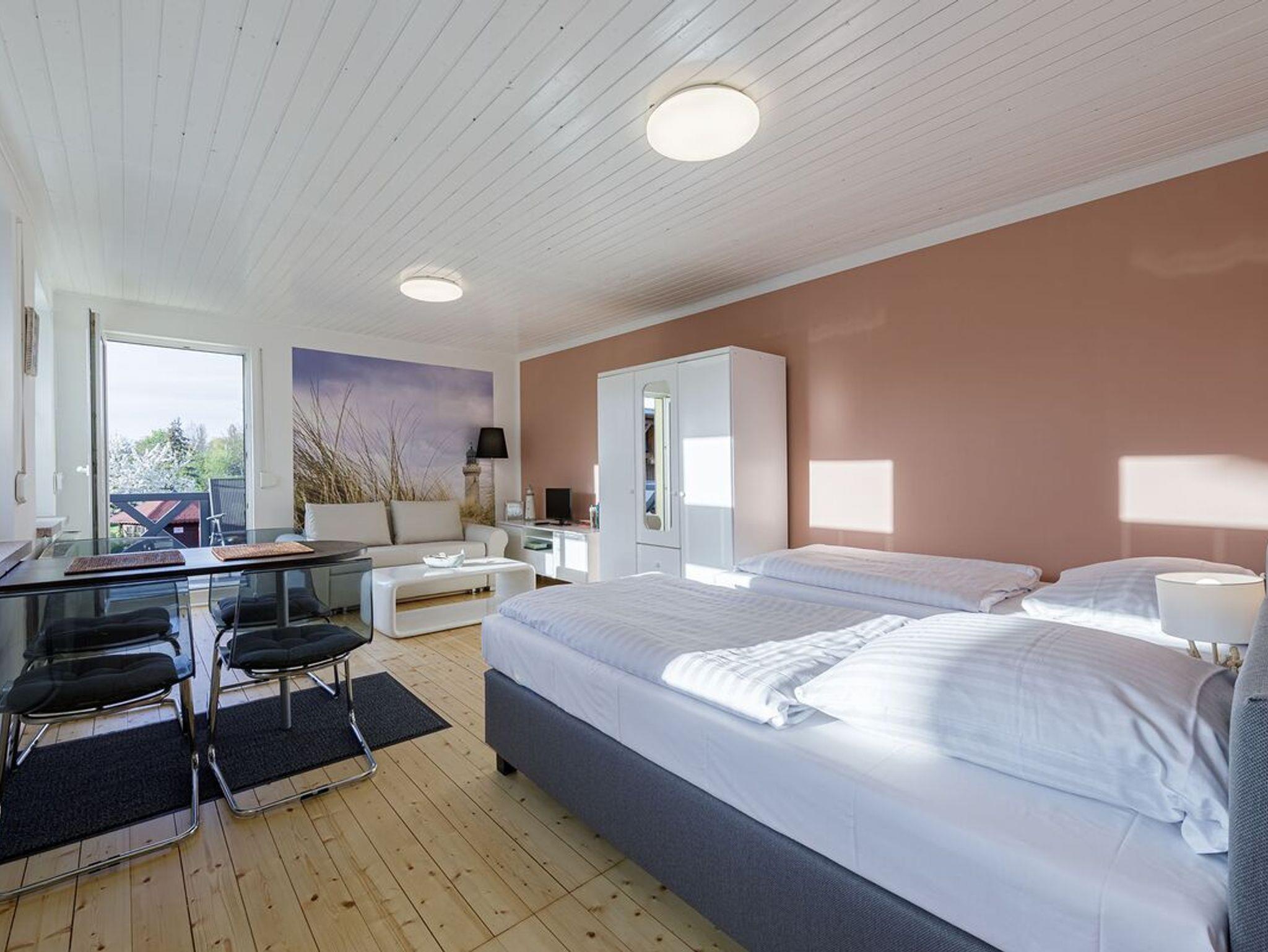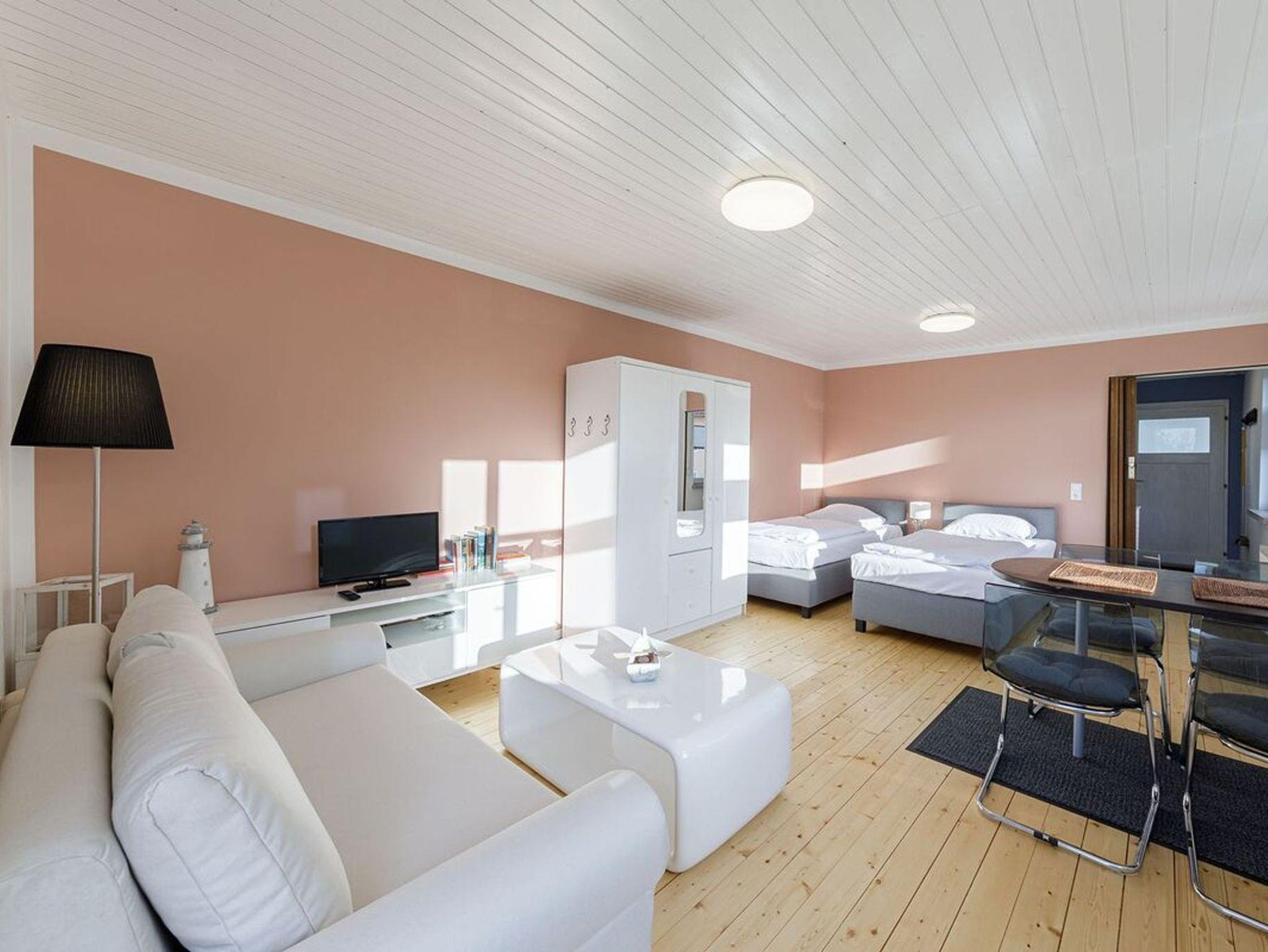 Die Ein-Raum-Ferienwohnung (36 m²) mit einem Wohn- und Schlafraum und einer getrennten Kochnische ist eine Nichtraucher - Wohnung für 2 Personen und gehört mit fünf weiteren Wohnungen zum Hafenhaus. Sie befindet sich in der 1. Etage.