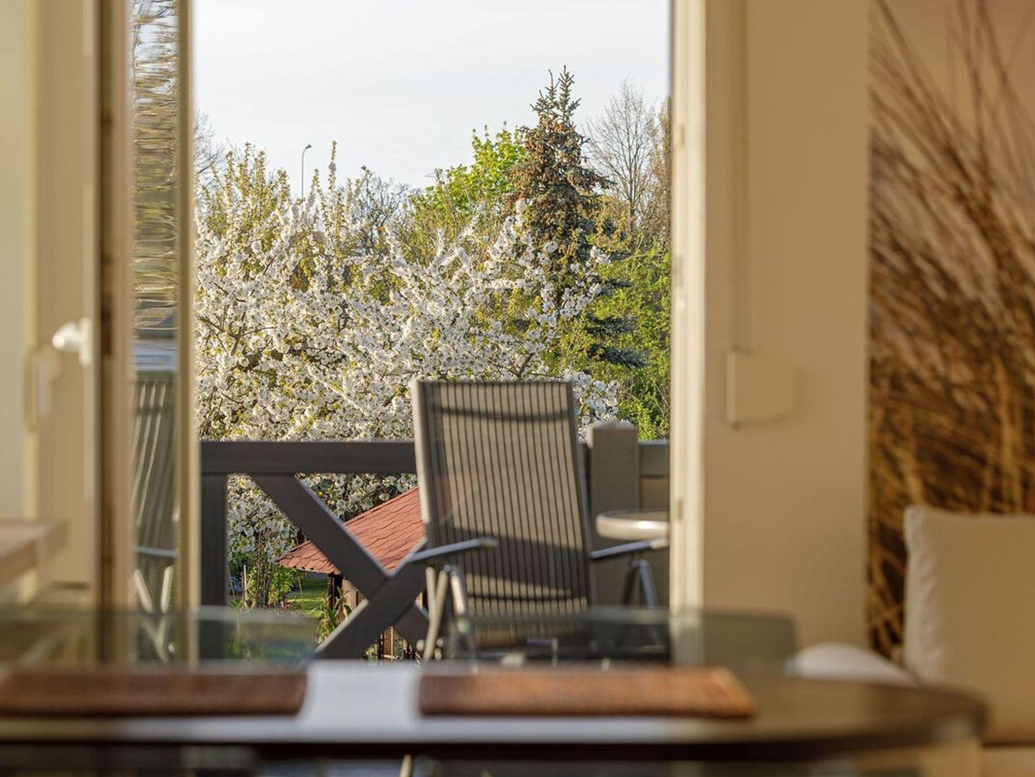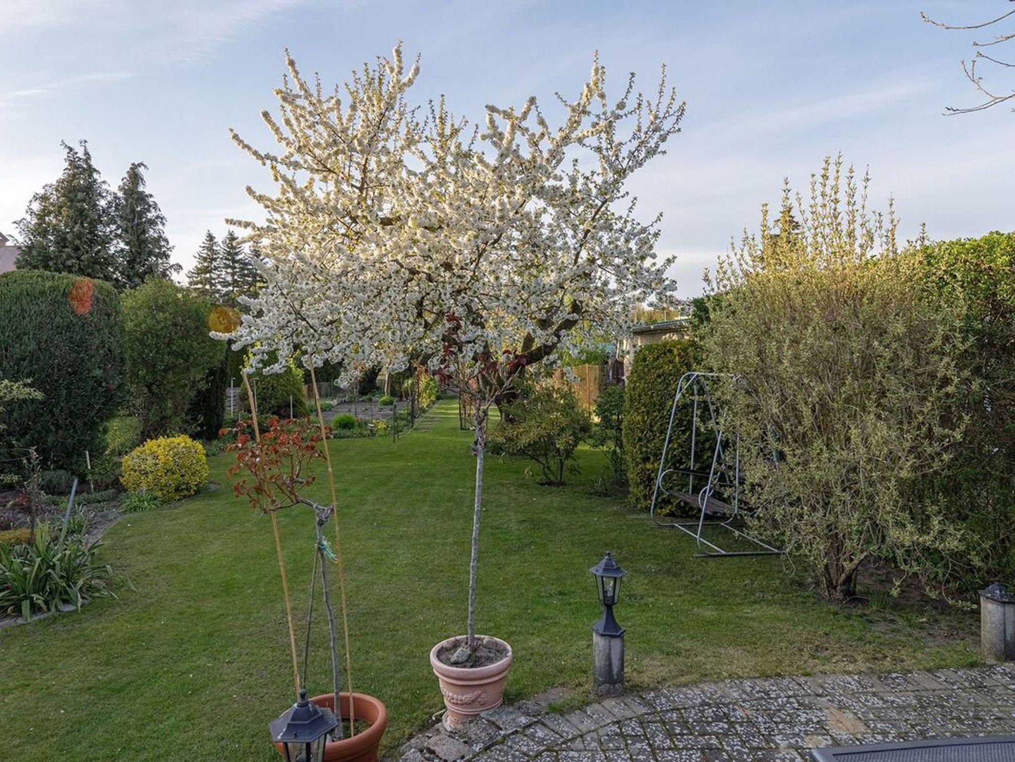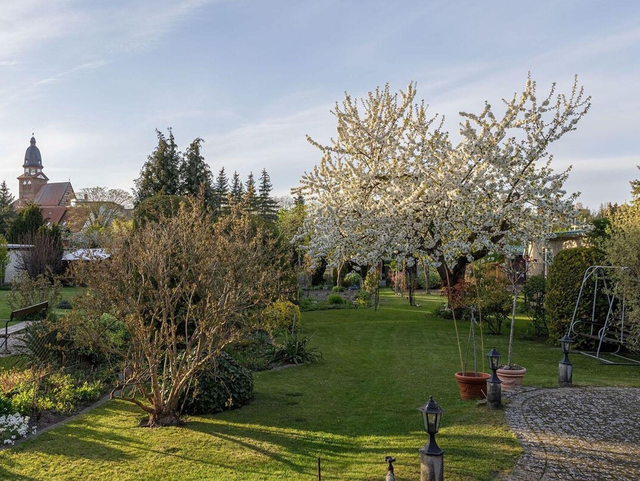Der idyllische Garten ist eine Oase, wenn Sie sich erholen wollen. Der Blick auf die Warener Altstadt ist wunderschön.