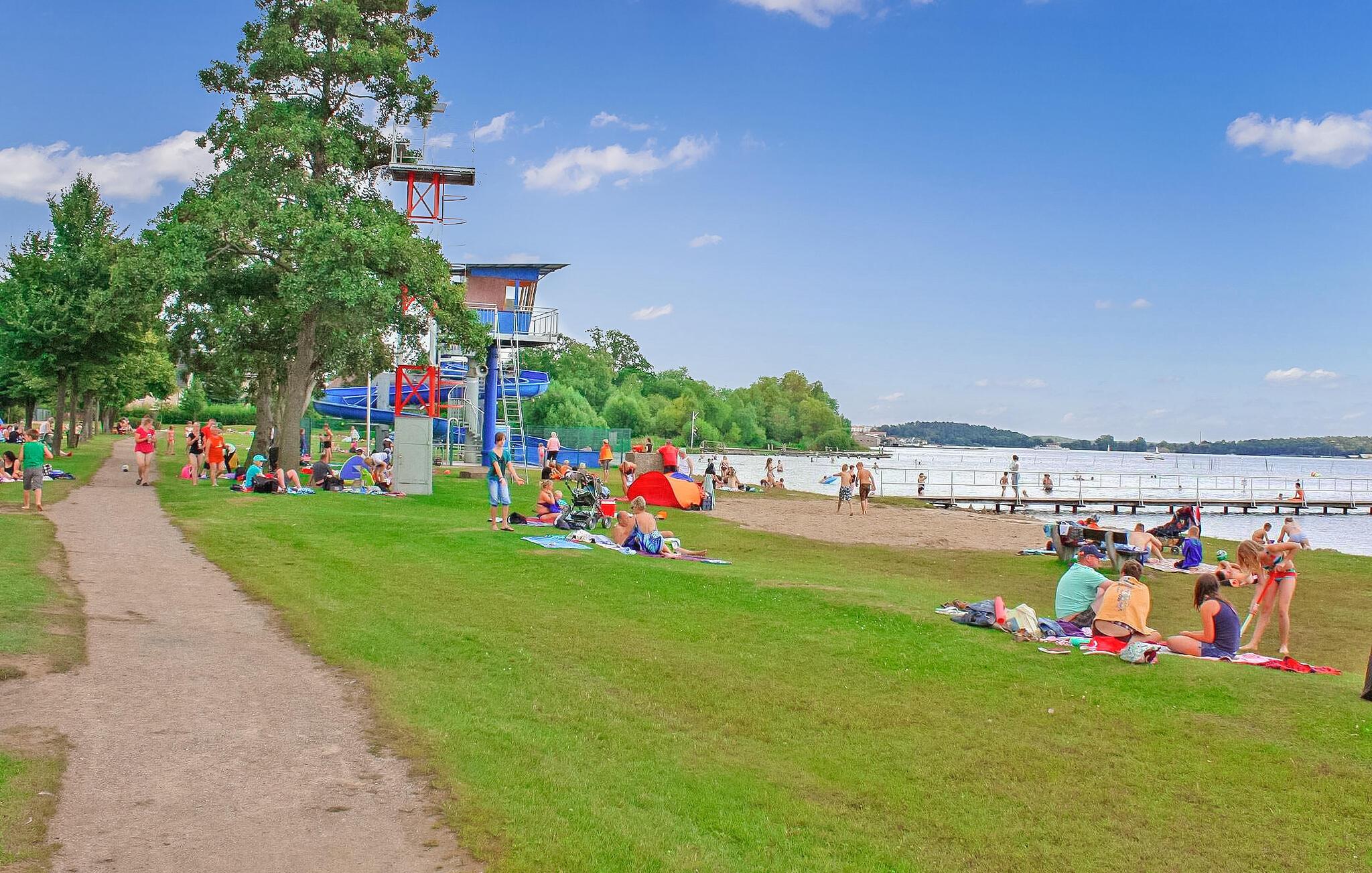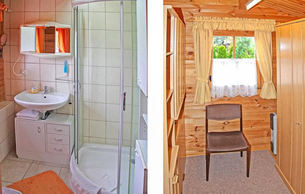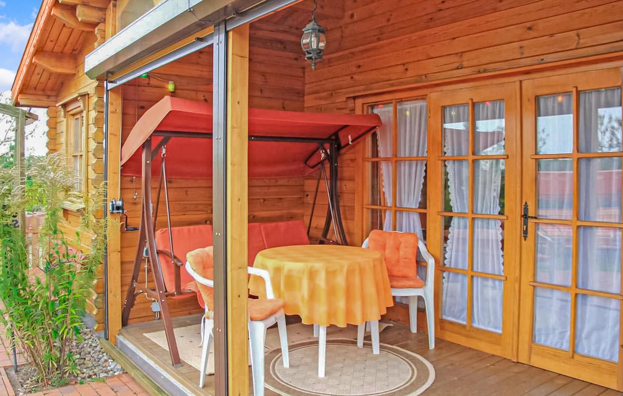 Sommerhuset i bjælkehyttestil er fritliggende og adskilt på ejerens 800 kvadratmeter store boligejendom i et boligområde i Warenshof-kvarteret. Restauranter, butikker og en bevogtet strand ved Müritz inden for en radius af 3 km. Togstation med forbindelser til turistcentre i Mecklenburgs sødistrikt ca 100 m. Feriehuset er udstyret med: kombineret stue/soveværelse (polstrede møbler, dobbeltseng, tv, radio), påklædningsværelse, tekøkken (elkomfur med ovn , køleskab med fryserum, opvaskemaskine, diverse køkkenmaskiner), bad/toilet, centralvarme. Tilgængelig: møbleret terrasse, udendørs opholdsområde med Hollywood-gynge og liggestole, grill, cykelkælder og parkeringsplads (carport). Den samlede pris inkluderer slutrengøring, sengelinned, håndklæder, vand og energi. Betales på stedet: turistskat. Kæledyr er ikke tilladt i denne ejendom. Den statsgodkendte Waren spa ligger direkte ved Müritz i charmerende omgivelser. Det er også turistcentret i Mecklenburg Lake District. Attraktioner omfatter den historiske gamle bydel, havnen med passagerskibsfart, den tilstødende promenade og talrige spisemuligheder samt Müritzeum, et naturoplevelsescenter med et enormt ferskvandsakvarium og udstillinger om de særlige kendetegn ved Mecklenburgs sødistrikt. Der er også udendørs swimmingpools, båd- og cykeludlejning, surf- og sejlerskoler og mange indkøbsmuligheder i byen. Waren er indgangsporten til nationalparken Müritz, som nemt kan udforskes via det veludviklede netværk af cykelstier. Motorvejsforbindelse ca 25 km.