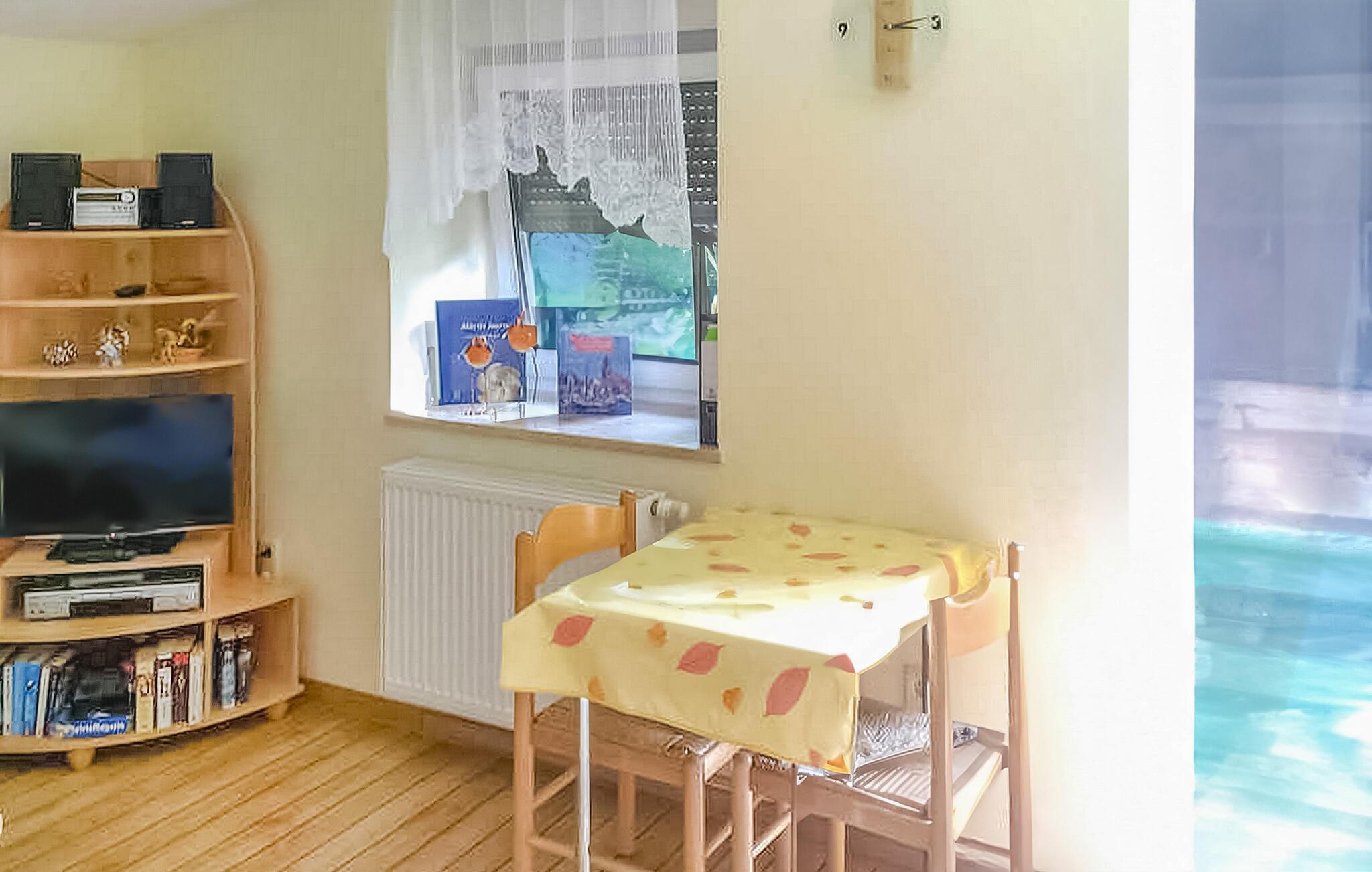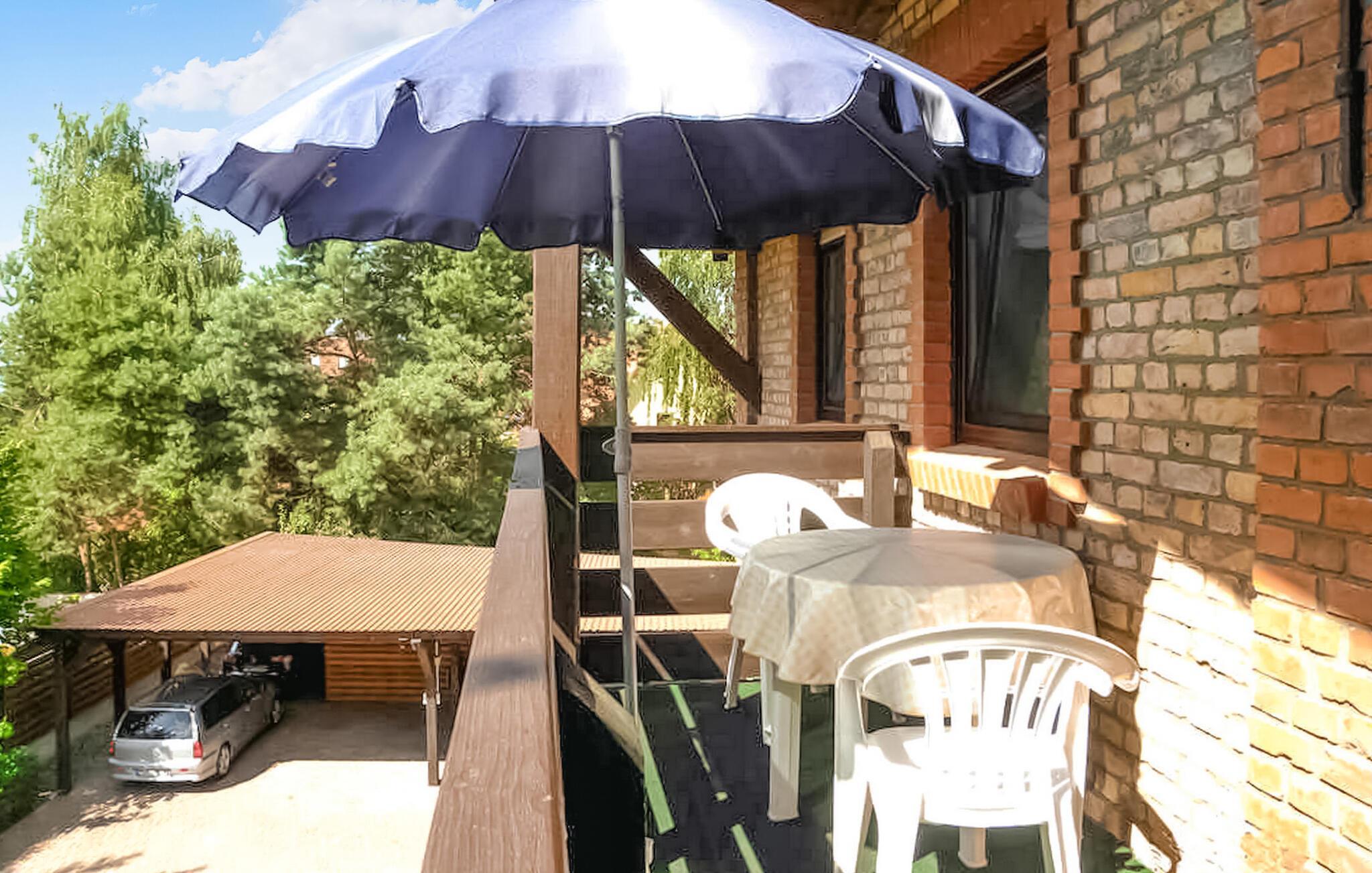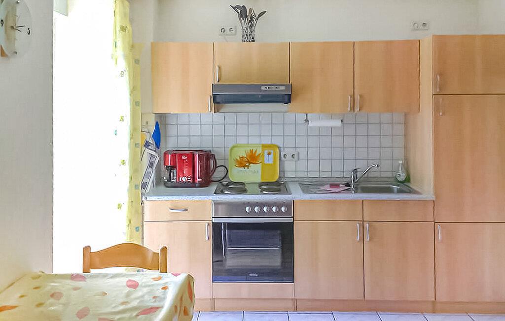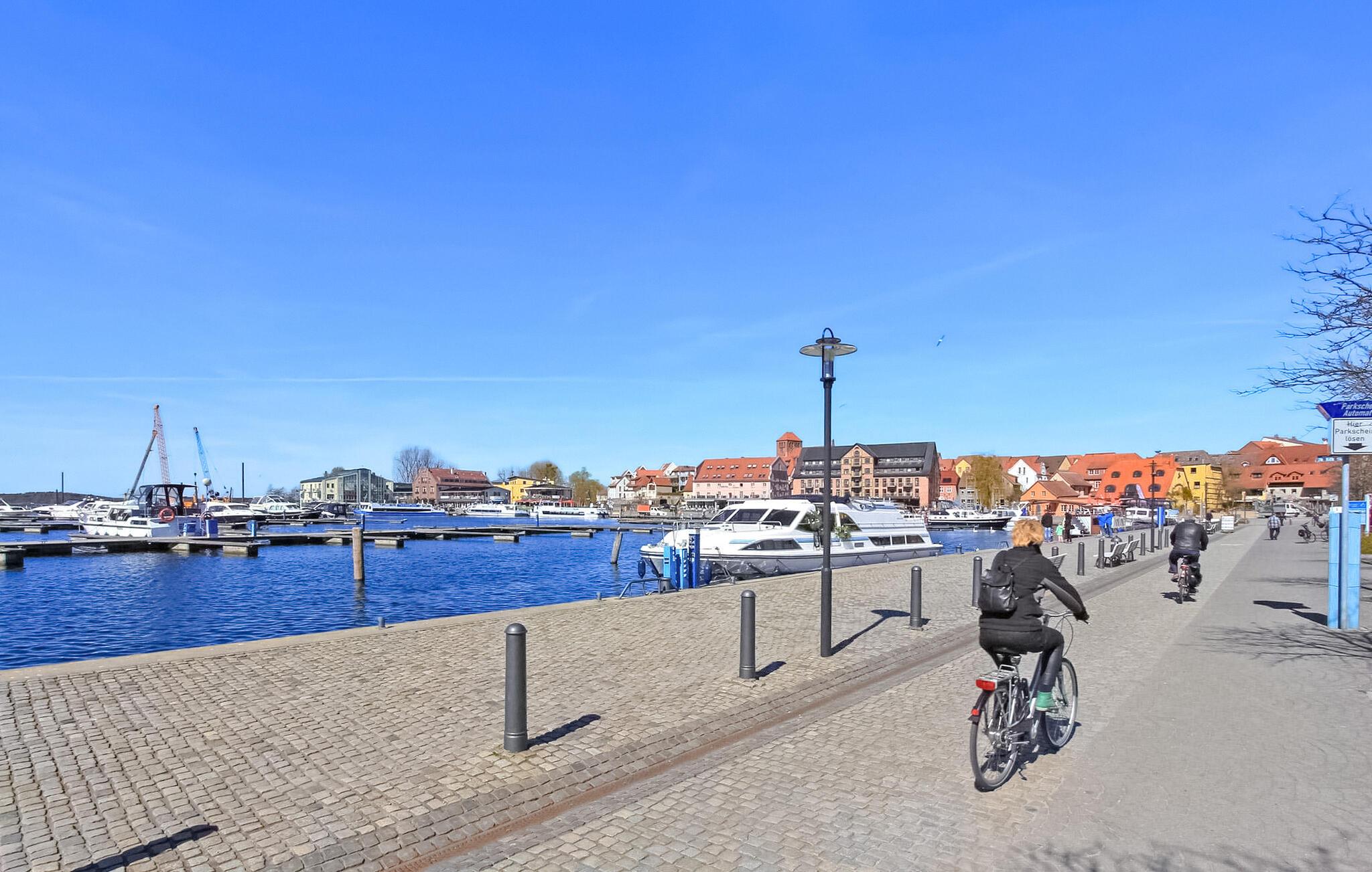 Den 3-stjernede ferielejlighed med separat adgang ligger på øverste etage i en beboelsesejendom i et lokalområde. Der er kun omkring 200 meter til Müritz og omkring 1 km til havnen. Boligen er udstyret med en stue (polstrede møbler, spiseplads, SAT/TV, radio med CD-afspiller), et soveværelse (dobbeltseng og enkeltseng), et åbent køkken (el-komfur, køleskab, kaffemaskine) og et badeværelse (bruser/toilet), centralvarme. Der er også et strygejern og et strygebræt. Der er en rejseseng, en balkon, et udendørs opholdsområde, en grill og en parkeringsplads til rådighed. Den samlede pris inkluderer slutrengøring, sengelinned, håndklæder samt vand- og energiforbrug Betales lokalt: spa-afgift. Kæledyr er ikke tilladt i denne ejendom. Den statsgodkendte Waren spa ligger direkte ved Müritz i charmerende omgivelser. Det er også turistcentret i Mecklenburg Lake District. Attraktioner omfatter den historiske gamle bydel, havnen med passagerskibsfart, den tilstødende promenade og talrige spisemuligheder samt Müritzeum, et naturoplevelsescenter med et enormt ferskvandsakvarium og udstillinger om de særlige kendetegn ved Mecklenburgs sødistrikt. Der er også udendørs swimmingpools, båd- og cykeludlejning, surf- og sejlerskoler og mange indkøbsmuligheder i byen. Waren er indgangsporten til nationalparken Müritz, som nemt kan udforskes via det veludviklede netværk af cykelstier. Motorvejsforbindelse ca 25 km.
