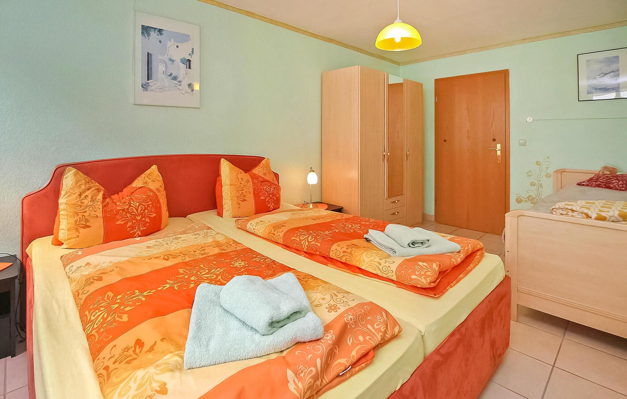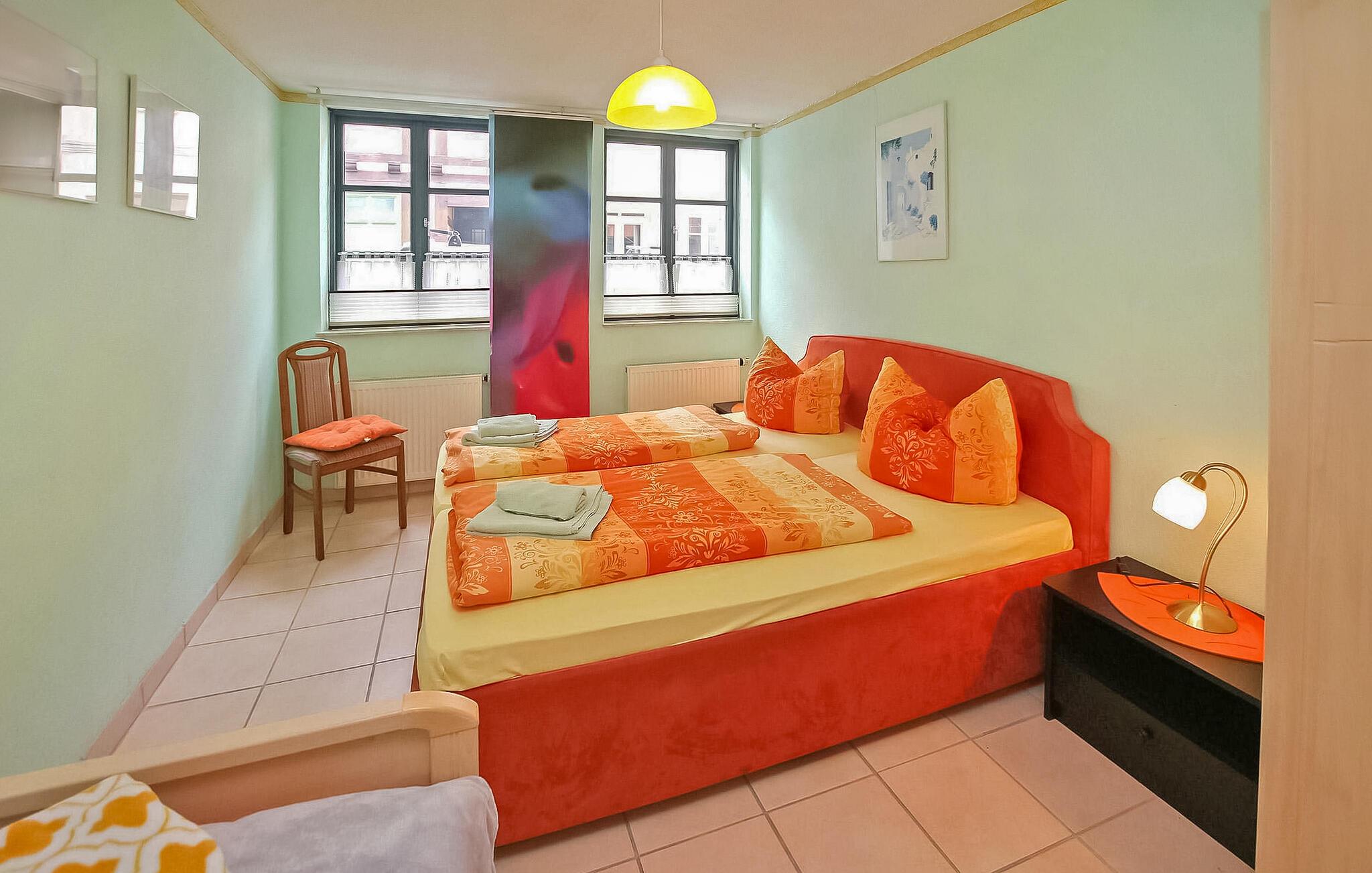 De tre ferielejligheder med separat adgang ligger på en rolig, lukket villaejendom direkte i Warens gamle bydel. Restauranter og indkøbsmuligheder er kun få meter væk. Havnen kan nås efter cirka 200 meter og næste svømmemulighed efter cirka 600 meter. Tilgængelig: WiFi, terrasse, udendørs opholdsområde med grillfaciliteter og gratis parkeringsplads til hver lejlighed på den lukkede ejendom. Den samlede pris inkluderer sengelinned, håndklæder, vand, energi og slutrengøring. Turistskat på stedet. Denne ferielejlighed ligger i stueetagen til højre. Den er udstyret med: stue (polstrede møbler, spiseplads, TV, radio), åbent køkken (elkomfur, køleskab, spiseplads, mikroovn, diverse køkkenmaskiner), soveværelse (dobbeltseng, liggestol), bad og toilet (separat værelser), centralvarme . Ferielejlighederne ligger direkte i den historiske gamle bydel i Waren/Müritz. Den statsgodkendte Waren spa ligger direkte ved Müritz i charmerende omgivelser. Det er også turistcentret i Mecklenburg Lake District. Attraktioner omfatter den historiske gamle bydel, havnen med passagerskibsfart, den tilstødende promenade og talrige spisemuligheder samt Müritzeum, et naturoplevelsescenter med et enormt ferskvandsakvarium og udstillinger om de særlige kendetegn ved Mecklenburgs sødistrikt. Der er også udendørs swimmingpools, båd- og cykeludlejning, surf- og sejlerskoler og mange indkøbsmuligheder i byen. Waren er indgangsporten til nationalparken Müritz, som nemt kan udforskes via det veludviklede netværk af cykelstier. Motorvejsforbindelse ca 25 km.