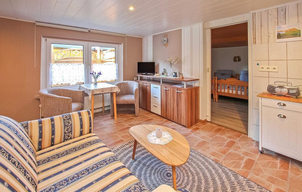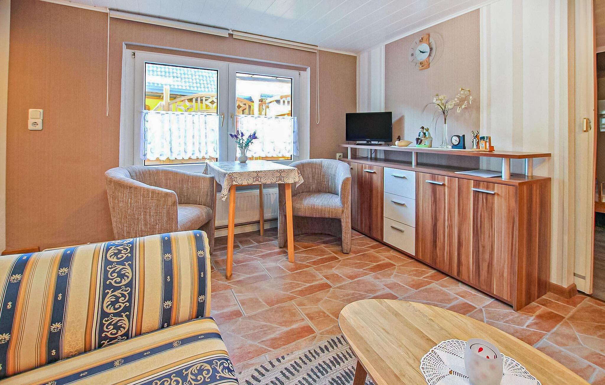 Det lille feriehus er beliggende separat på ejerens 1000 kvadratmeter store boligejendom i et roligt villakvarter. Der er ca. 800 meter til den kommunale swimmingpool på Müritz. Butikker og restauranter inden for ca. 500 m. Feriehuset ligger ca. enkelt udstyret med: Stue (polstrede møbler, opholdsområde, fladskærms-tv), soveværelse (2 enkeltsenge, polstret liggestol), åbent tekøkken (miniovn med kogeplader, køleskab, diverse køkkenmaskiner), badeværelse (moderniseret) med bruser /WC, WiFi, centralvarme Tilgængelig: overdækket, møbleret og lukket terrasse, grill, to cykler, cykelrum, parkeringsplads og opladningsmulighed (CEE 16) til elbiler (mod betaling). energi og slutrengøring er inkluderet i den samlede pris. Betales: turistskat, hvis relevant: el til opladning af elbiler.
