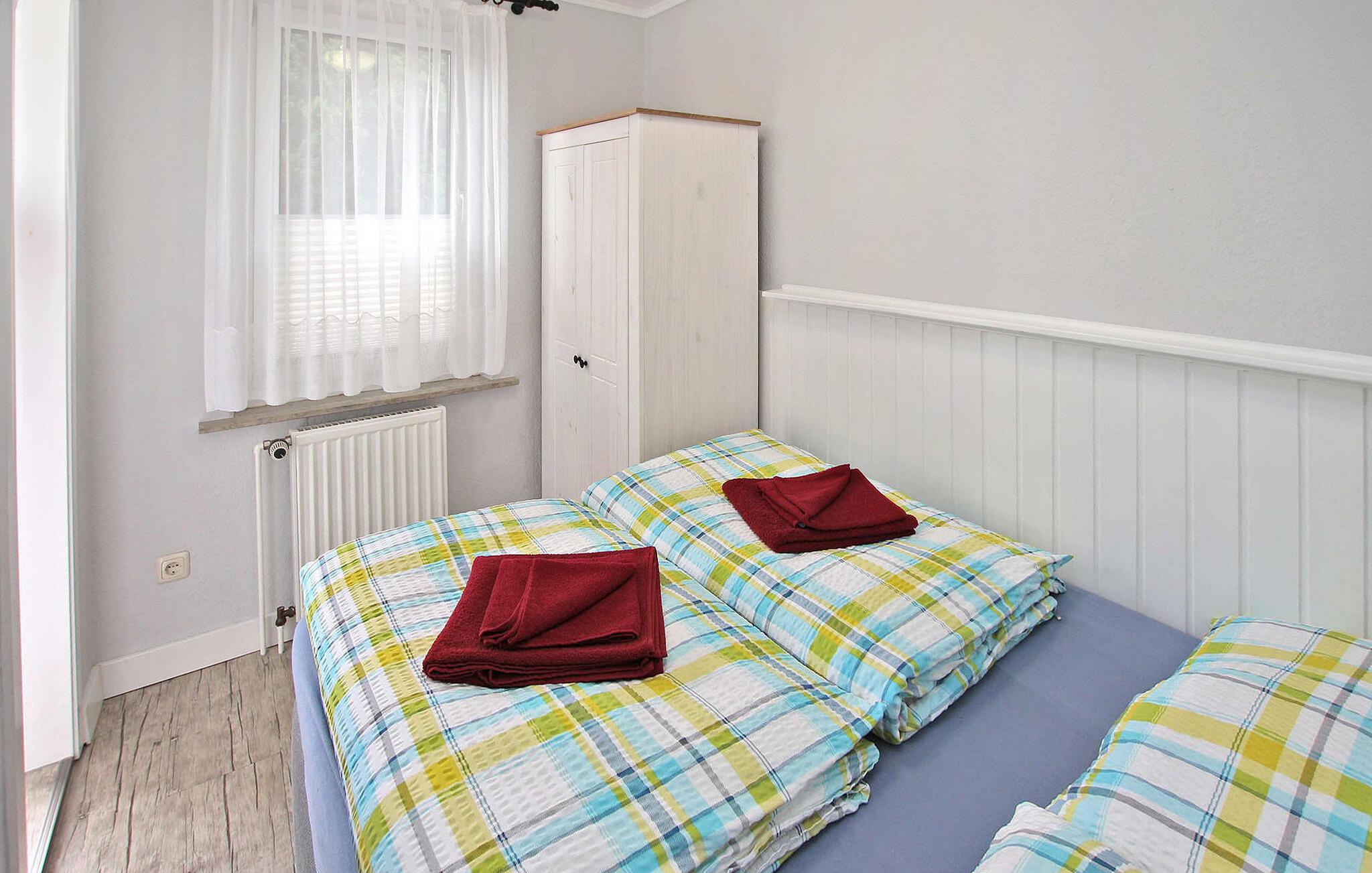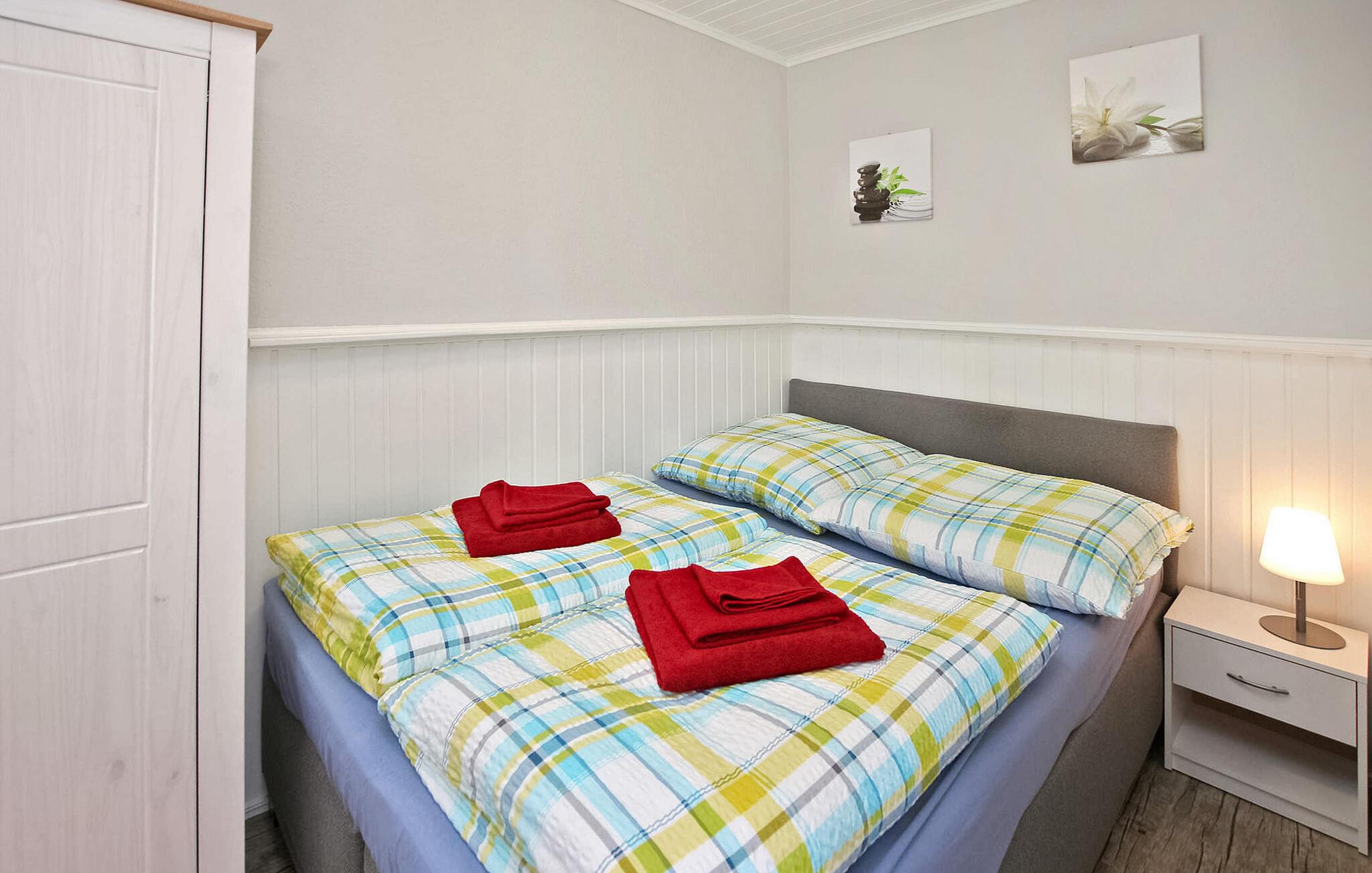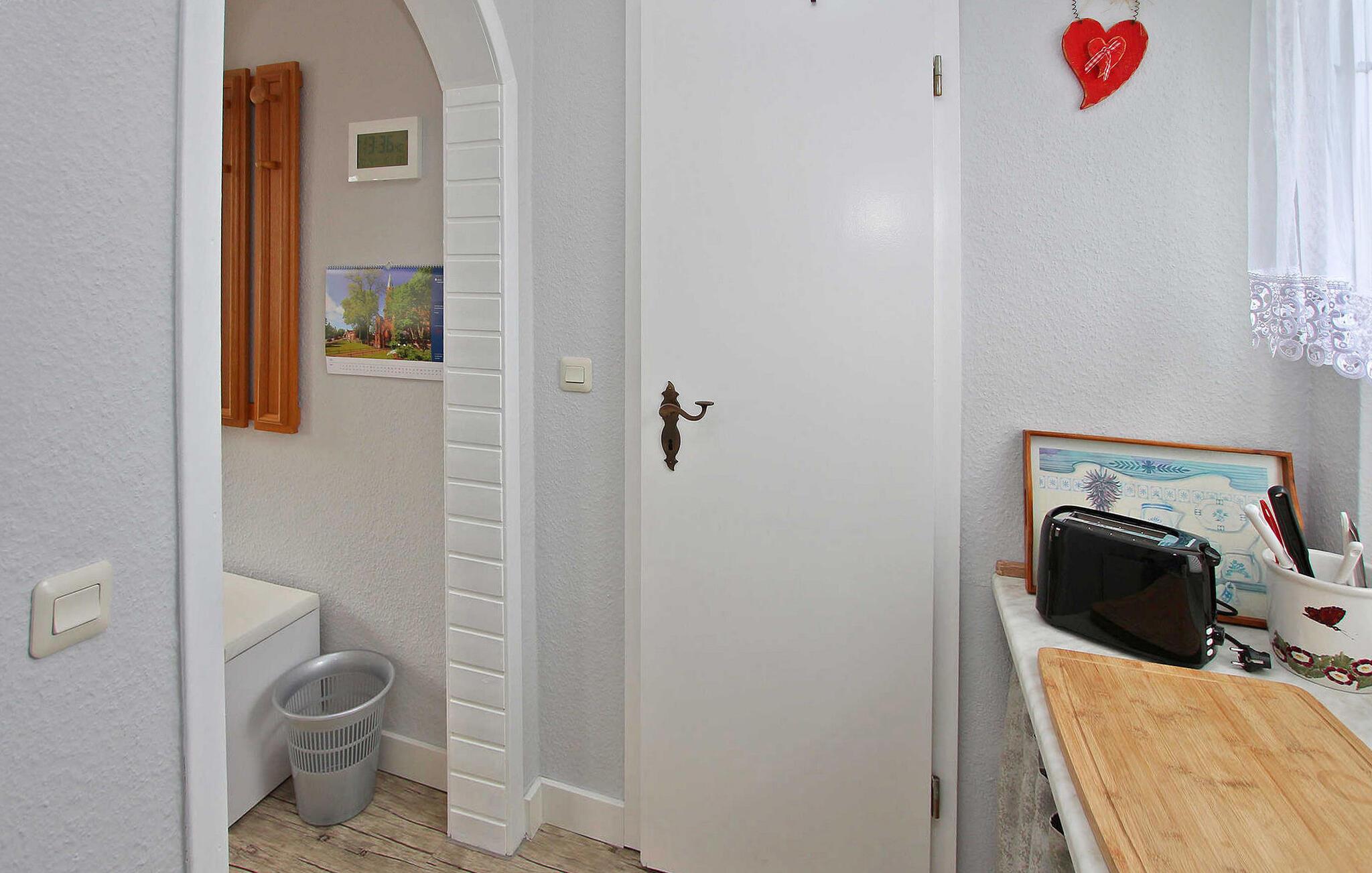 Beliggende direkte ved søen Tiefwarensee er der to ferielejligheder til hver 2 personer i et separat sommerhus på ejernes cirka 1.700 kvadratmeter store beboelsesejendom. Adgang til søen med bådhavn og badestige er kun adskilt af en cykelsti. Den centralt opvarmede, cirka 35 kvadratmeter store lejlighed blev i 2021 gennemgribende renoveret og fuldstændig nyudstyret. Lejligheden har en stue (polstret opholdsområde, fladskærms-tv, radio, spisebord), et lille køkken (elektriske kogeplader, køleskab, forskellige små køkkenmaskiner), et soveværelse (dobbeltseng) og et badeværelse (bruser, toilet) ). Der er også en møbleret terrasse, grill, parkeringsplads, liggestole, strandstol og masser af sidde- og loungingsmuligheder på den store ejendom. Den samlede pris inkluderer slutrengøring, sengelinned, håndklæder samt vand- og energiforbrug. Betales lokalt: spa-skat, robåd (hvis det ønskes) 10 EUR/dag. Kæledyr er ikke tilladt i denne ejendom. Den statsgodkendte Waren spa ligger direkte ved Müritz i charmerende omgivelser. Det er også turistcentret i Mecklenburg Lake District. Attraktioner omfatter den historiske gamle bydel, havnen med passagerskibsfart, den tilstødende promenade og talrige spisemuligheder samt Müritzeum, et naturoplevelsescenter med et enormt ferskvandsakvarium og udstillinger om de særlige kendetegn ved Mecklenburgs sødistrikt. Der er også udendørs swimmingpools, båd- og cykeludlejning, surf- og sejlerskoler og mange indkøbsmuligheder i byen. Waren er indgangsporten til nationalparken Müritz, som nemt kan udforskes via det veludviklede netværk af cykelstier. Motorvejsforbindelse ca 25 km.