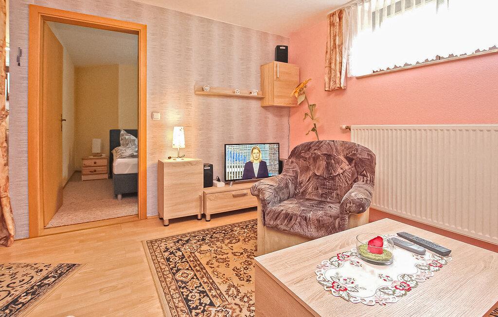 De to ferielejligheder ligger hver for sig i ejerens hus på den velholdte villaejendom i udkanten af byen (Eldenholz). Grundet sit job er ejeren sjældent til stede. Badestrand, restauranter og indkøbsmuligheder findes inden for 1 km. Denne lejlighed ligger i kælderen. Separat adgang. Udstyr med: Stue (polstrede møbler, TV, radio/cd), soveværelse (boksmadrasser), køkken (el kogeplade, miniovn, køleskab, mikroovn, spiseplads, diverse køkkenmaskiner), bad/toilet (med vindue) , Centralvarme. Liggestole, cykelstativer og parkeringsplads. Den samlede pris inkluderer sengelinned, håndklæder, energi- og vandforbrug samt slutrengøring. Betales på stedet: turistskat. Den statsgodkendte Waren spa ligger direkte ved Müritz i charmerende omgivelser. Det er også turistcentret i Mecklenburg Lake District. Attraktioner omfatter den historiske gamle bydel, havnen med passagerskibsfart, den tilstødende promenade og talrige spisemuligheder samt Müritzeum, et naturoplevelsescenter med et enormt ferskvandsakvarium og udstillinger om de særlige kendetegn ved Mecklenburgs sødistrikt. Der er også udendørs swimmingpools, båd- og cykeludlejning, surf- og sejlerskoler og mange indkøbsmuligheder i byen. Waren er indgangsporten til nationalparken Müritz, som nemt kan udforskes via det veludviklede netværk af cykelstier. Motorvejsforbindelse ca 25 km.