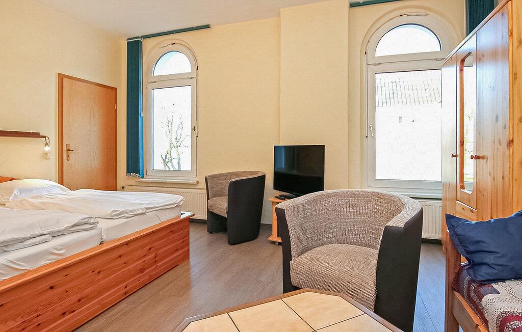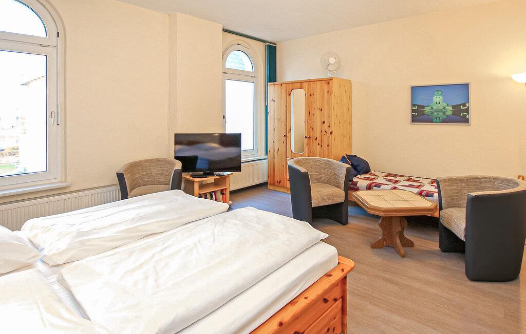 udkanten af den gamle bydel i Waren (Müritz), centralt og alligevel roligt beliggende, kun få skridt fra Müritz inde i landet, er der i alt tre ferielejligheder for op til tre eller fem personer i en nænsomt renoveret byvilla. Havnen med båd- og skibsmolen, badestrand, restauranter, butikker og naturoplevelsescentret "Müritzeum" ligger i gåafstand. Den ca. 35 kvm opvarmede lejlighed er udstyret til op til 2 voksne og 1 barn (maks. 17 år), en kombineret stue/soveplads (sitteområde med lænestole, fladskærms-tv, 1 dobbeltseng, 1 enkeltseng), en mini køkken (elkomfur, miniovn, køleskab med fryser, spiseplads, diverse køkkenmaskiner) og badeværelse (bruser, toilet, hårtørrer). Herfra har du en sideudsigt over Müritz. Havemøbler, græsplæne med liggestole og grillplads er til rådighed for alle gæster på ejendommen. Røgovn, cykelopbevaringsrum (aflåselig, på ejendommen), en parkeringsplads pr. lejlighed (en anden mod betaling) og gratis WiFi er til rådighed. Den samlede pris inkluderer slutrengøring, sengelinned, håndklæder samt vand- og energiforbrug. (Medbring venligst dit eget sengelinned til babyer.) Betales på stedet: turistskat, parkering hvis nødvendigt 5 EUR/dag. Det statsanerkendte kurbad Waren (Müritz) ligger i charmerende omgivelser direkte ved søen af samme navn, den største indsø i Tyskland. Det er også turistcentret i Mecklenburg Lake District. Seværdighederne omfatter den historiske gamle bydel, havnen med passagerskibsfart, den tilstødende promenade og talrige spisemuligheder samt Müritzeum, et naturoplevelsescenter med et kæmpe ferskvandsakvarium og udstillinger om flora og fauna i sødistriktet. Der er også udendørs swimmingpools, båd- og cykeludlejning, surf- og sejlerskoler og mange indkøbsmuligheder i byen. Waren er indgangsporten til Müritz Nationalpark, som nemt kan udforskes via det veludviklede netværk af cykelstier (også i kombination med passagerbåden). Motorvejsforbindelse i ca 25 km.