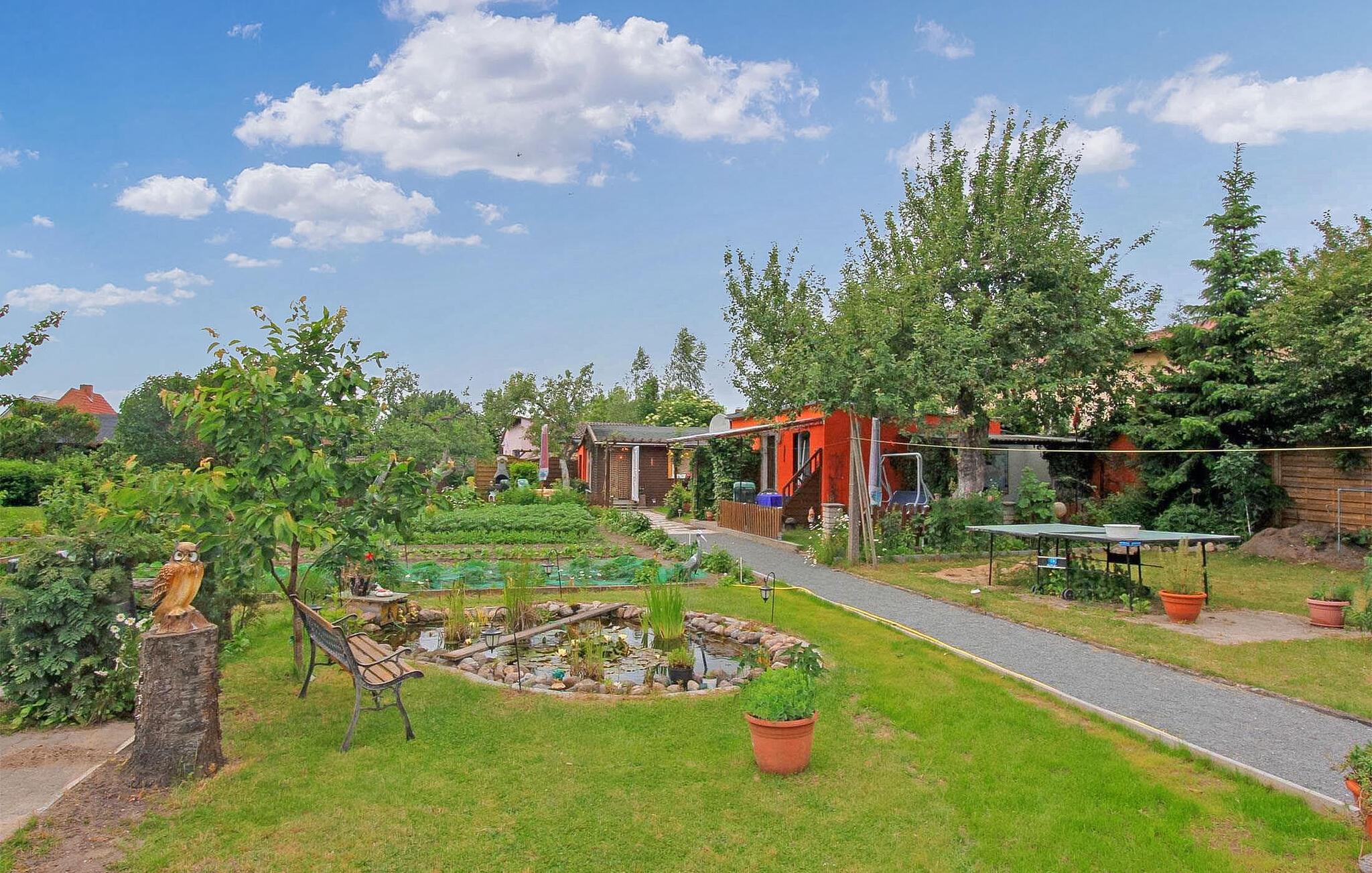De to sommerhuse til 2 personer er fritliggende på ejerens 900 kvm store boligejendom i roligt villakvarter. Der er omkring 1 km til badestranden ved Müritz, og byens centrum med havnen og den gamle bydel er omkring 2 km væk. Der er bageri på naboejendommen. Feriehuset er indrettet med stue (polstrede møbler, fladskærms-tv, radio), åbne kogefaciliteter (elkomfur, køleskab med fryser, diverse køkkenmaskiner), soveværelse (dobbelt polstret liggestol) samt bad/toilet og centralvarme. Hvert feriehus har en møbleret terrasse, grill, liggestole, cykelkælder og parkeringsplads, WiFi. Den samlede pris inkluderer slutrengøring, sengelinned, håndklæder samt vand- og energiforbrug. Waren (Müritz) er underlagt turistskat. Den statsgodkendte Waren spa ligger direkte ved Müritz i charmerende omgivelser. Det er også turistcentret i Mecklenburg Lake District. Attraktioner omfatter den historiske gamle bydel, havnen med passagerskibsfart, den tilstødende promenade og talrige spisemuligheder samt Müritzeum, et naturoplevelsescenter med et enormt ferskvandsakvarium og udstillinger om de særlige kendetegn ved Mecklenburgs sødistrikt. Der er også udendørs swimmingpools, båd- og cykeludlejning, surf- og sejlerskoler og mange indkøbsmuligheder i byen. Waren er indgangsporten til nationalparken Müritz, som nemt kan udforskes via det veludviklede netværk af cykelstier. Motorvejsforbindelse ca 25 km.