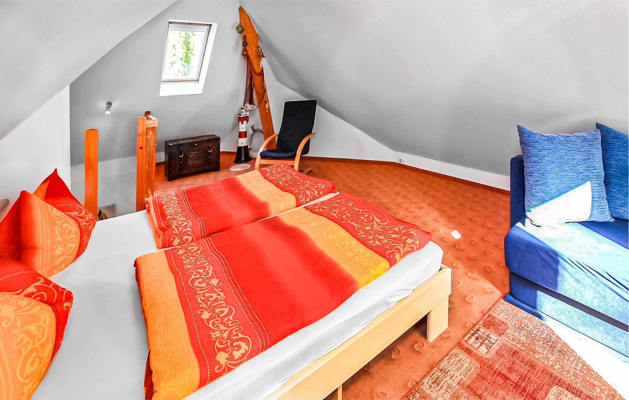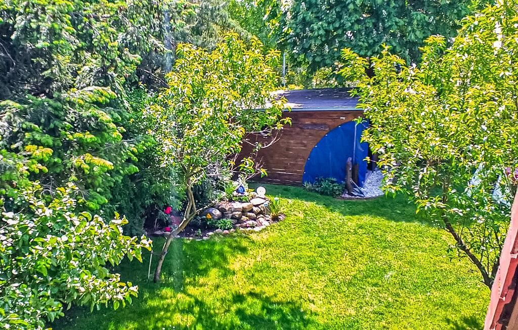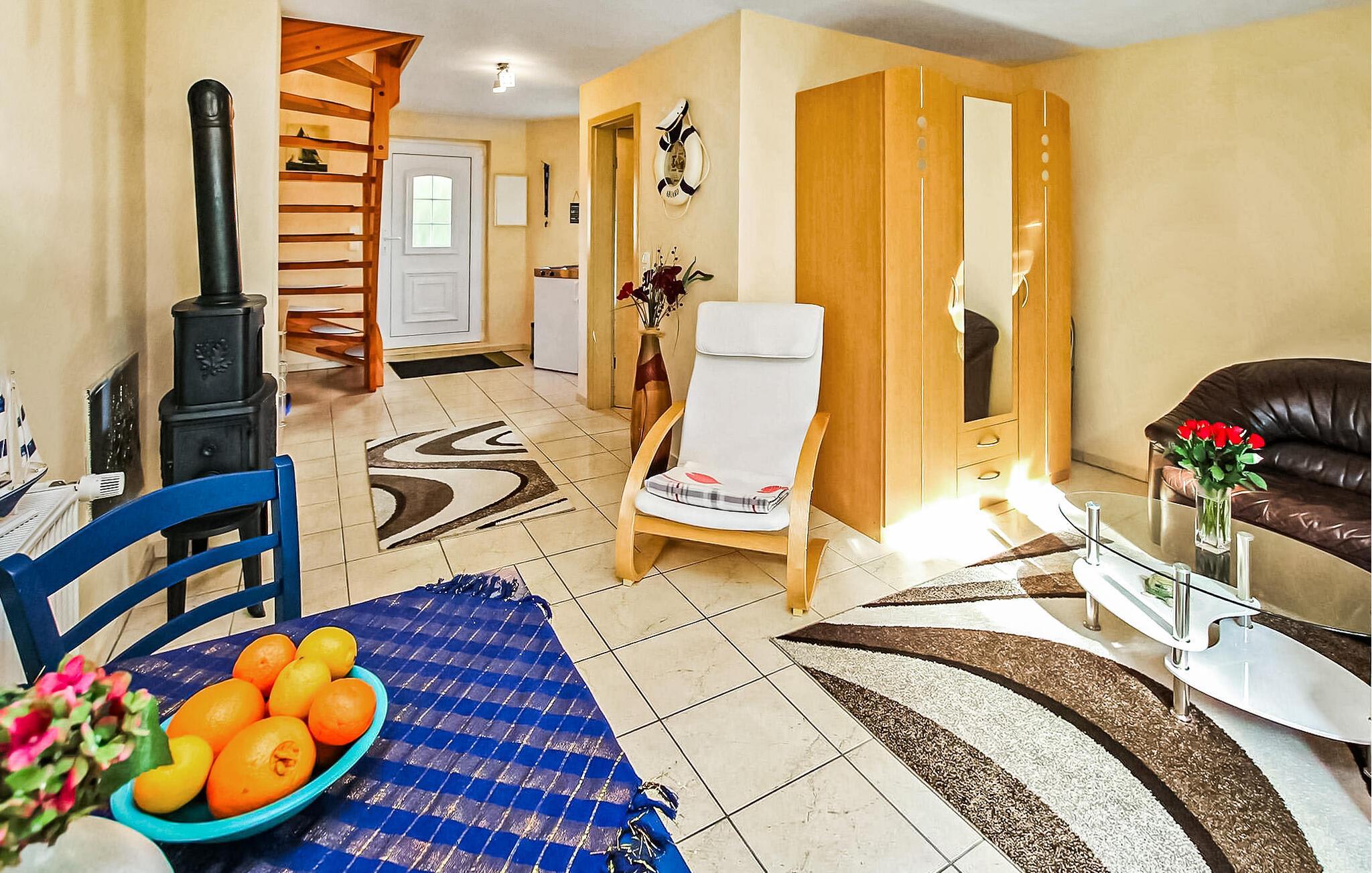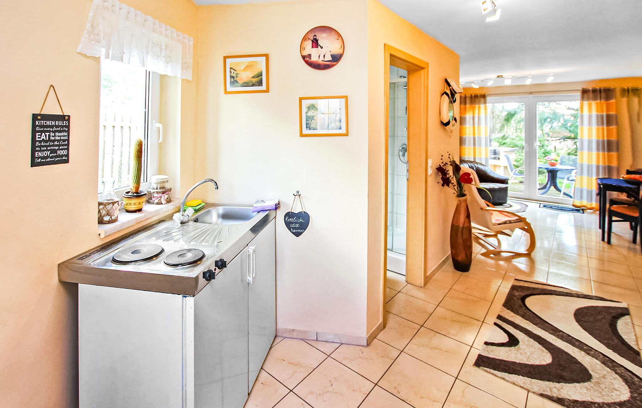 den rolige bydel Warenshof, inden for et boligområde, ligger ejerens sommerhus til op til 4 personer, som senest er renoveret i 2019, på ejerens cirka 1.000 kvadratmeter store bolig- og erhvervsejendom. I umiddelbar nærhed er der frokostservice, legeplads samt tog- og busstoppesteder, supermarkeder ca.1 km og en smuk strand ved Müritz knap 2,5 km væk. Det cirka 45 kvadratmeter, smagfuldt indrettede og centralopvarmede ikke-ryger sommerhus med separat indgang strækker sig over to etager. I den nederste er der opholdsstue (sofa, lænestol, fladskærms-tv, radio, pejs - brænde på forespørgsel) med åbent minikøkken (elektriske kogeplader, køleskab med fryser, mikroovn, diverse små køkkenmaskiner) og badeværelse (bruser, toilet). En åben trappe fører til soveværelset (dobbeltseng, fladskærms-tv, sovesofa - ekstra seng til 2 personer, lille læsehjørne). Gæsterne har også adgang til en møbleret terrasse, en muret grill, parkeringsplads, cykelrum og WiFi. Den samlede pris inkluderer slutrengøring, el og vand samt sengelinned og håndklæder. Betales på stedet: turistskat. En lille hund op til en højde på 30 cm er tilladt i denne ejendom. Katte er ikke tilladt. Det statsanerkendte kurbad Waren (Müritz) ligger i charmerende omgivelser direkte ved søen af samme navn, den største indsø i Tyskland. Det er også turistcentret i Mecklenburg Lake District.Attraktioner omfatter den historiske gamle bydel, havnen med passagerskibe, den tilstødende promenade og talrige spisemuligheder samt Müritzeum, et naturoplevelsescenter med et kæmpe ferskvandsakvarium og udstillinger om bl.a. flora og fauna i sødistriktet.I landsbyen er der også udendørs swimmingpools, båd- og cykeludlejning, surf- og sejlerskoler og mange indkøbsmuligheder. Waren er indgangsporten til Müritz Nationalpark, som nemt kan udforskes via det veludviklede cykelstinetværk (også i kombination med passagerbåden). Motorvejsforbindelse ca 25 km.