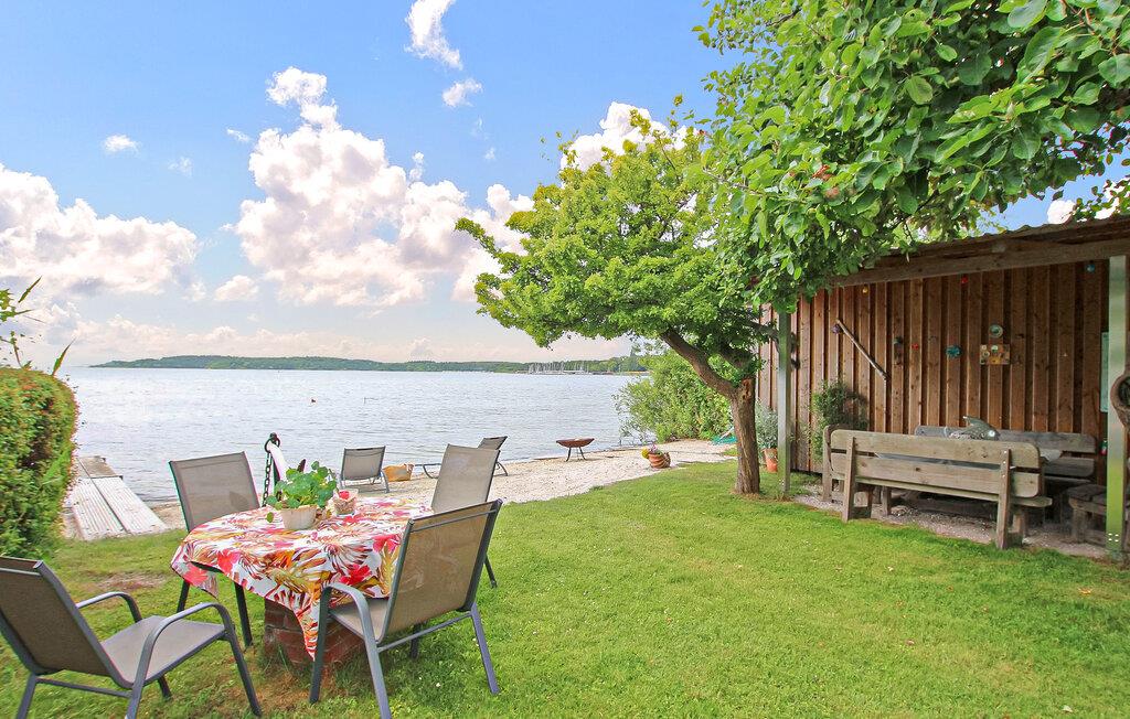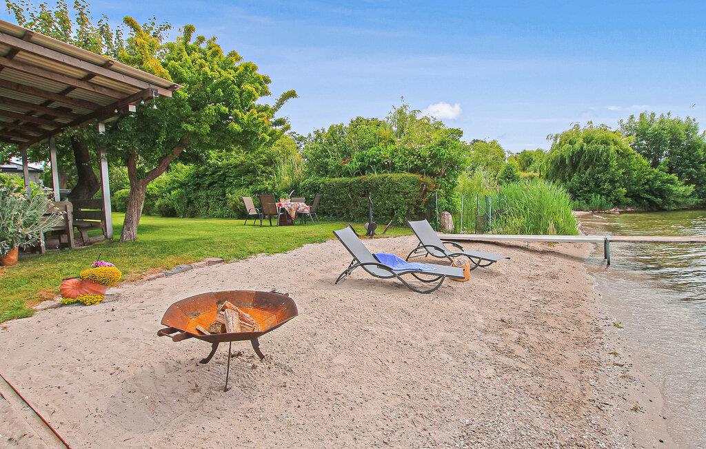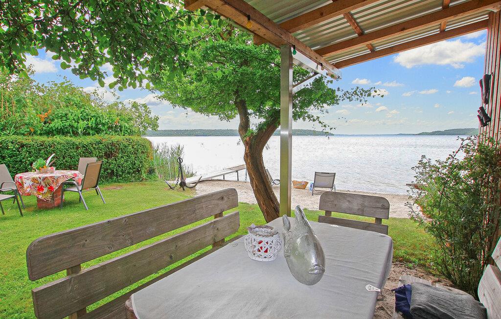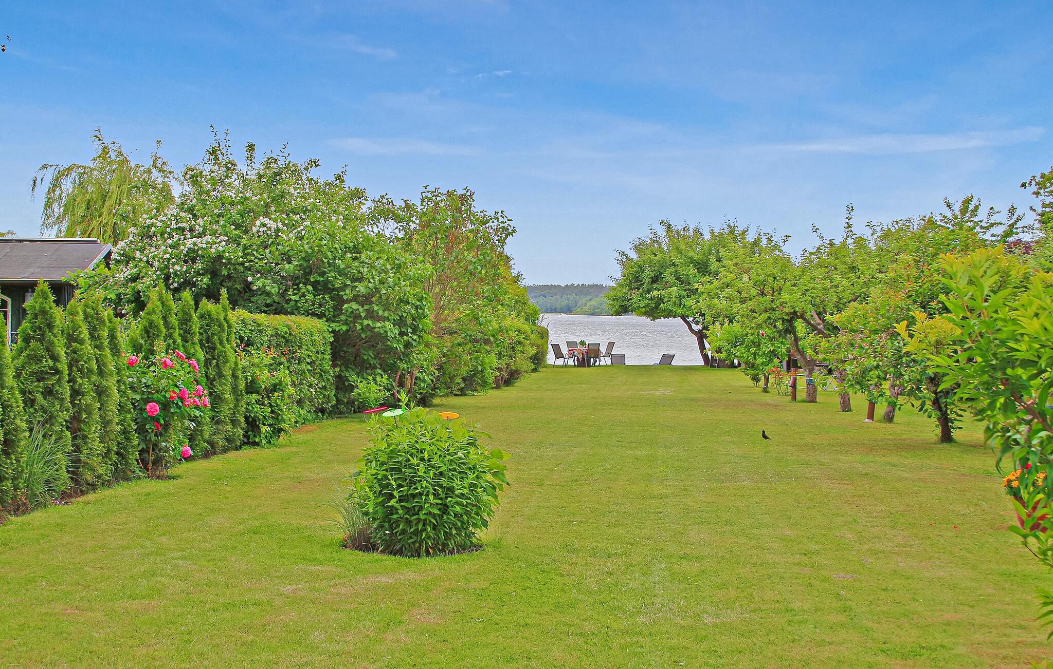 Med egen strand, beliggende direkte ved Müritz og i et roligt boligområde, ligger ejerens separate ferielejlighed til to personer på den cirka 1.500 kvadratmeter store indhegnede vandgrund i hans hus. Den gamle bydel i Waren (Müritz) med butikker, restauranter og caféer, forskellige seværdigheder samt udflugter og bådture ligger omkring 15 minutters gang væk. Den cirka 37 kvm, smagfuldt indrettede ikke-ryger lejlighed (rygning tilladt udendørs) med udsigt over søen ligger i stueetagen og har et kombineret opholds- og soveområde (dobbeltseng, opholdsområde med lænestole, fladskærms-tv), et åbent køkken (El-komfur med ovn, køleskab, mikroovn, spiseplads, diverse små køkkenmaskiner), et badeværelse (bruser, toilet, hårtørrer) og en gang med et stort klædeskab. Lejligheden er centralvarme (køkken og badeværelse gulvvarme) og er udstyret med insektbeskyttelse på vinduerne. Derudover har gæsterne adgang til parkeringsplads, cykelkælder, WiFi og forskellige sidde- og solbademuligheder, grillplads og privat strand på den rummelige, velholdte ejendom. Den samlede pris inkluderer slutrengøring, energi- og vandomkostninger samt sengelinned og håndklæder. Betales på stedet: spaskat. Kæledyr er ikke tilladt i denne ejendom. Det statsanerkendte kurbad Waren (Müritz) ligger i charmerende omgivelser direkte ved søen af samme navn, den største indsø i Tyskland. Det er også turistcentret i Mecklenburg Lake District.Attraktioner omfatter den historiske gamle bydel, havnen med passagerskibe, den tilstødende promenade og talrige spisemuligheder samt Müritzeum, et naturoplevelsescenter med et kæmpe ferskvandsakvarium og udstillinger om bl.a. flora og fauna i sødistriktet.I landsbyen er der også udendørs swimmingpools, båd- og cykeludlejning, surf- og sejlerskoler og mange indkøbsmuligheder. Waren er indgangsporten til Müritz Nationalpark, som nemt kan udforskes via det veludviklede cykelstinetværk (også i kombination med passagerbåden). Motorvejsforbindelse ca 25 km.