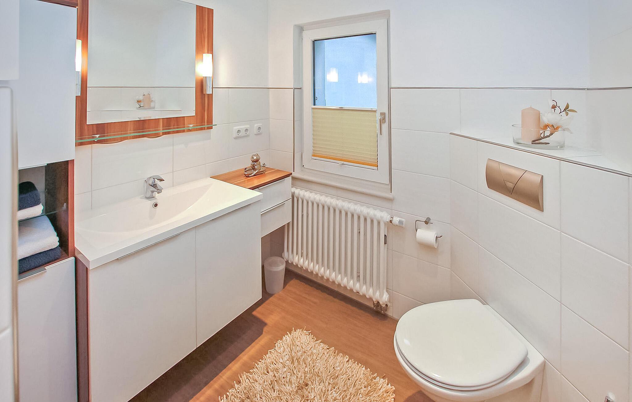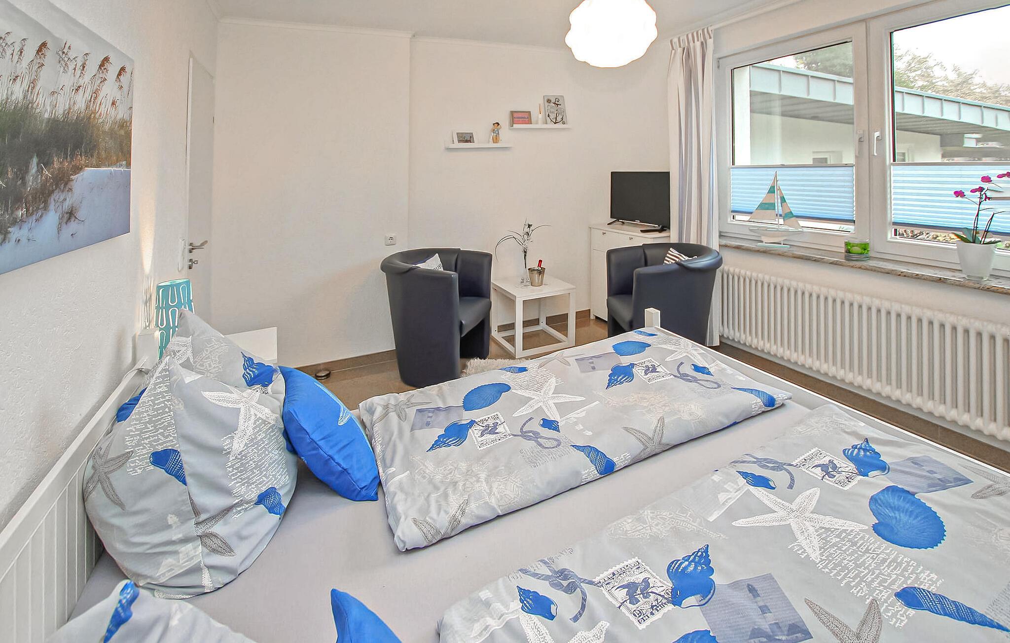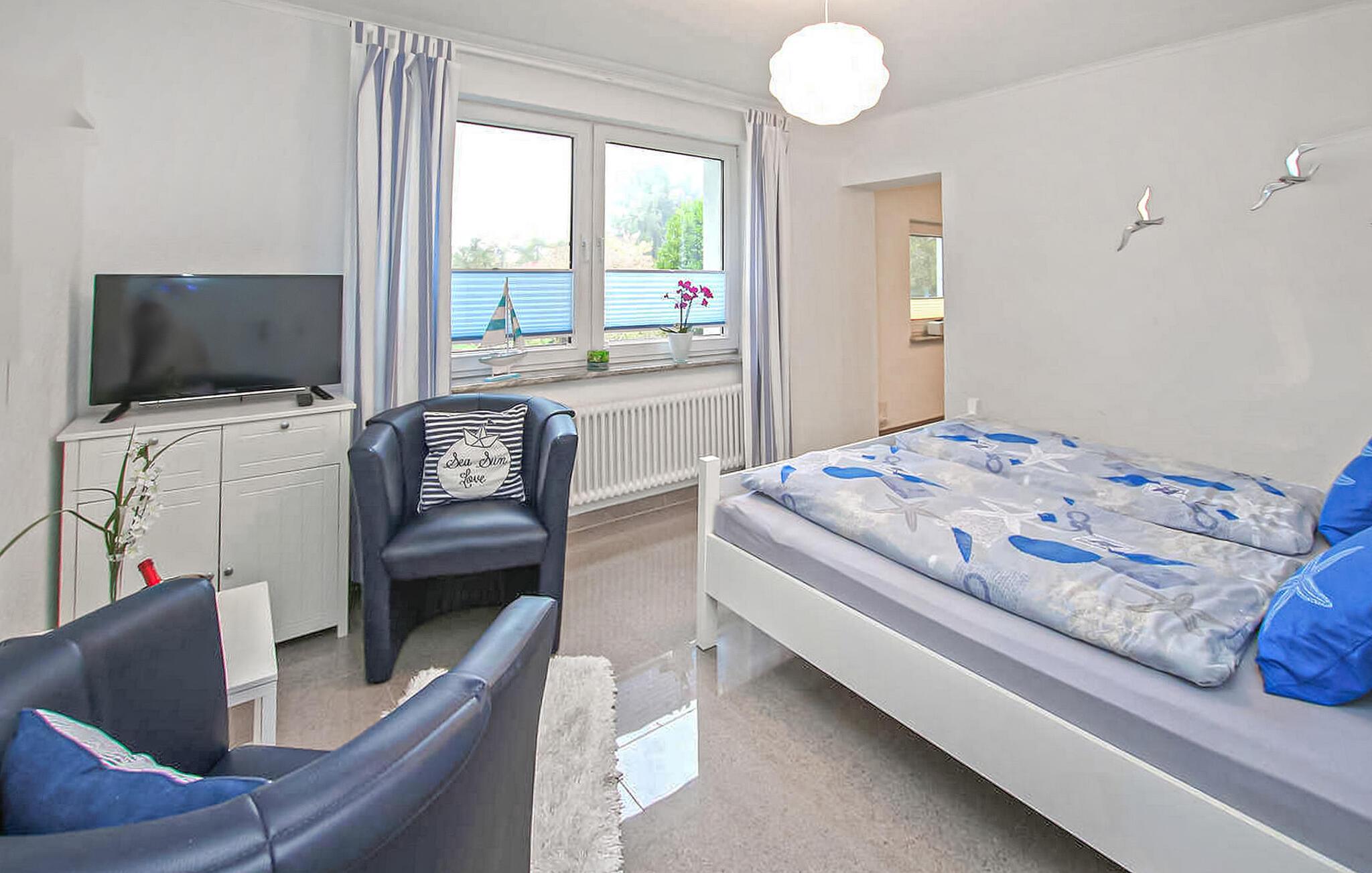 Med egen strand, beliggende direkte ved Müritz og i et roligt boligområde, ligger ejerens separate ferielejlighed til to personer på den cirka 1.500 kvadratmeter store indhegnede vandgrund i hans hus. Den gamle bydel i Waren (Müritz) med butikker, restauranter og caféer, forskellige seværdigheder samt udflugter og bådture ligger omkring 15 minutters gang væk. Den cirka 37 kvm, smagfuldt indrettede ikke-ryger lejlighed (rygning tilladt udendørs) med udsigt over søen ligger i stueetagen og har et kombineret opholds- og soveområde (dobbeltseng, opholdsområde med lænestole, fladskærms-tv), et åbent køkken (El-komfur med ovn, køleskab, mikroovn, spiseplads, diverse små køkkenmaskiner), et badeværelse (bruser, toilet, hårtørrer) og en gang med et stort klædeskab. Lejligheden er centralvarme (køkken og badeværelse gulvvarme) og er udstyret med insektbeskyttelse på vinduerne. Derudover har gæsterne adgang til parkeringsplads, cykelkælder, WiFi og forskellige sidde- og solbademuligheder, grillplads og privat strand på den rummelige, velholdte ejendom. Den samlede pris inkluderer slutrengøring, energi- og vandomkostninger samt sengelinned og håndklæder. Betales på stedet: spaskat. Kæledyr er ikke tilladt i denne ejendom. Det statsanerkendte kurbad Waren (Müritz) ligger i charmerende omgivelser direkte ved søen af samme navn, den største indsø i Tyskland. Det er også turistcentret i Mecklenburg Lake District.Attraktioner omfatter den historiske gamle bydel, havnen med passagerskibe, den tilstødende promenade og talrige spisemuligheder samt Müritzeum, et naturoplevelsescenter med et kæmpe ferskvandsakvarium og udstillinger om bl.a. flora og fauna i sødistriktet.I landsbyen er der også udendørs swimmingpools, båd- og cykeludlejning, surf- og sejlerskoler og mange indkøbsmuligheder. Waren er indgangsporten til Müritz Nationalpark, som nemt kan udforskes via det veludviklede cykelstinetværk (også i kombination med passagerbåden). Motorvejsforbindelse ca 25 km.