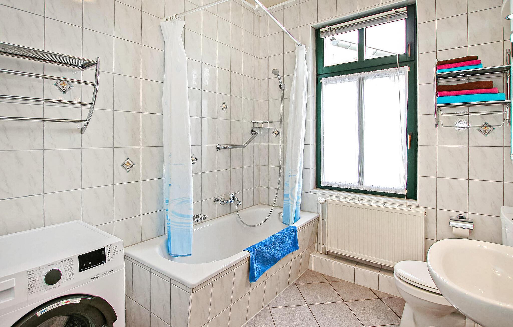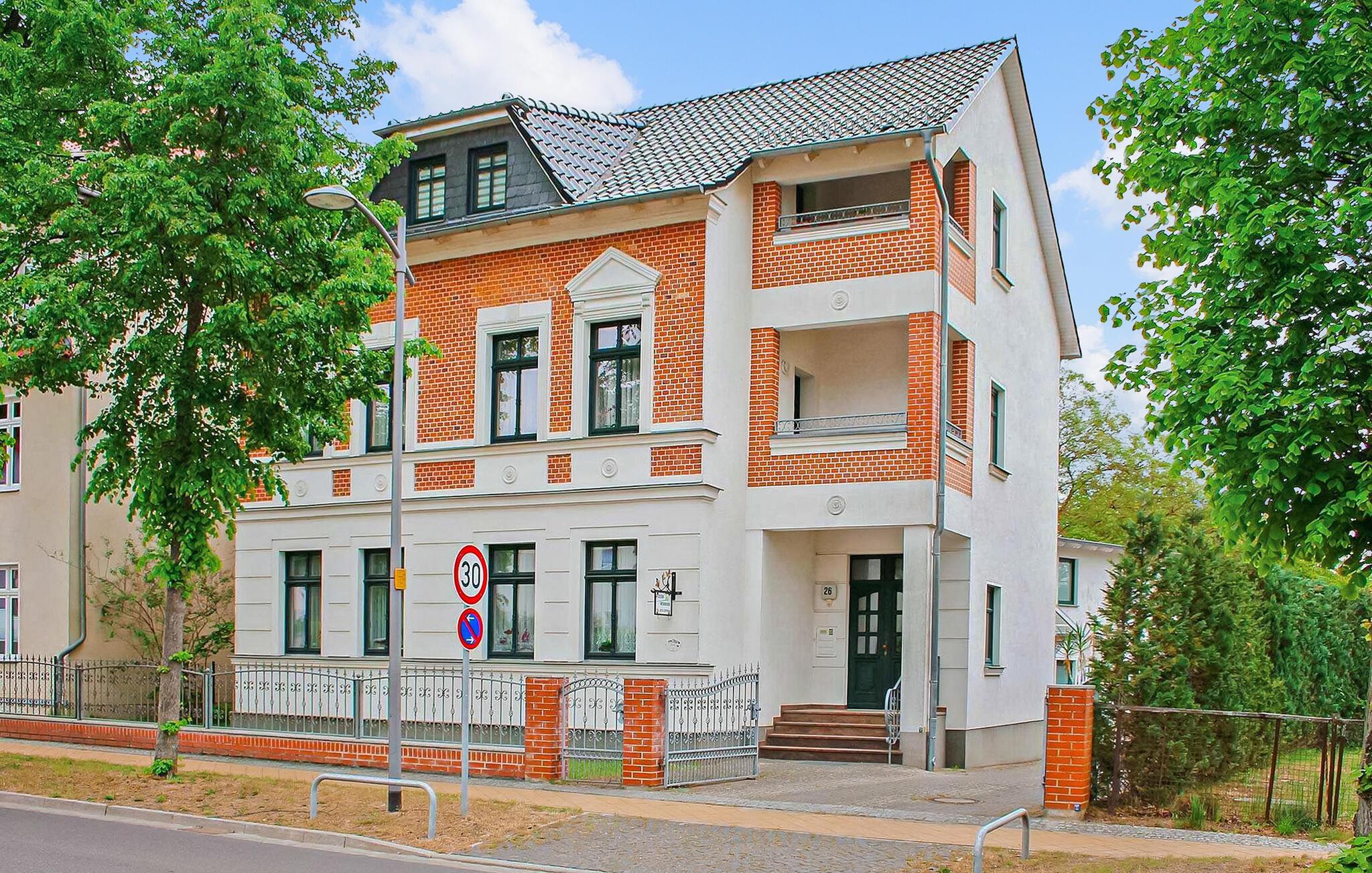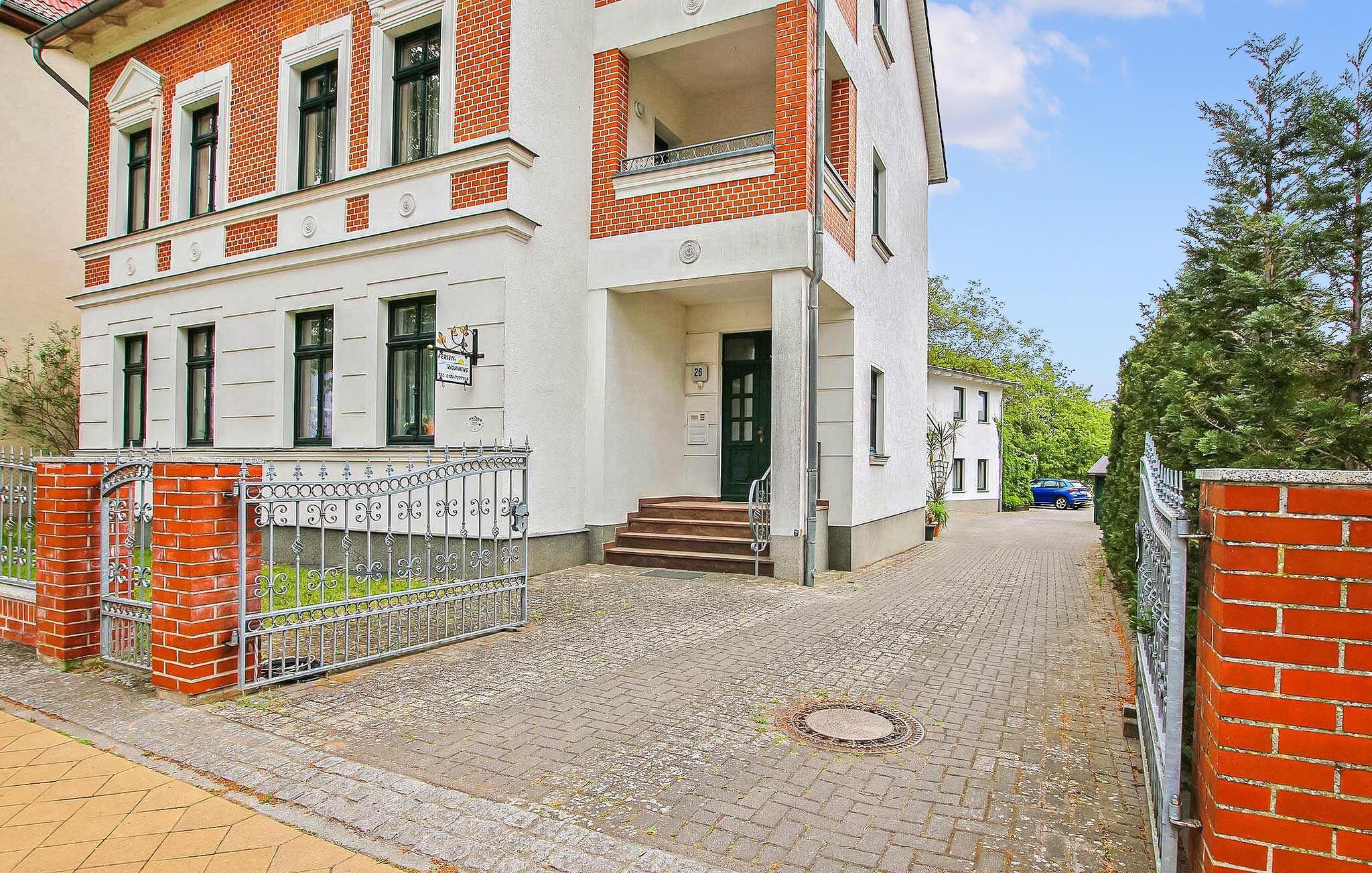 Kun få skridt væk fra promenaden ved Müritz og et lille badeområde, i et populært boligområde, er der to ferielejligheder til 6 og 4 personer på en stor beboelsesejendom på øverste etage af en byvilla og et tilstødende udhus . Havnen og den gamle bydel i Waren med et udvalg af indkøbsmuligheder og restauranter ligger inden for gåafstand. Den centralt opvarmede ikke-ryger lejlighed har en parkeringsplads, et aflåseligt cykelrum, en grill og gratis WiFi. Denne cirka 80 kvadratmeter store lejlighed for op til 6 personer ligger på 2. sal i byvillaen og har en stue (polstret sofa, fladskærms-tv, dvd-afspiller, radio/cd-afspiller), separat køkken (spisebord) , El-komfur med ovn, køleskab med fryser, mikroovn, opvaskemaskine, diverse små køkkenmaskiner), to soveværelser (1 x dobbeltseng, 1 x dobbeltseng og en enkeltseng, samt endnu en ekstra seng), et badeværelse (badekar, toilet, vaskemaskine, hårtørrer), rummelig entre og sydvendt altan. (Adgang fra stuen). Den samlede pris inkluderer slutrengøring, sengelinned, håndklæder, vand og el. Betales på stedet: spaskat. Kæledyr er ikke tilladt i denne ejendom. Det statsanerkendte kurbad Waren (Müritz) ligger i charmerende omgivelser direkte ved søen af samme navn, den største indsø i Tyskland. Det er også turistcentret i Mecklenburg Lake District.Attraktioner omfatter den historiske gamle bydel, havnen med passagerskibe, den tilstødende promenade og talrige spisemuligheder samt Müritzeum, et naturoplevelsescenter med et kæmpe ferskvandsakvarium og udstillinger om bl.a. flora og fauna i sødistriktet.I landsbyen er der også udendørs swimmingpools, båd- og cykeludlejning, surf- og sejlerskoler og mange indkøbsmuligheder. Waren er indgangsporten til Müritz Nationalpark, som nemt kan udforskes via det veludviklede cykelstinetværk (også i kombination med passagerbåden). Motorvejsforbindelse ca 25 km.
