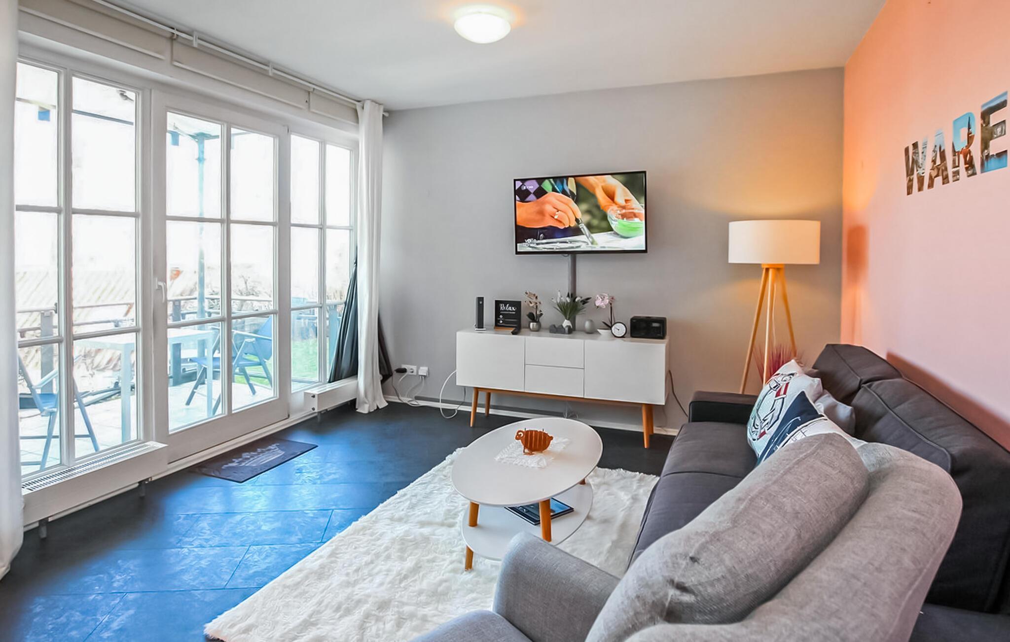 Kun få meter over den smukke Müritz-promenade og få skridt fra havnen ligger den smagfuldt indrettede ferielejlighed til 2 personer på første sal i en lejlighedsbygning. Restauranter, bagerier, andre butikker og den gamle bydel i Waren ligger i umiddelbar nærhed (Müritz komfur med ovn, køleskab med fryser, opvaskemaskine, mikroovn, diverse små køkkenmaskiner), et soveværelse (dobbeltseng, fladskærms-tv) med adgang til badeværelse (badekar, toilet, hårtørrer) og en lille. gang Der er desuden WiFi og en møbleret altan og en parkeringsplads i nærheden (AFSTAND ca. 300 m) kan stoppes direkte foran huset for af- og pålæsning.