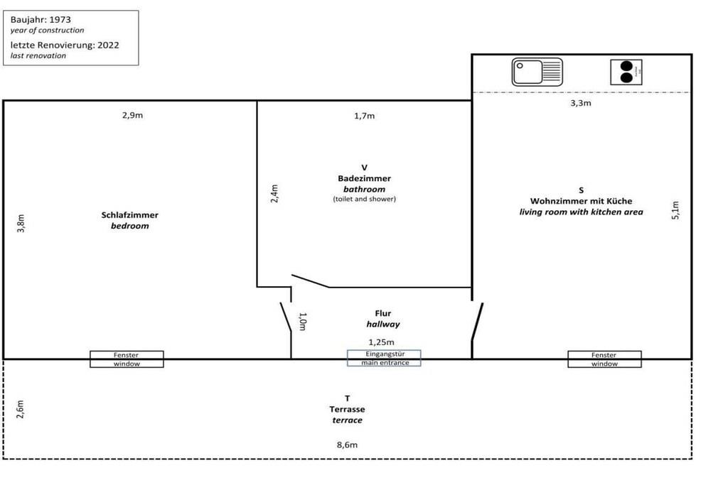 Comfortably furnished holiday apartment with terrace for up to 4 people in the immediate vicinity of the marina, beaches and Müritz National Park.