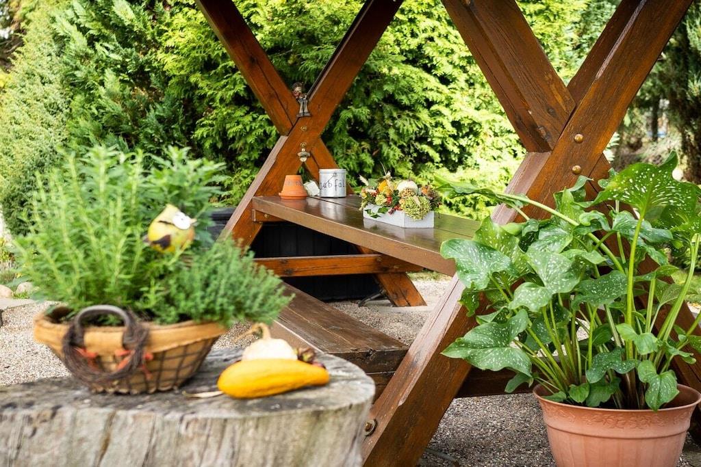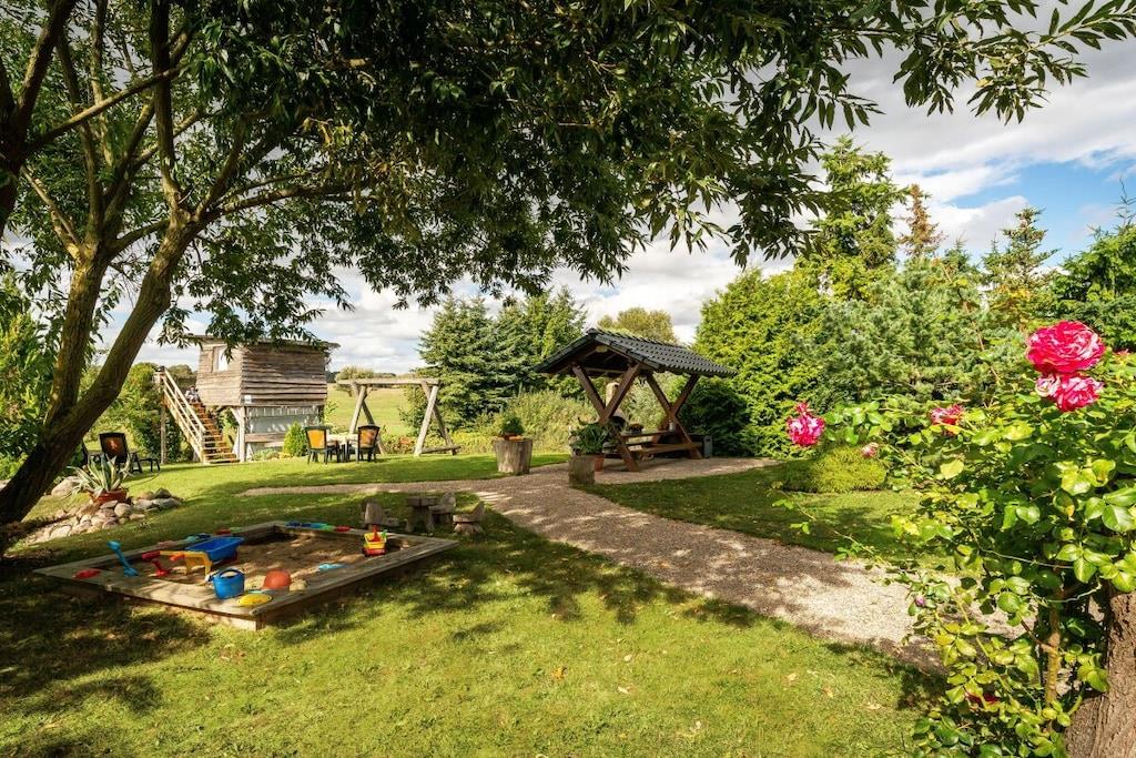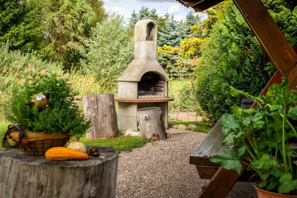 , , åbent køkken(, , tekøkken, spisebord, kogeplade, elkedel, brødrister, komfur, kaffemaskine, mikrobølgeovn, køleskab, fryser), Stue/soveværelse(, , dobbeltseng, Fjernsyn, barnestol), badeværelse(, , toilet, bruser, håndvask, varme, føntørrer), pulterkammer(, tørretumbler, vaskemaskine, strygebræt, strygejern, tørreskab), Internetadgang, varme, terrasse(Græsplæne, pejs, grill, havemøbler, solstole, sandkasse, Gyngestativ), have(Grill center, Græsplæne, pejs, grill, havemøbler, solstole, dam, sandkasse, Gyngestativ), parkering, Vaskeripakke mod et gebyr