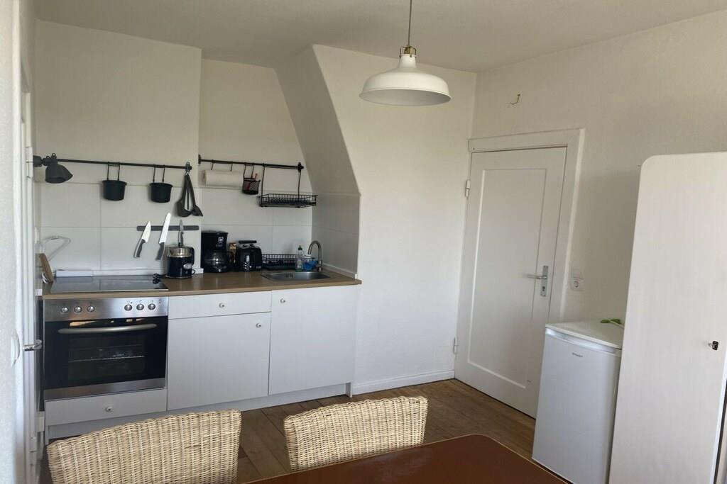 Velkommen til vores lille, hyggelige og praktisk indrettede ferielejlighed med kombineret stue og soveværelse, ideelt egnet til op til tre personer. Køkkenet med en lille spiseplads er kompakt, men fuldt udstyret. Her finder du komfur, ovn, kaffemaskine, brødrister, elkedel og køleskab. Stuen indbyder til afslapning og tilbyder en komfortabel sofa, der kan laves om til en sovesofa, hvis det er nødvendigt. Der er bevidst intet fjernsyn, så du kan nyde fred og ro. Ved siden af soveværelset med dobbeltseng finder du badeværelset med bruser og badekar. Der er også en vaskemaskine i et lille forværelse.