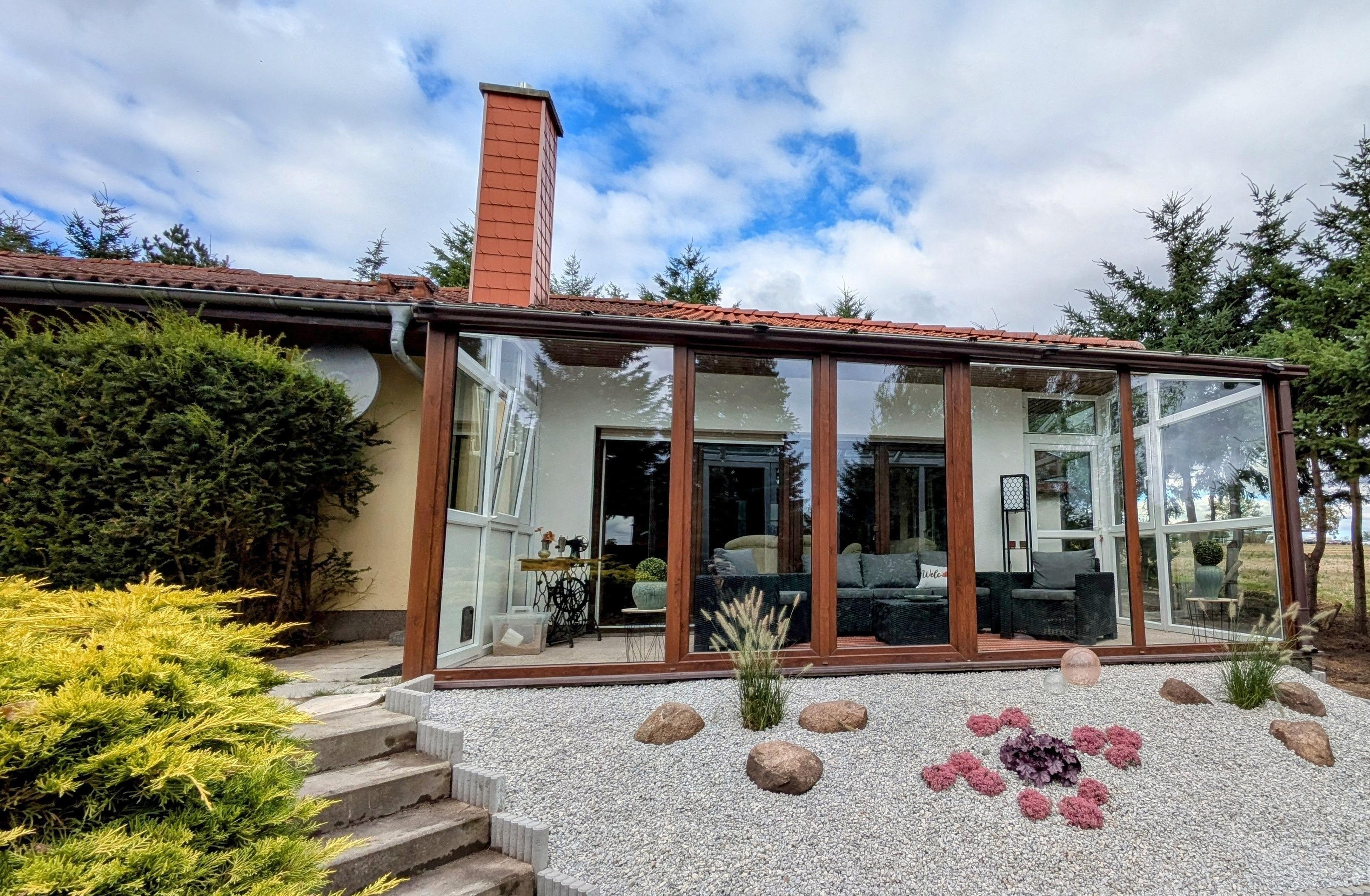 - Das Ferienhaus ist auf dem 2. Foto mit Wintergarten zu sehen , das 1. Foto zeigt das Haupthaus.